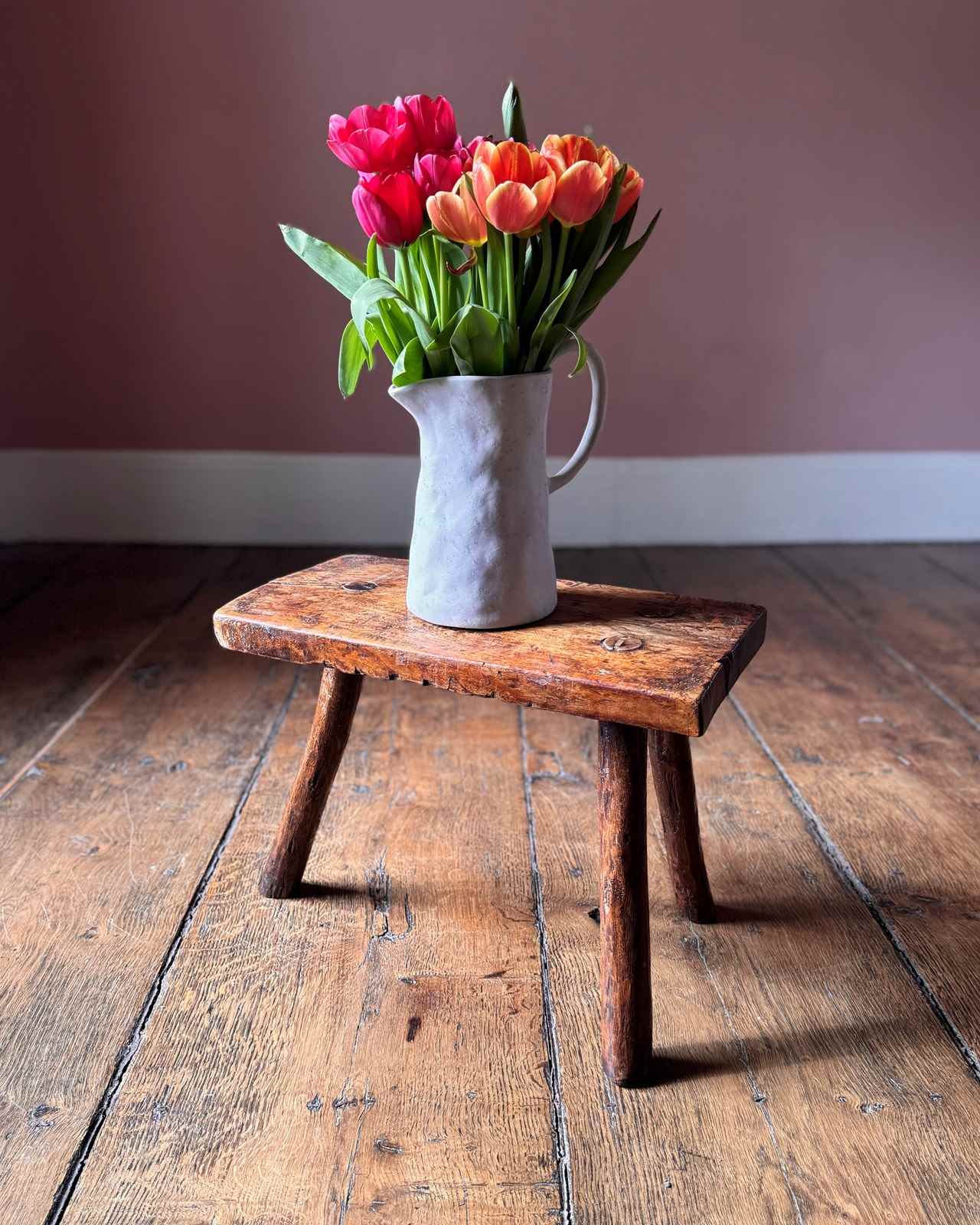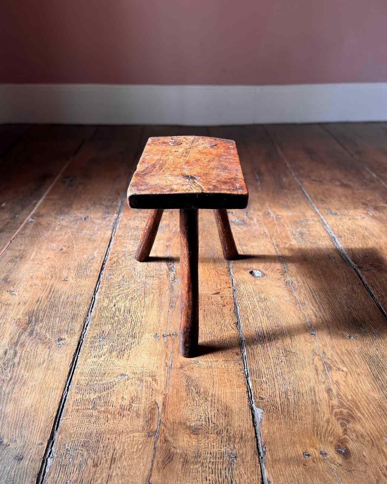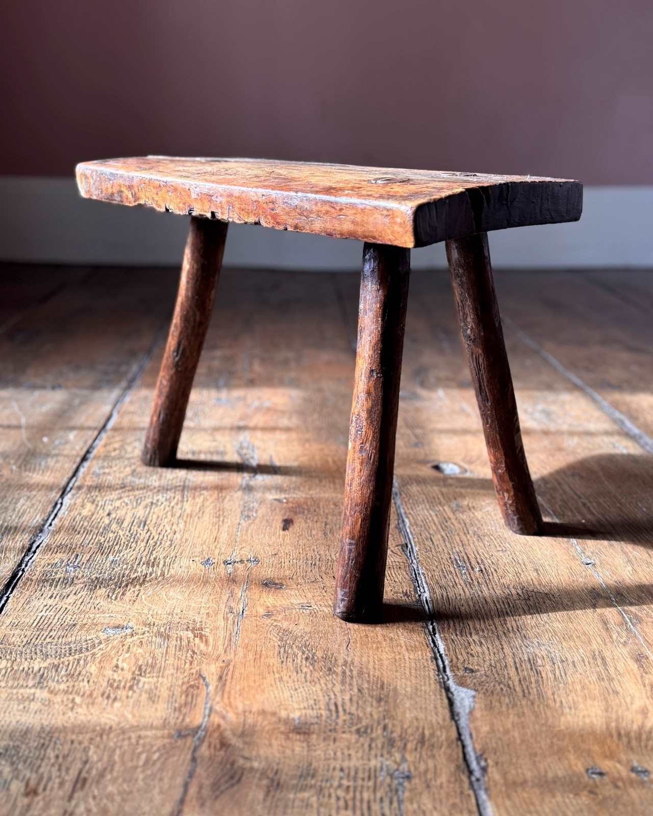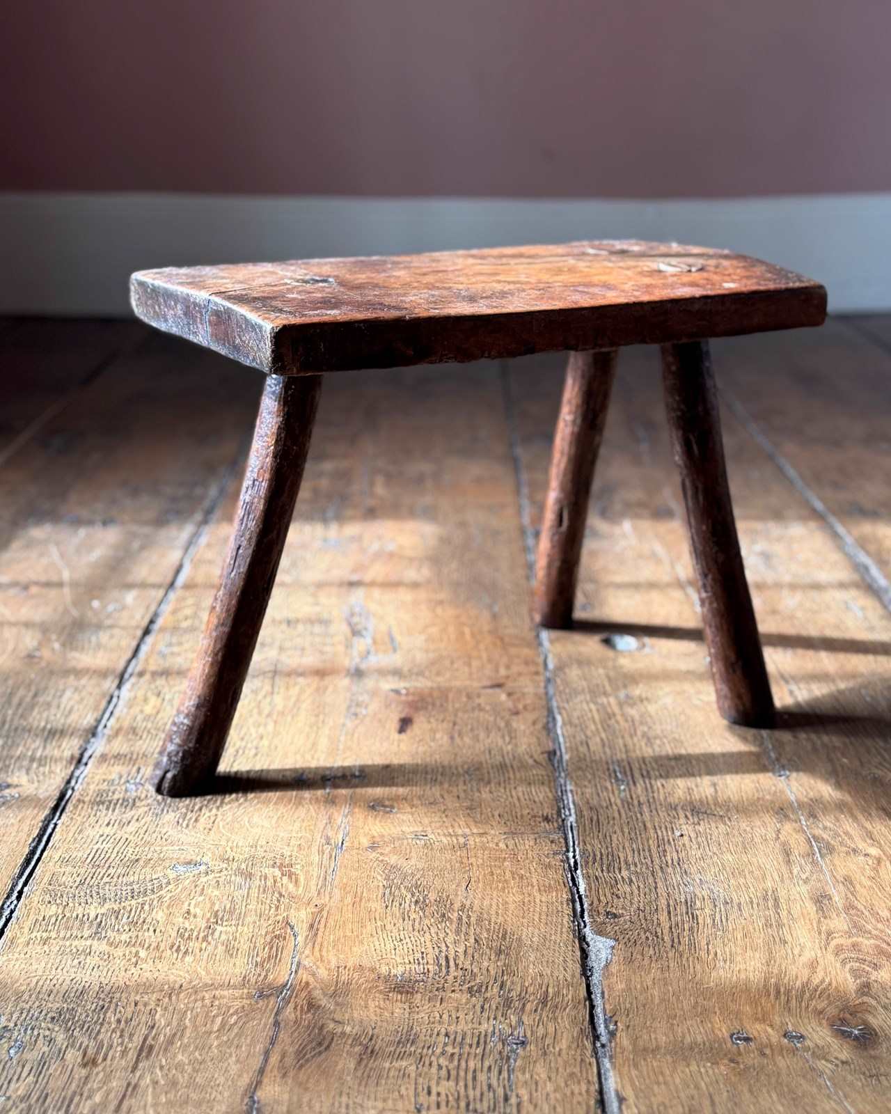A useful primitive 19th Century stool on three legs. Great little plant stand or small side table.