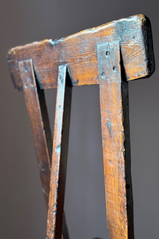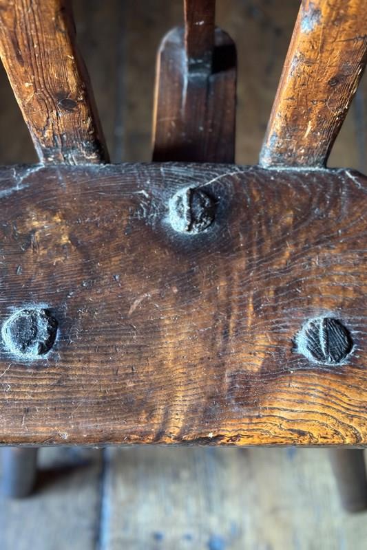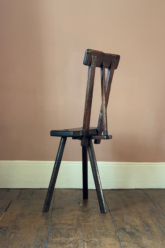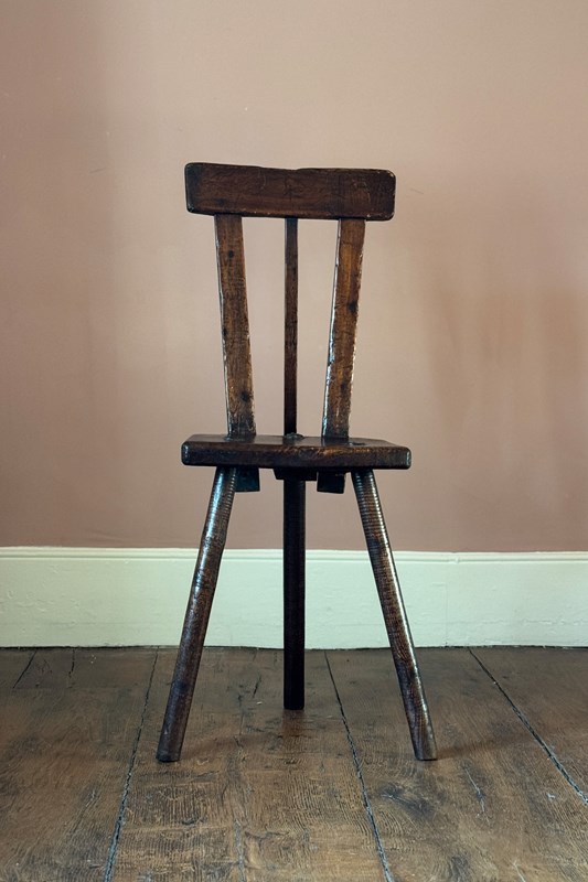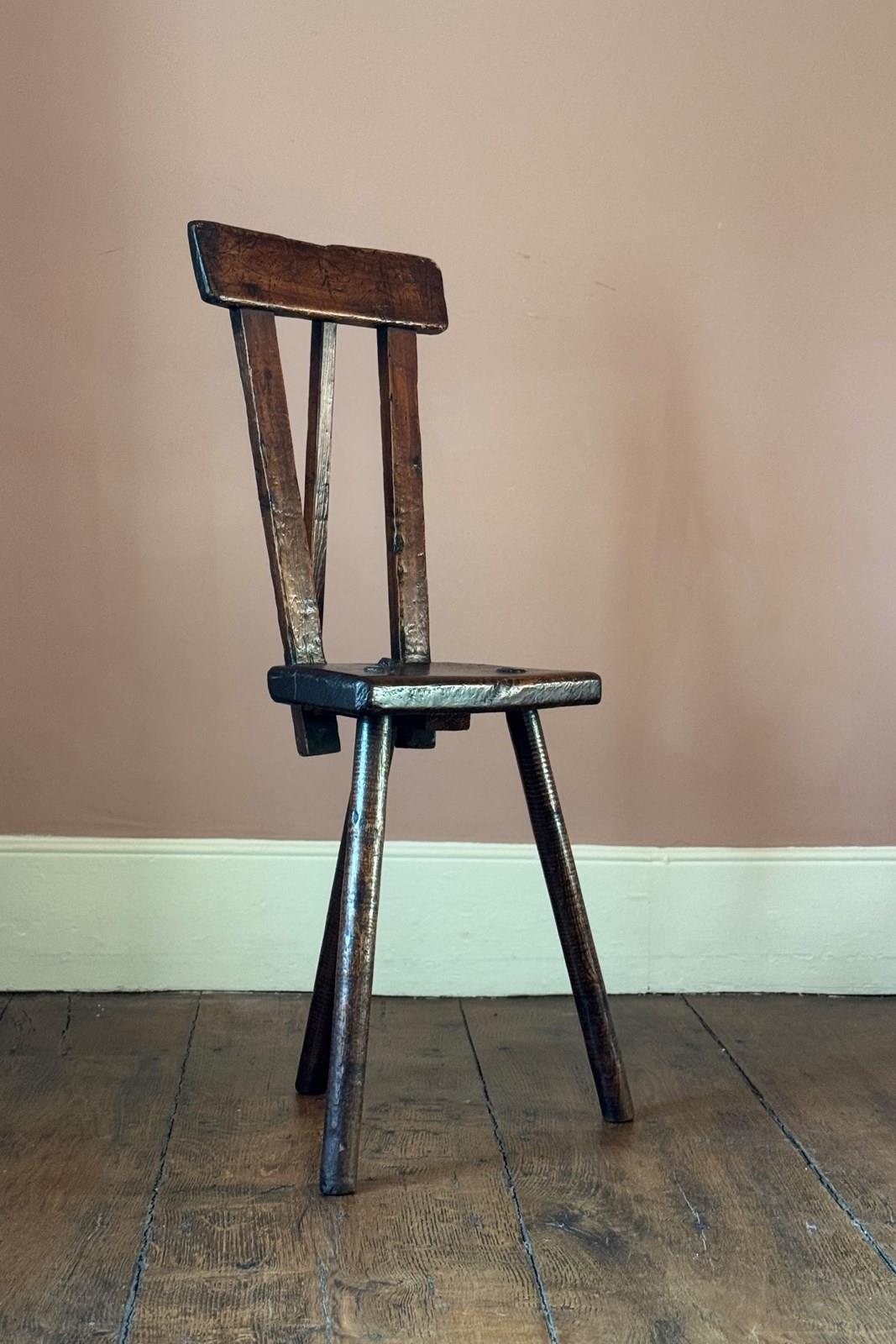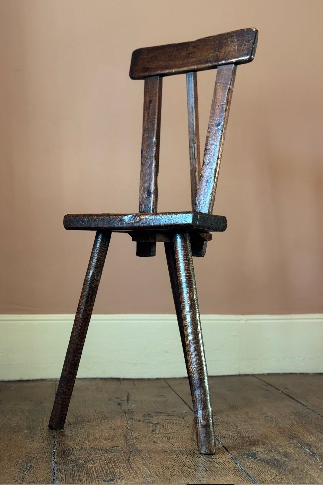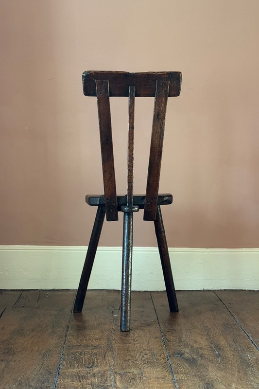 A beautiful and highly sculptural 19th Century elm and ash Cutlers stool with added backrest. This is a remarkable object with a unique story to tell. Originally a stool used in a cutlery factory in Sheffield, at some point during its early working life someone added a backrest for comfort. Not only does this give an insight into the life of this individual object but also illustrates an earlier history of the development of stools into chairs. The resulting chair is a striking object, with fantastic colour and patina, and a beautiful and unusual shape.