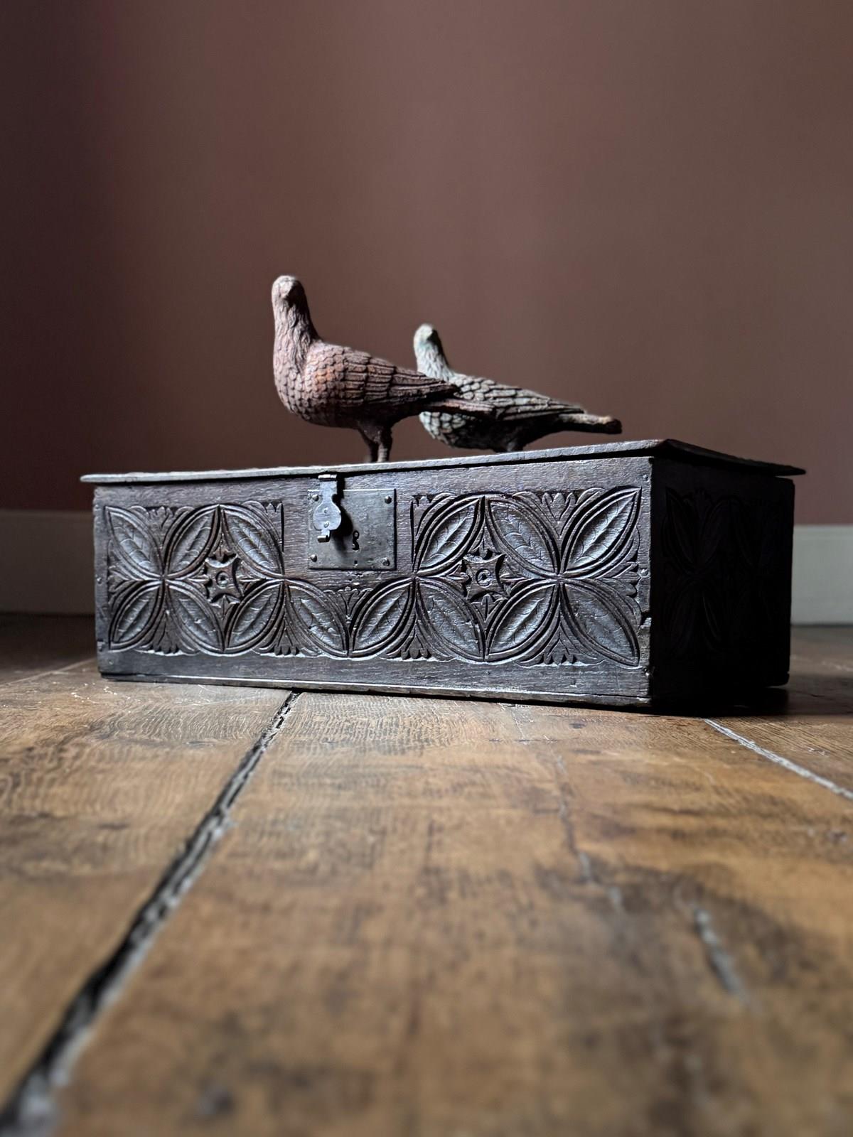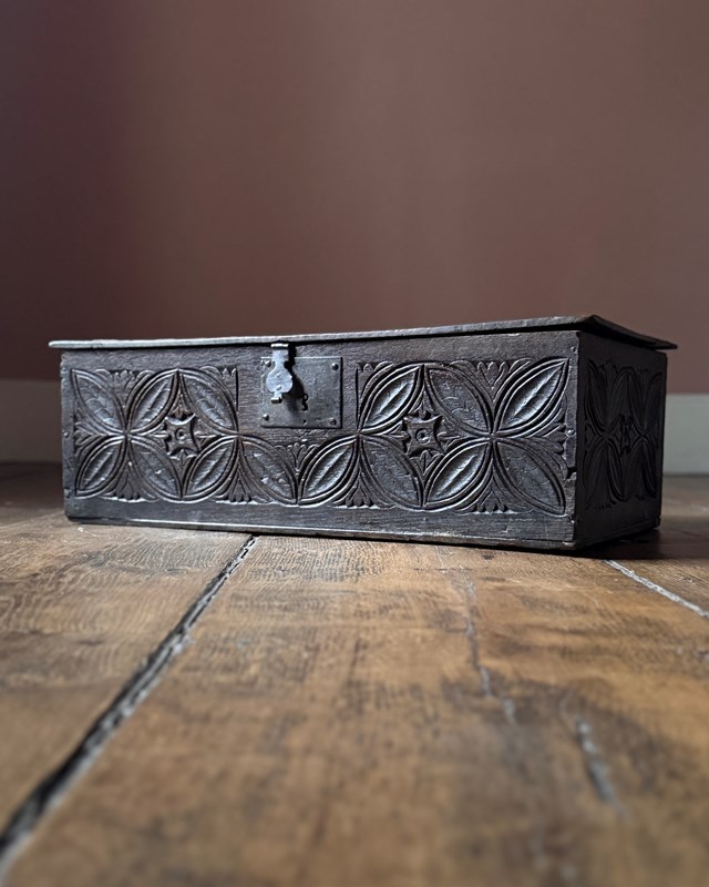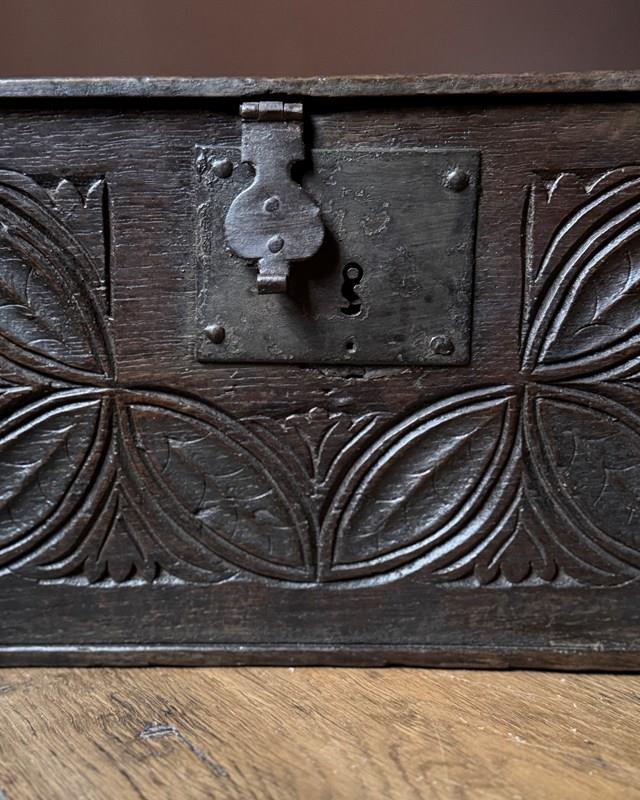 Small 17Th Century Carved Oak Coffer