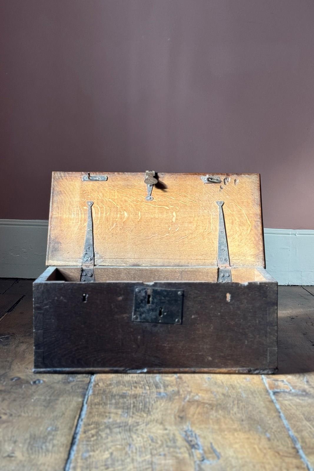 Small 18Th Century Oak Church Wardens Chest
