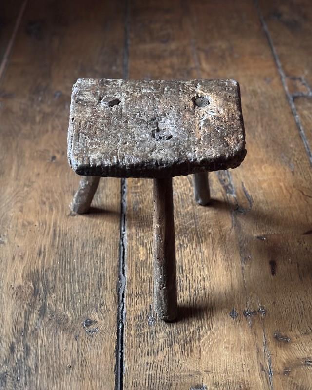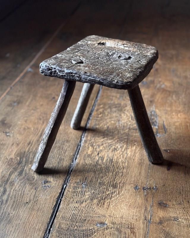 Small Primitive 18Th Century Welsh Stool
