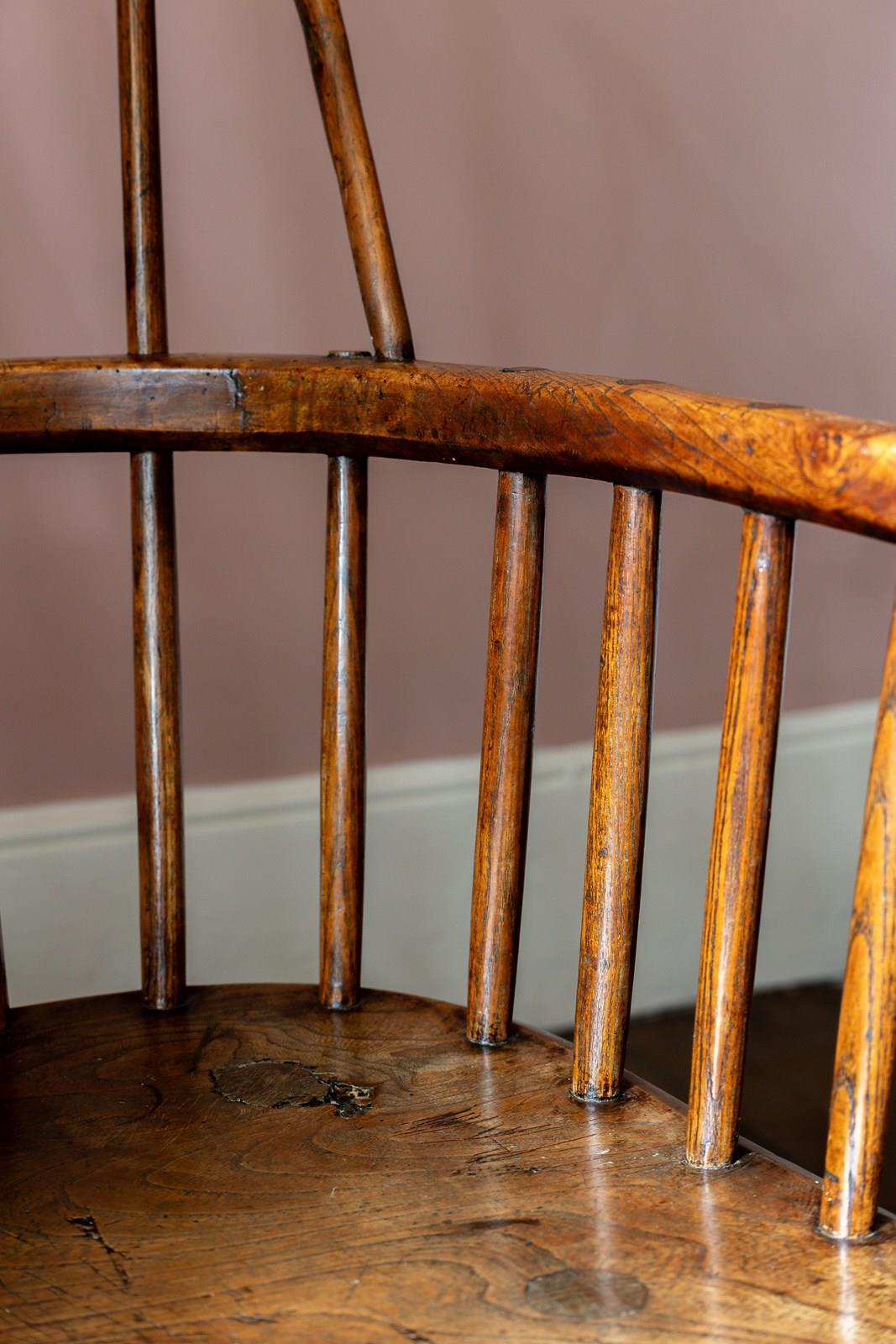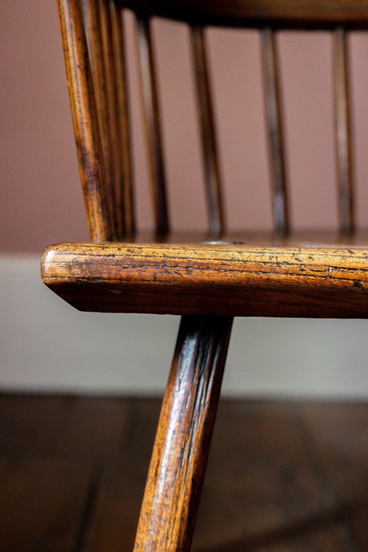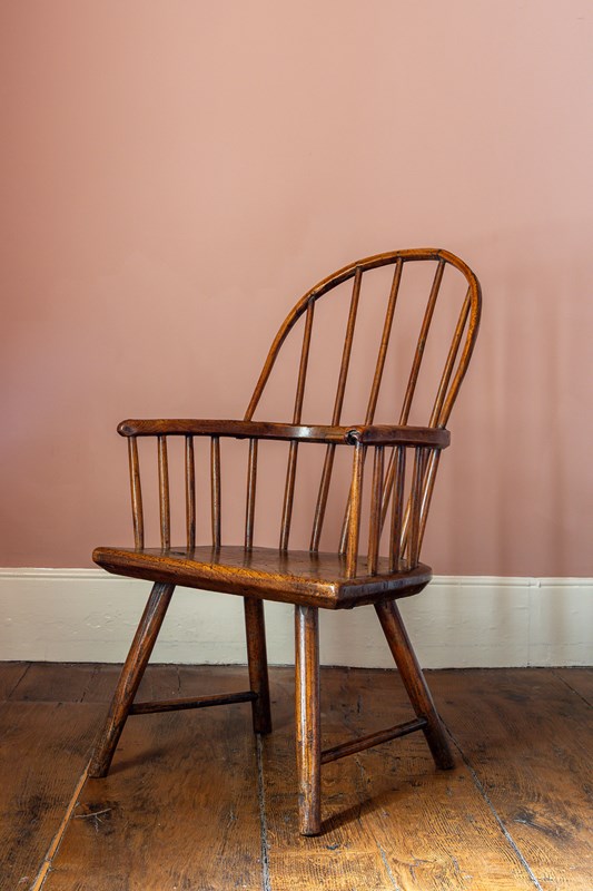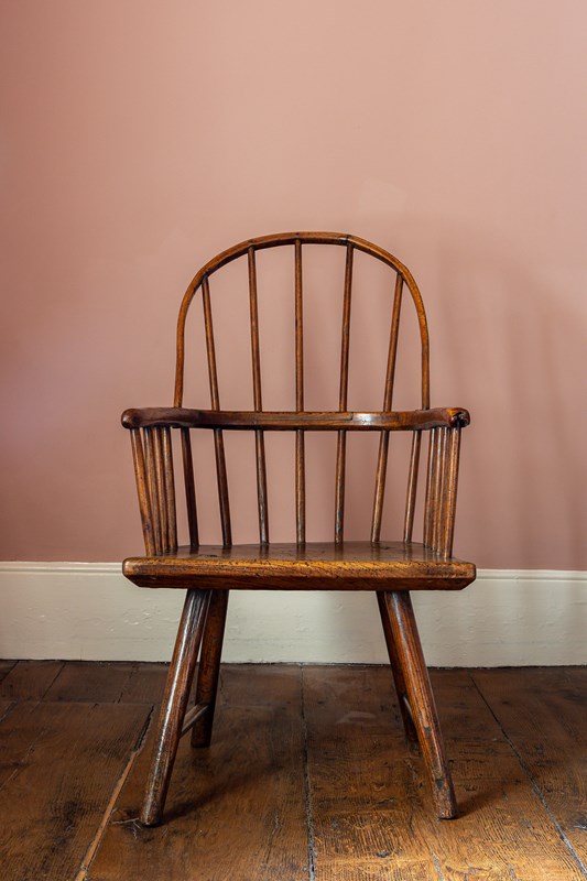 A wonderful 19th Century West Country hoop back Windsor chair in Elm and Ash with a single slab seat. A great colour and very elegant shape. Currently our favourite fireside chair.
