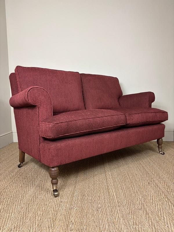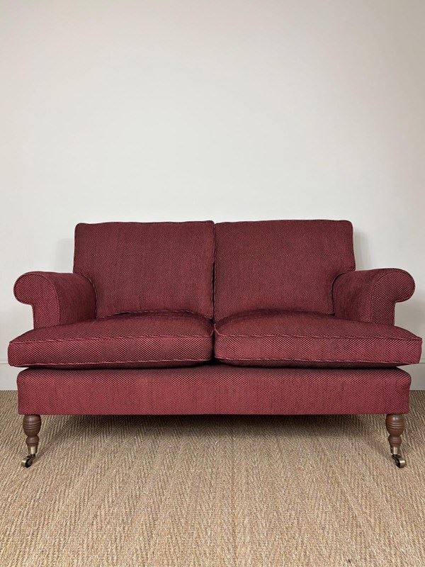 Brand new unused bespoke hand made sofa. Covered in Chelsea Textiles Cialda in colour Mattone a soft textured Italian chenille (Dark Red - RRP £180 per metre inc. VAT). Surplus from a recent project by Amanda Meade Interior Design Ltd