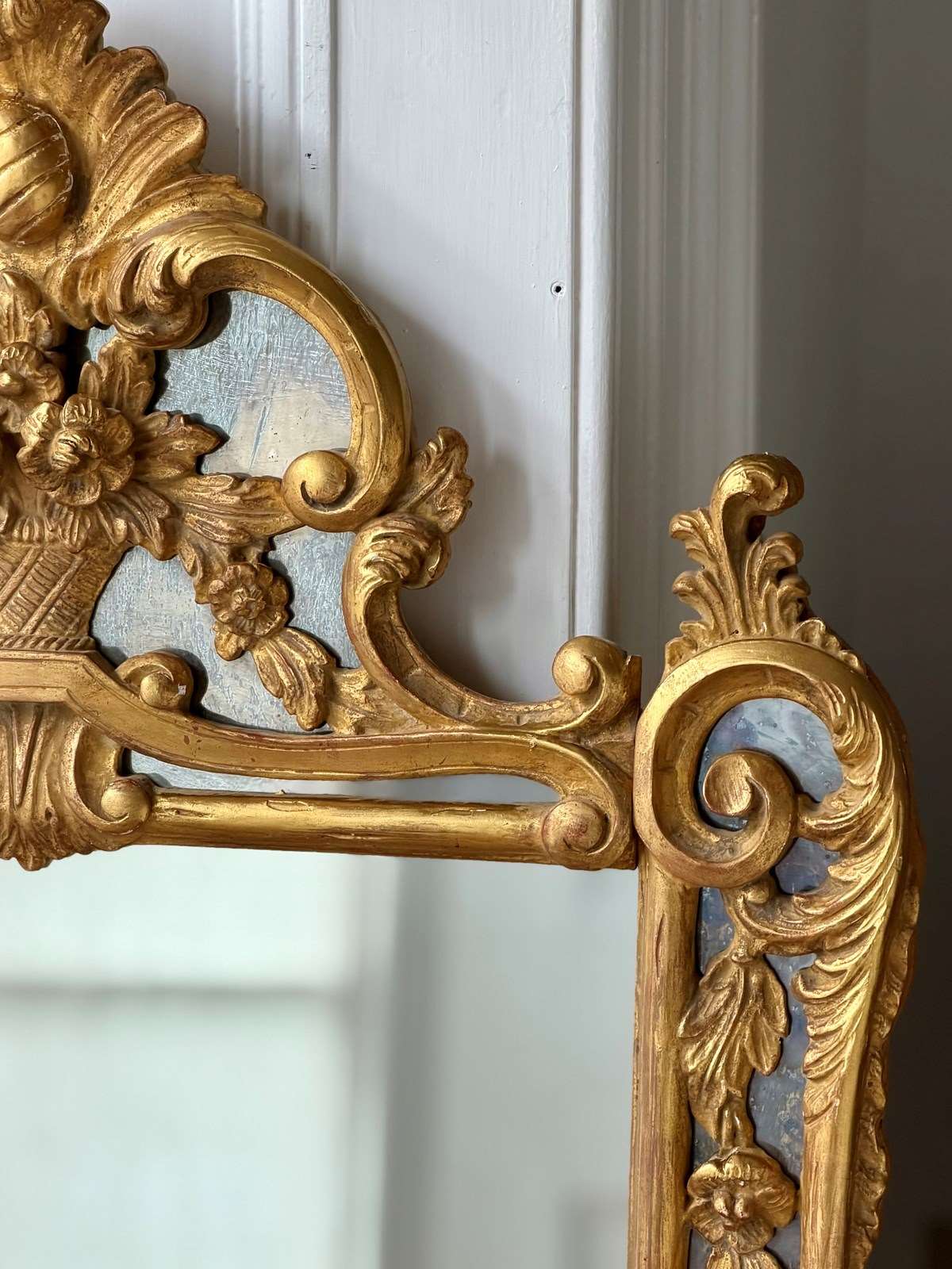 It has a huge amount of beautiful ornate floral and scroll detail. The crest is a floral basket and foliate shell.