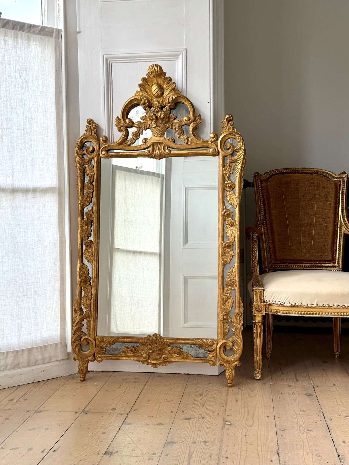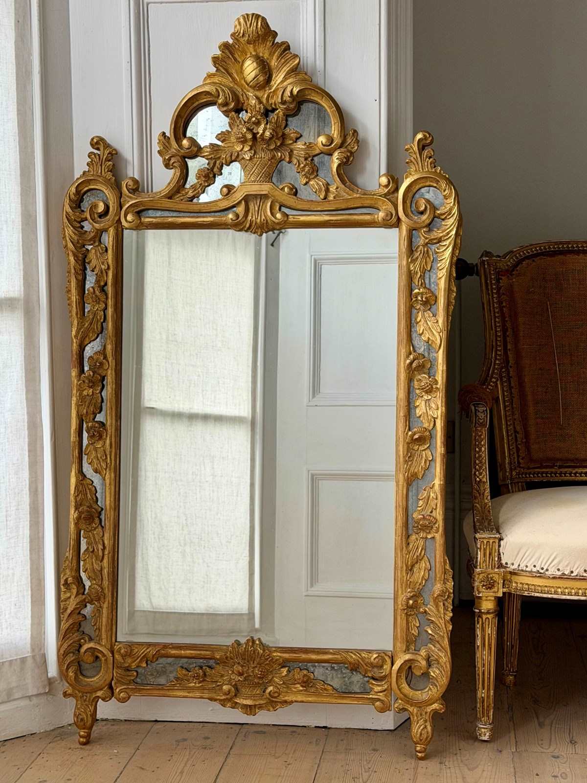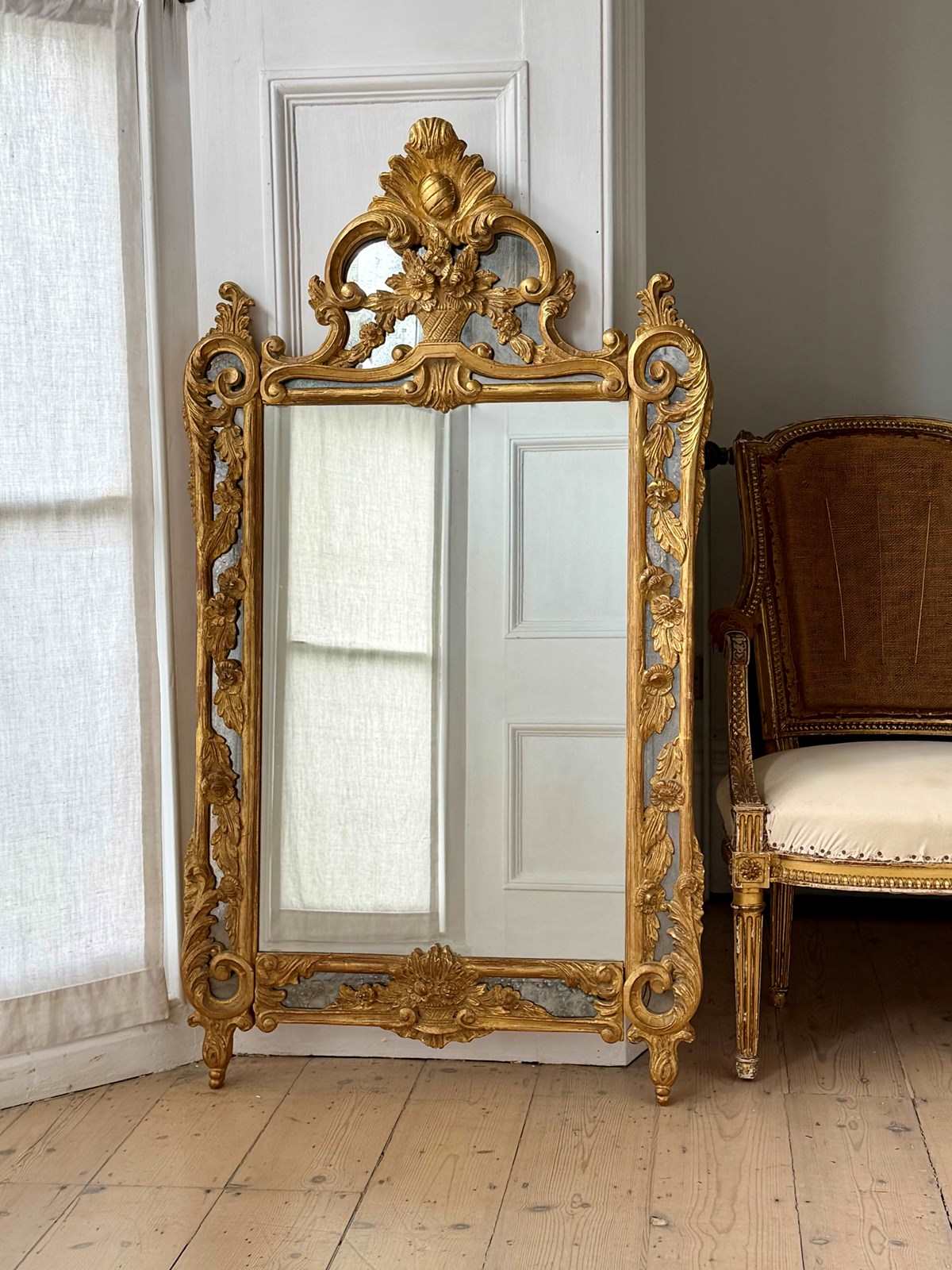 Stunning 19th century French hand carved giltwood mirror in excellent condition.