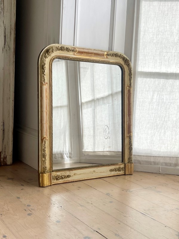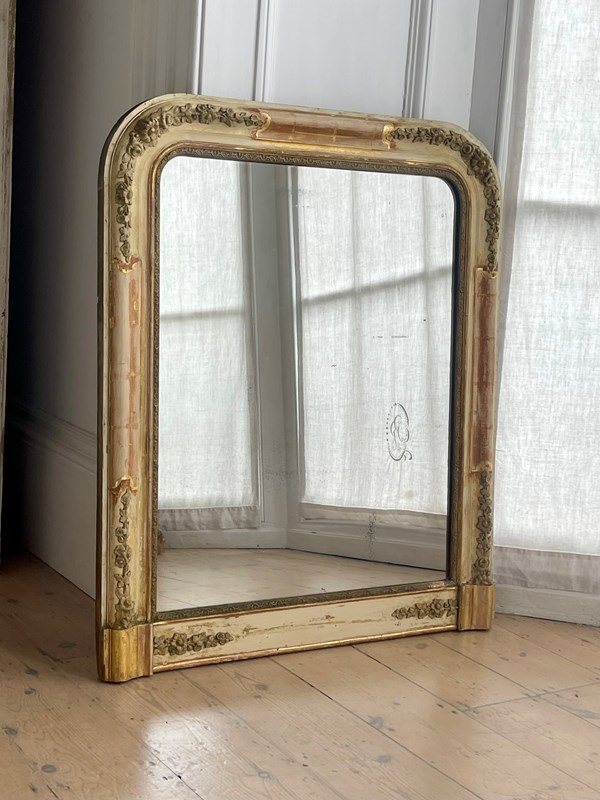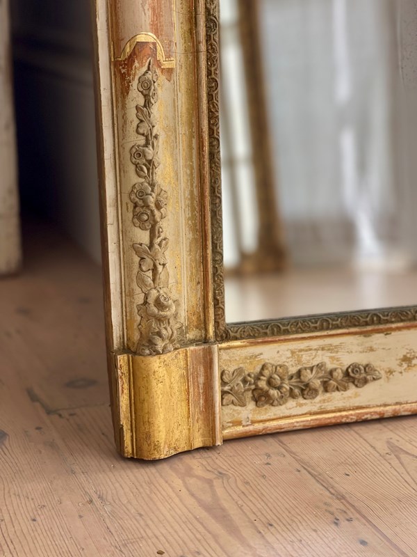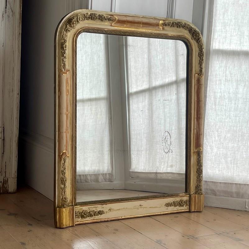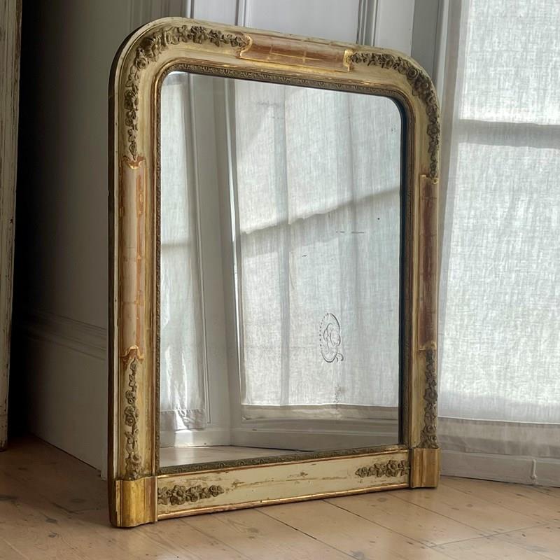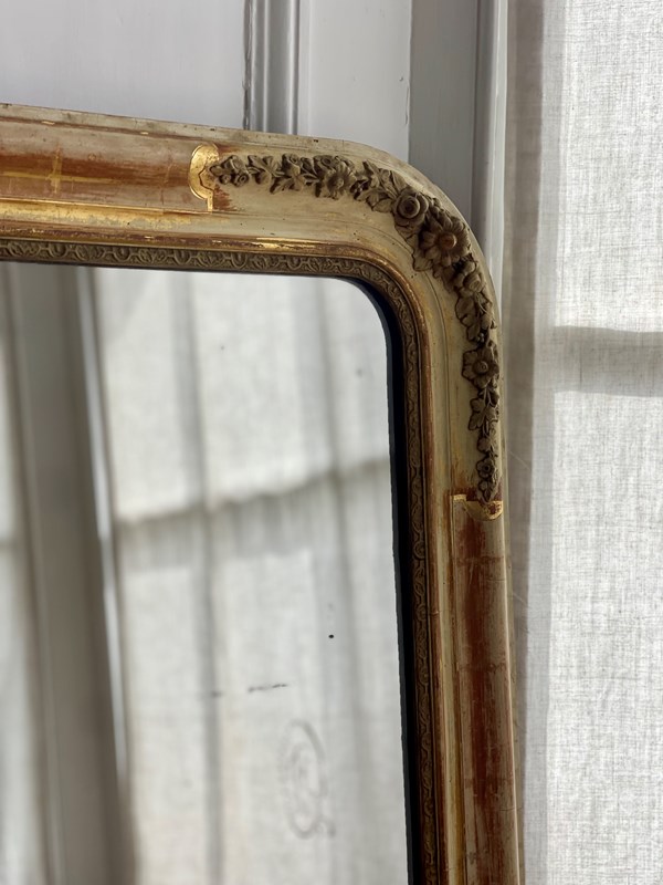 It has its lovely bare gesso and gilt frame which gives a more understated look to an entirely gilt mirror.