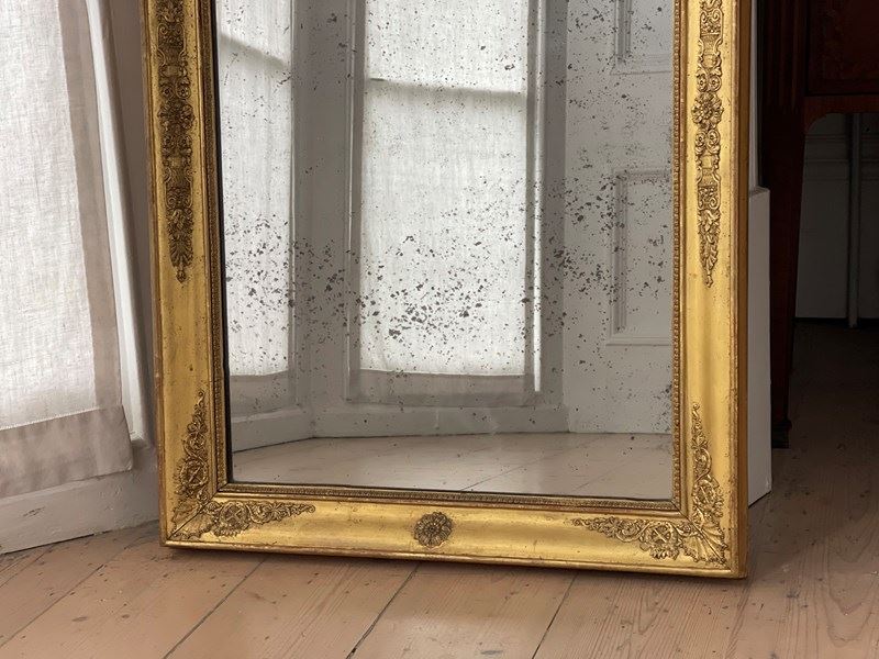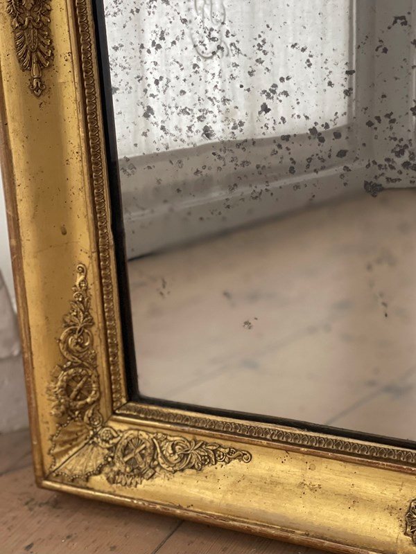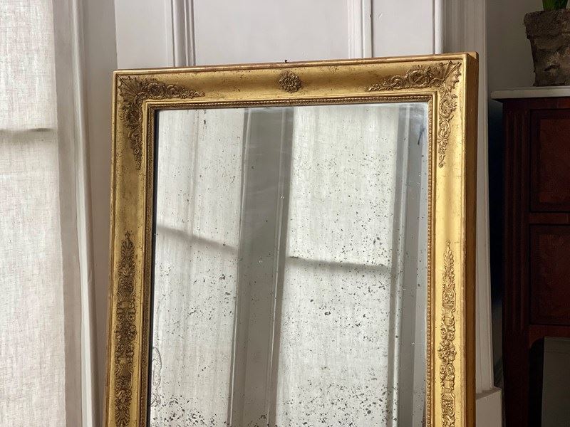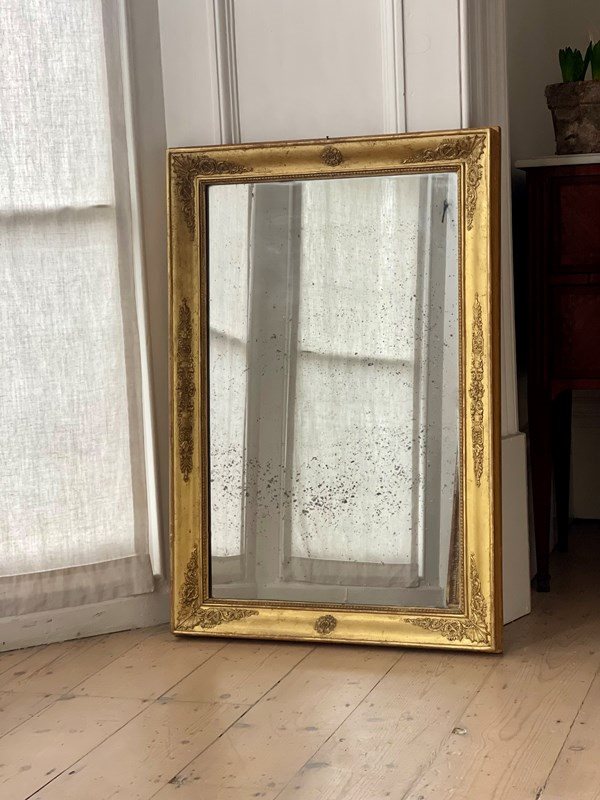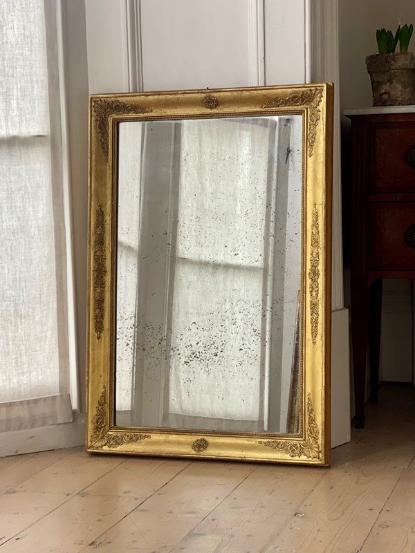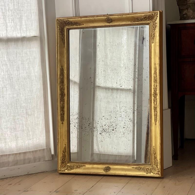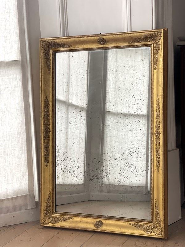 Antique French Gilt Rectangular Mirror C1800 - Mercury Glass