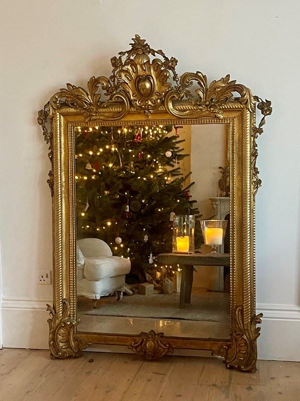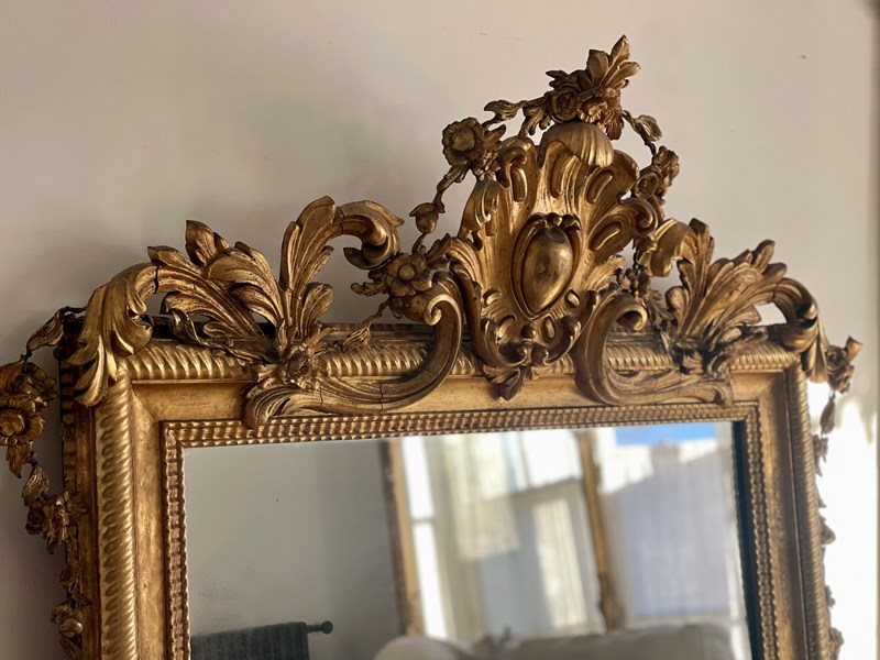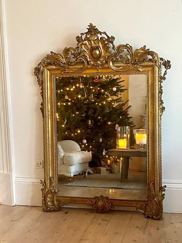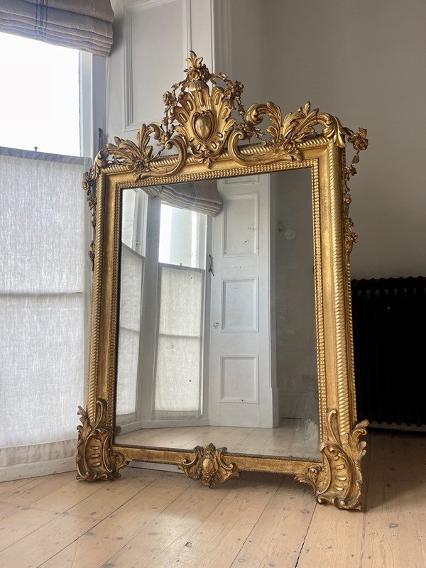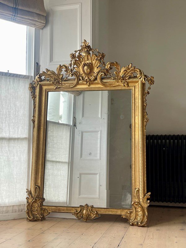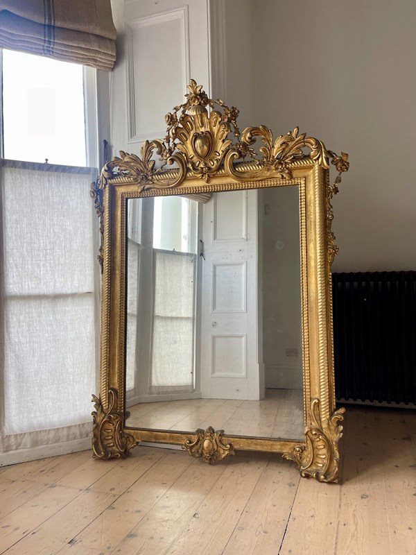 Large Antique French Gilt Mirror C1800 - Mercury Glass