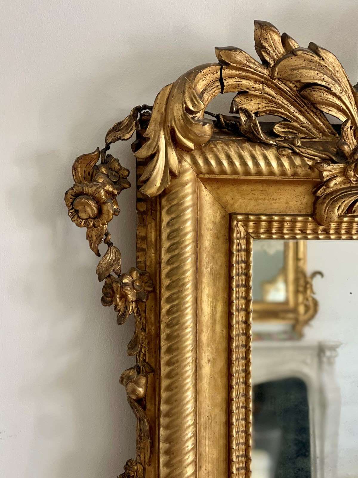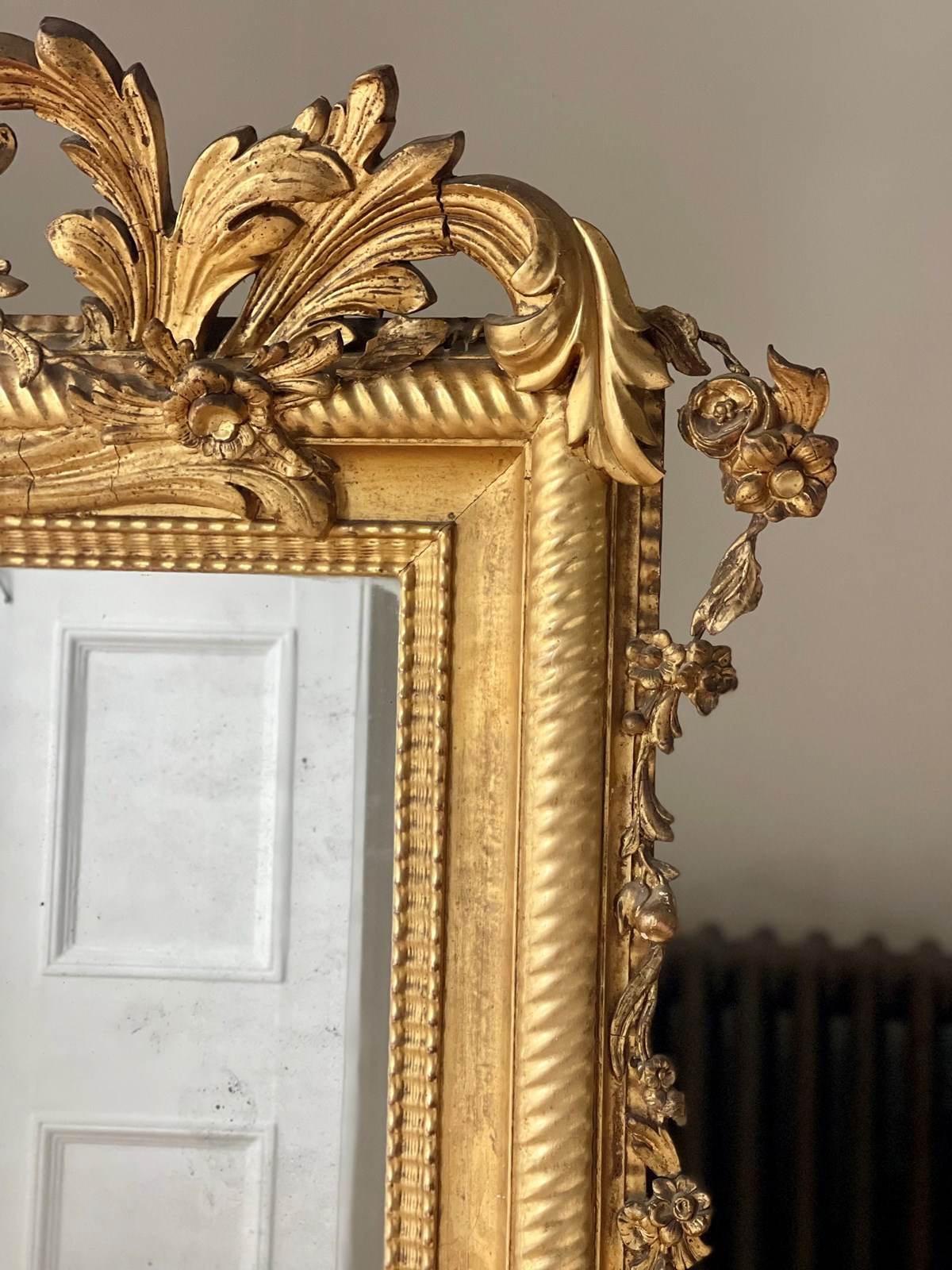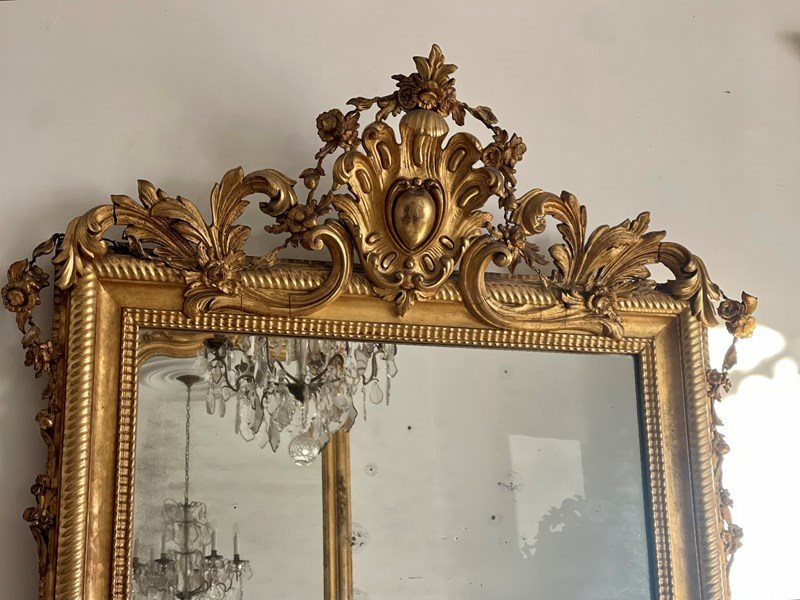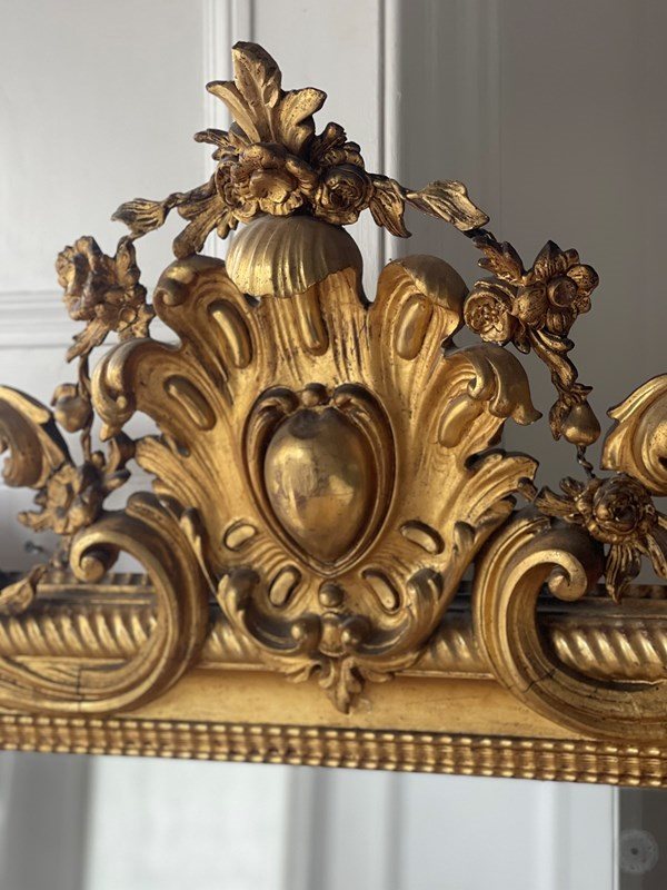 Large Antique French Gilt Mirror C1800 - Mercury Glass
