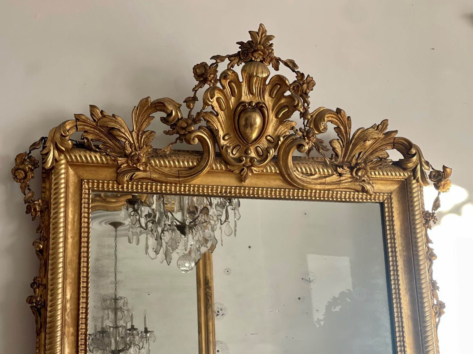 Large antique French gilt mirror.