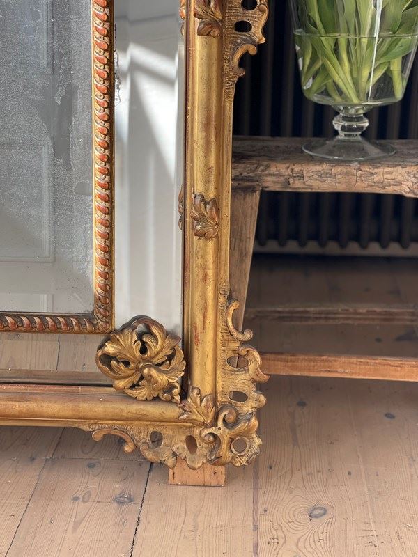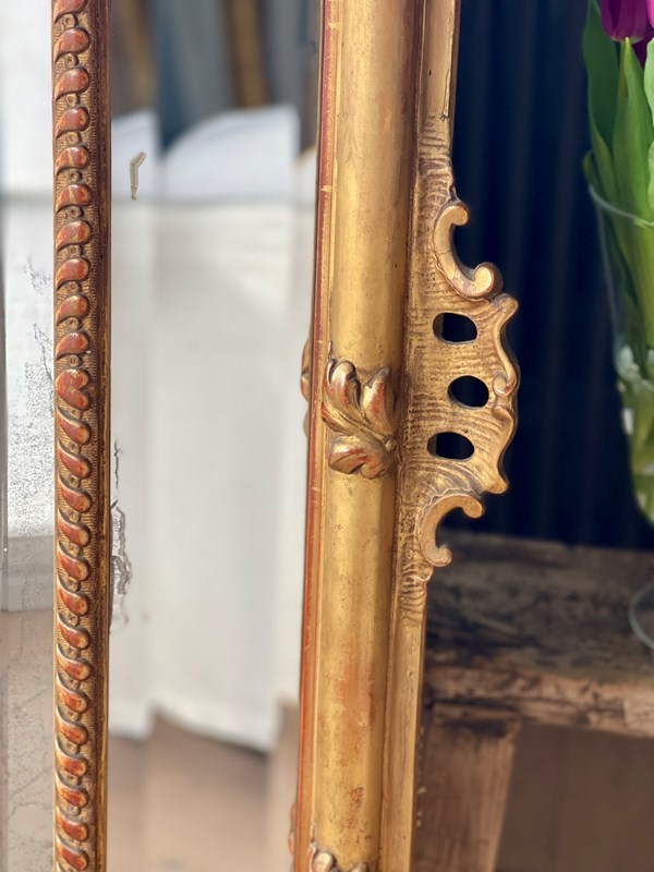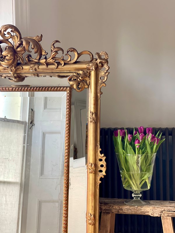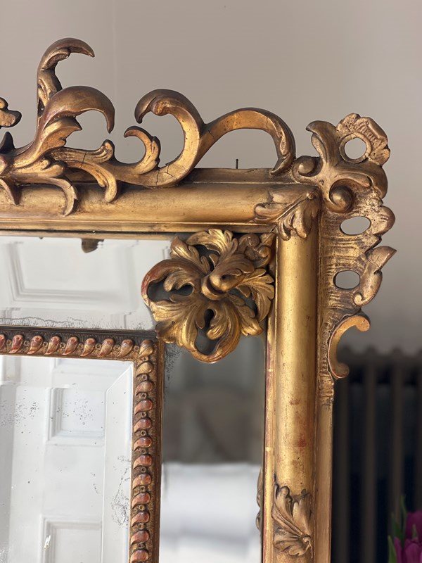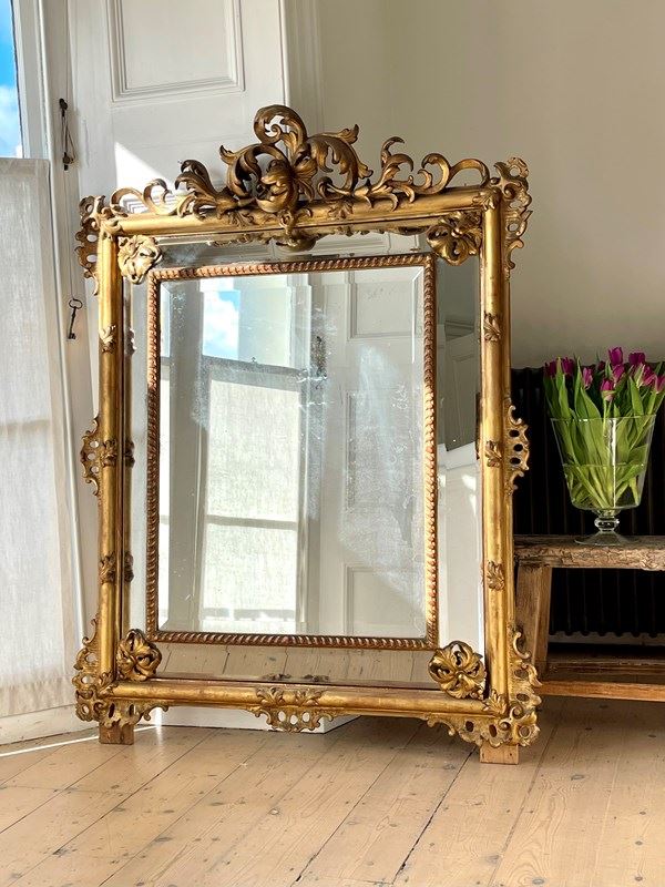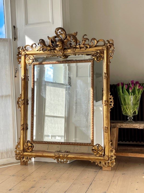 Large Antique French Gilt Cushion Mirror C1800 - Bevelled Mercury Glass