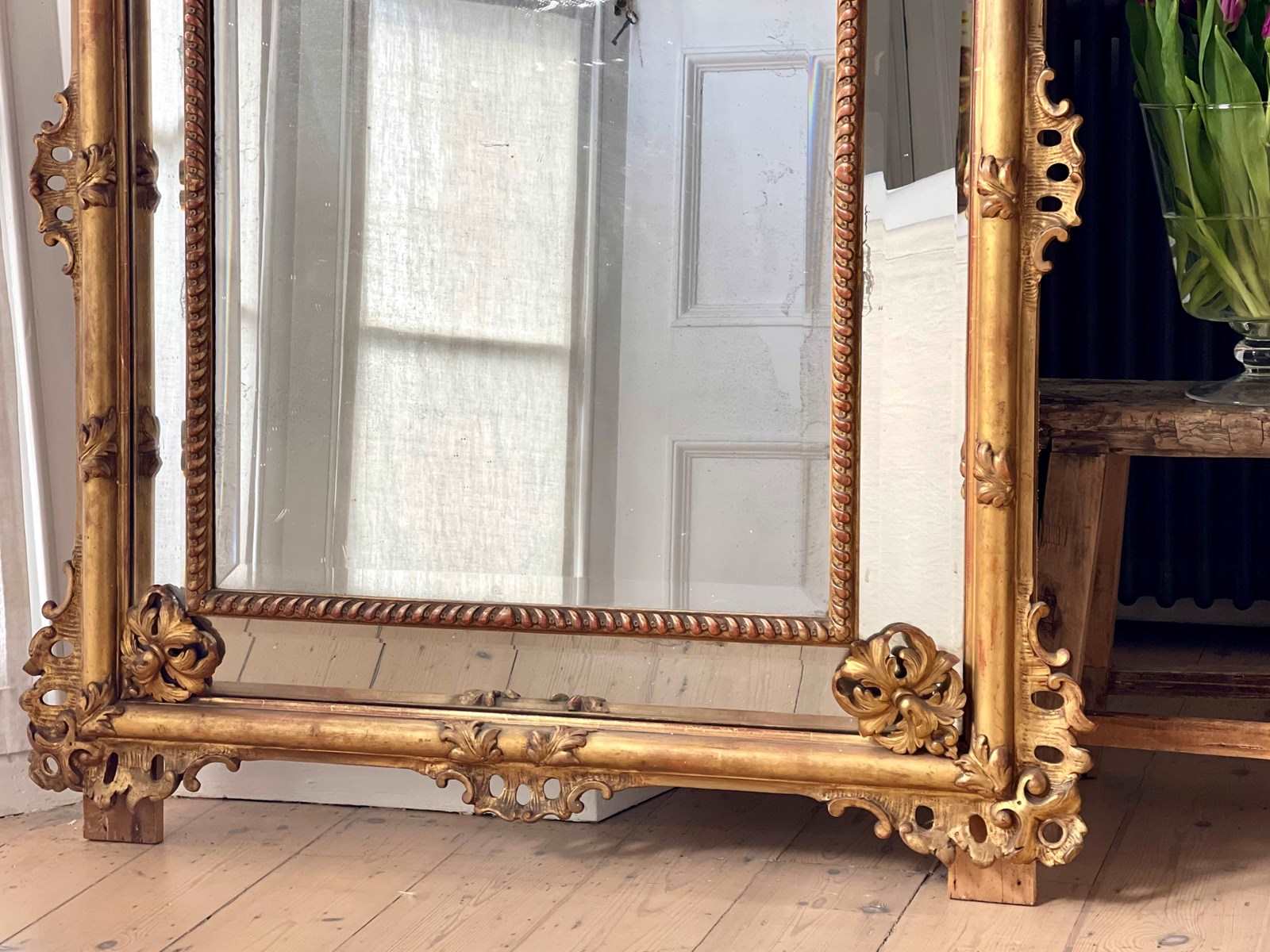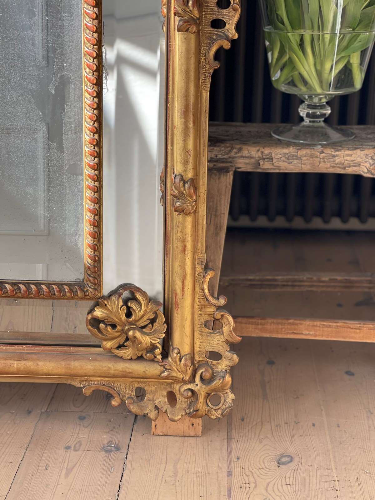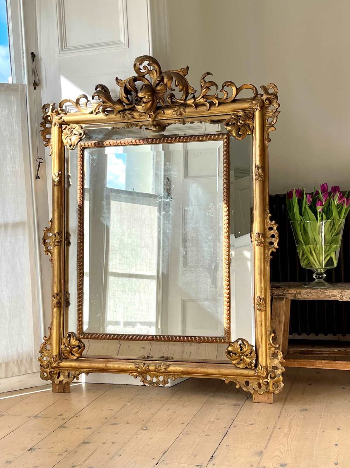 It has its ornate gilt on gesso frame with a huge amount of floral detail.