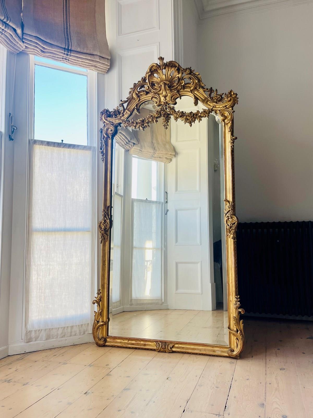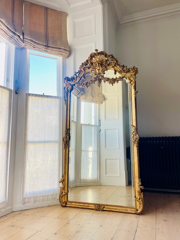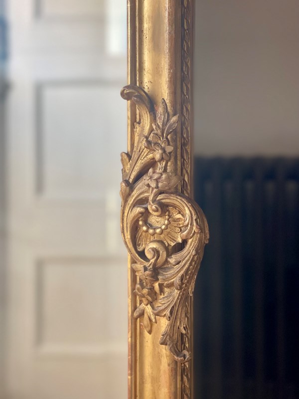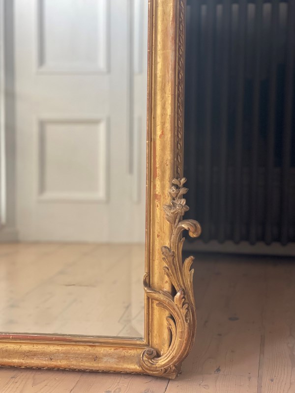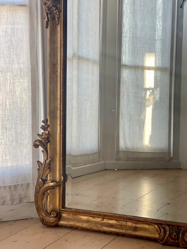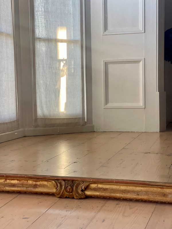 Large Antique French Gilt Leaner Mirror - Bevelled Glass