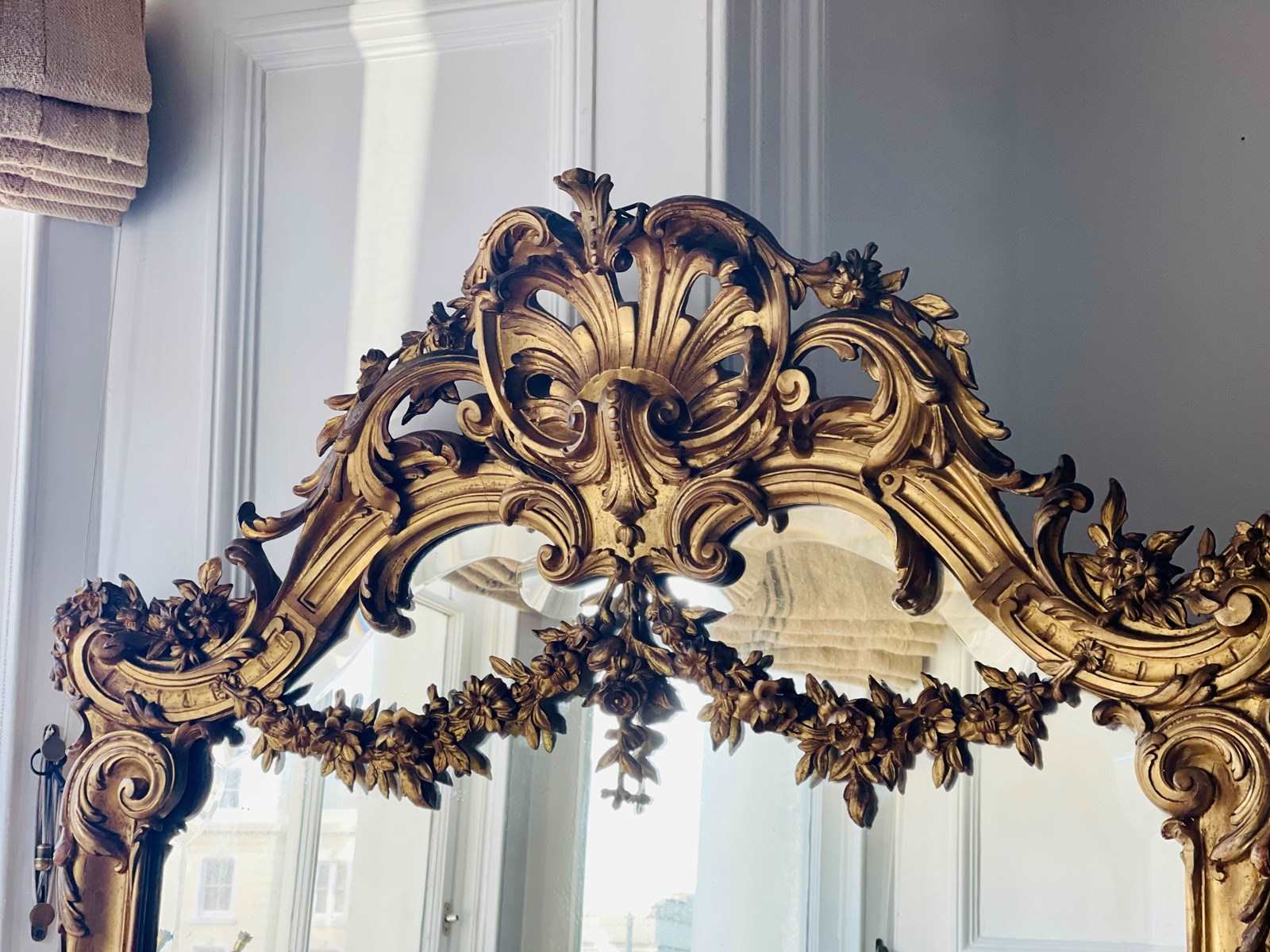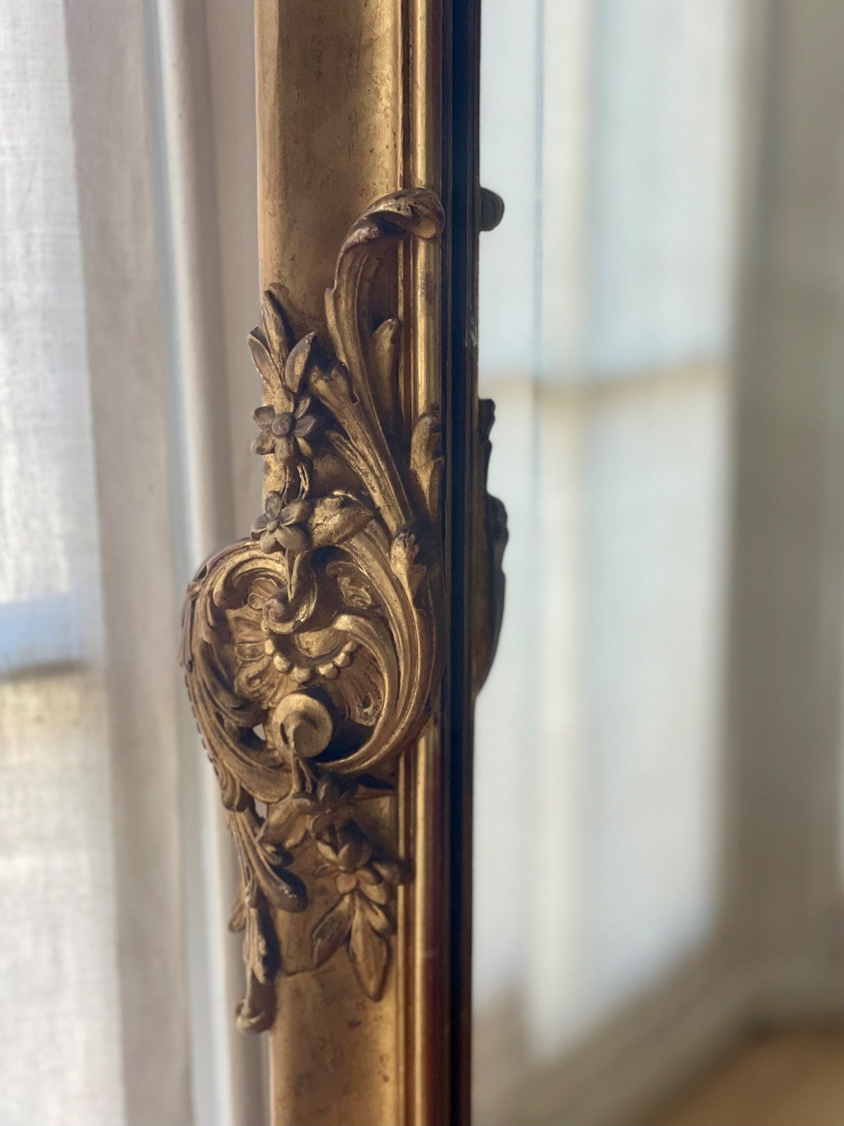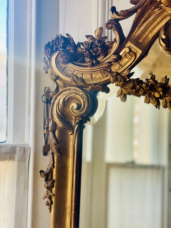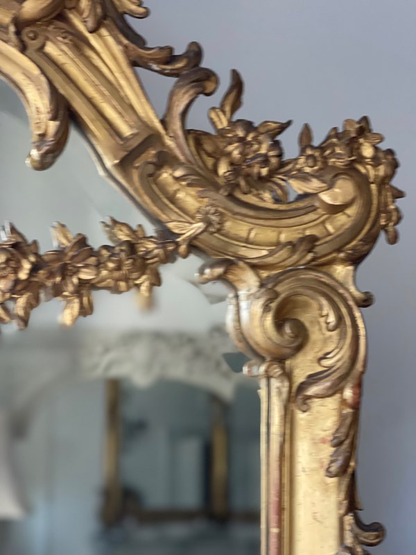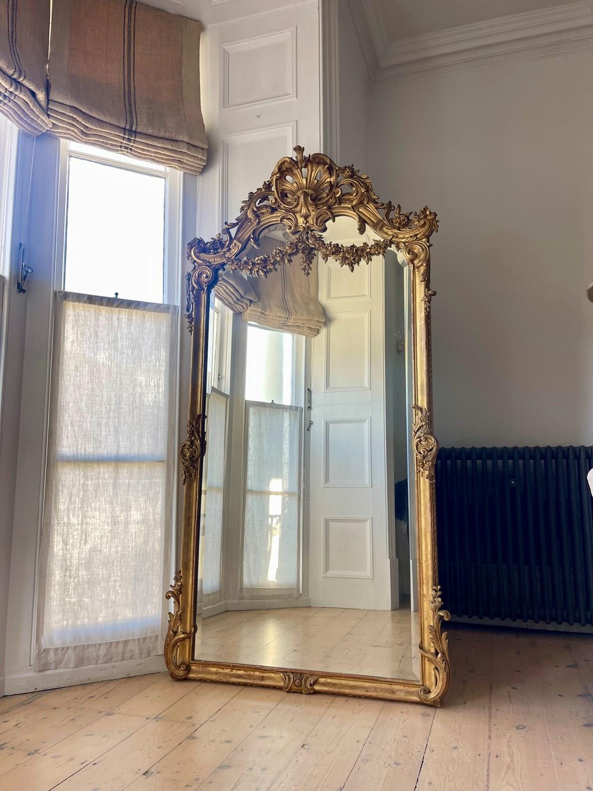Large Antique French Gilt Leaner Mirror - Bevelled Glass
