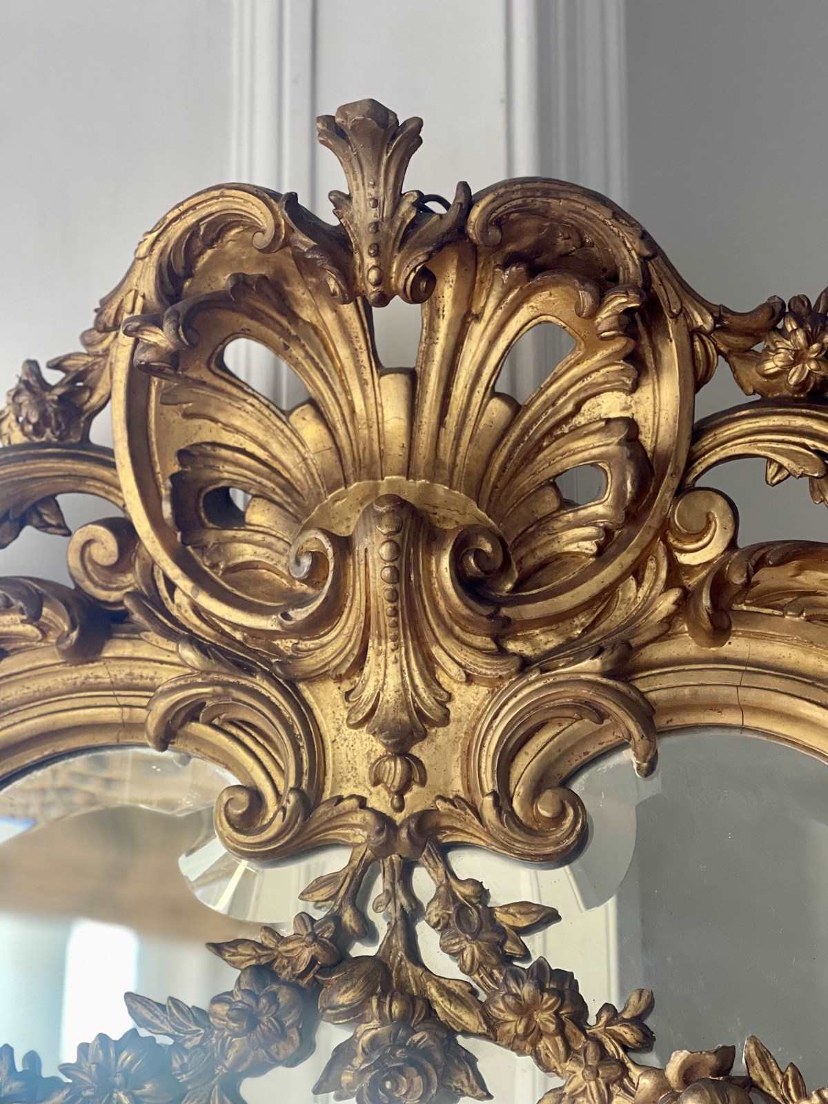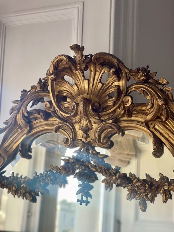 It has its large ornate real gilt on gesso frame including its huge shell crest, garlands, floral detail and scrolls, all in exceptional condition with no chips.
