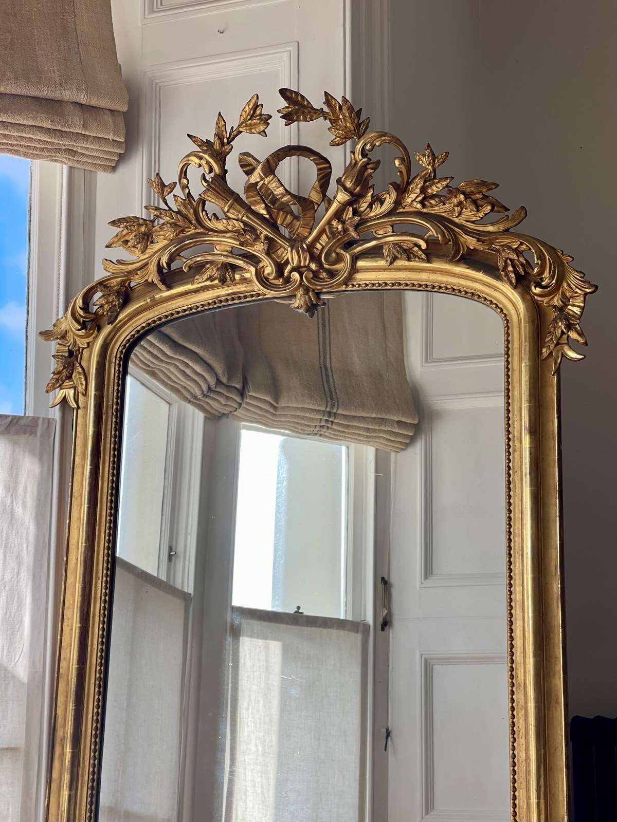 Large Antique French Gilt Leaner Mirror