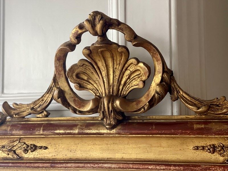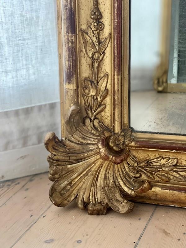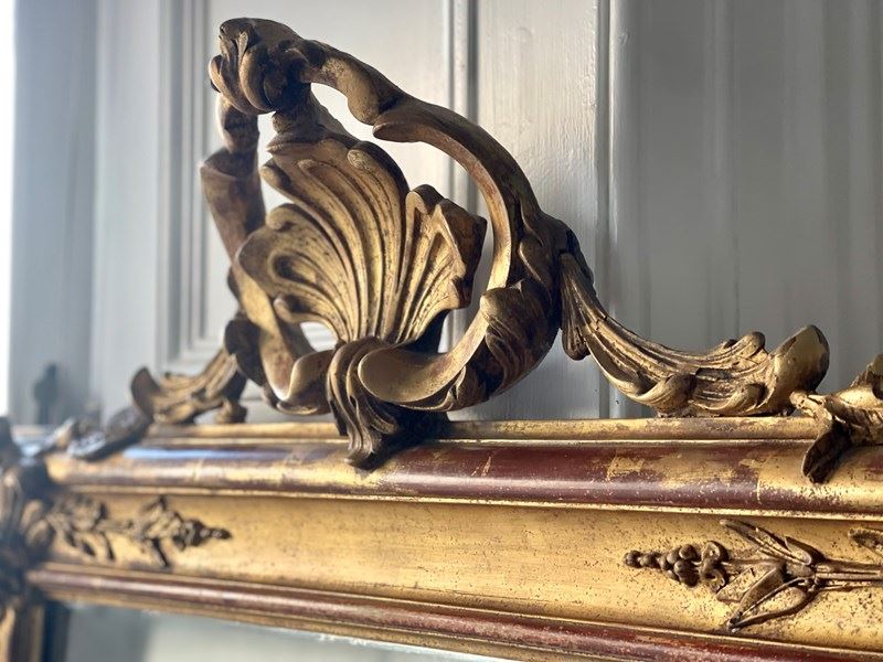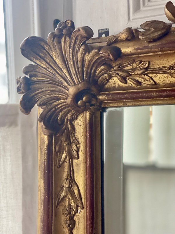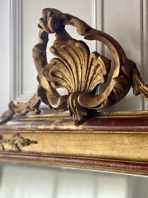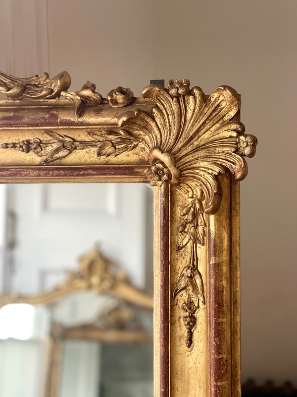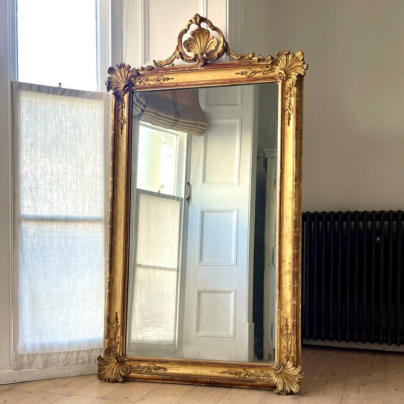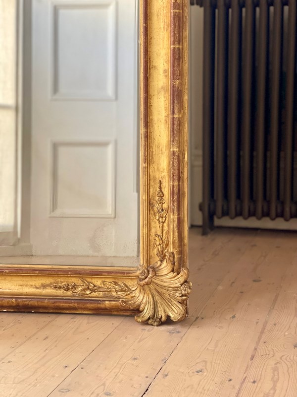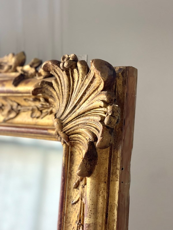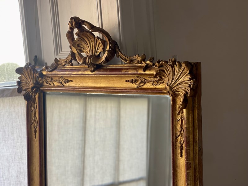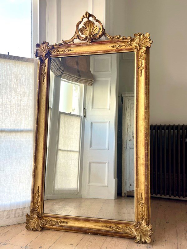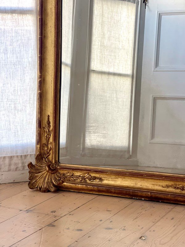 Large Antique French Gilt Leaner Mirror - Mercury Glass