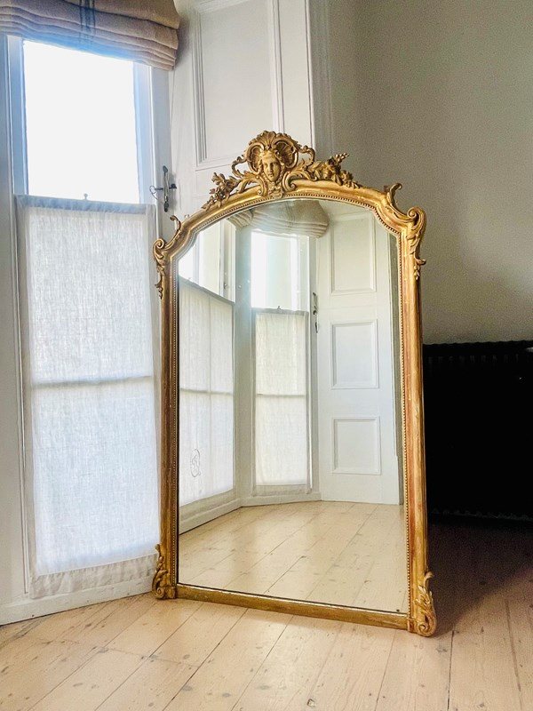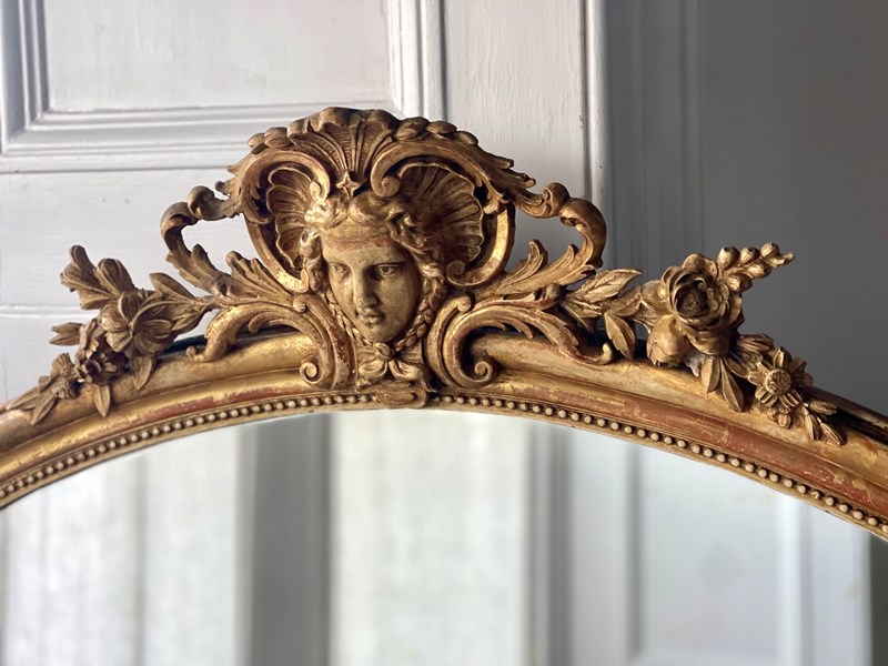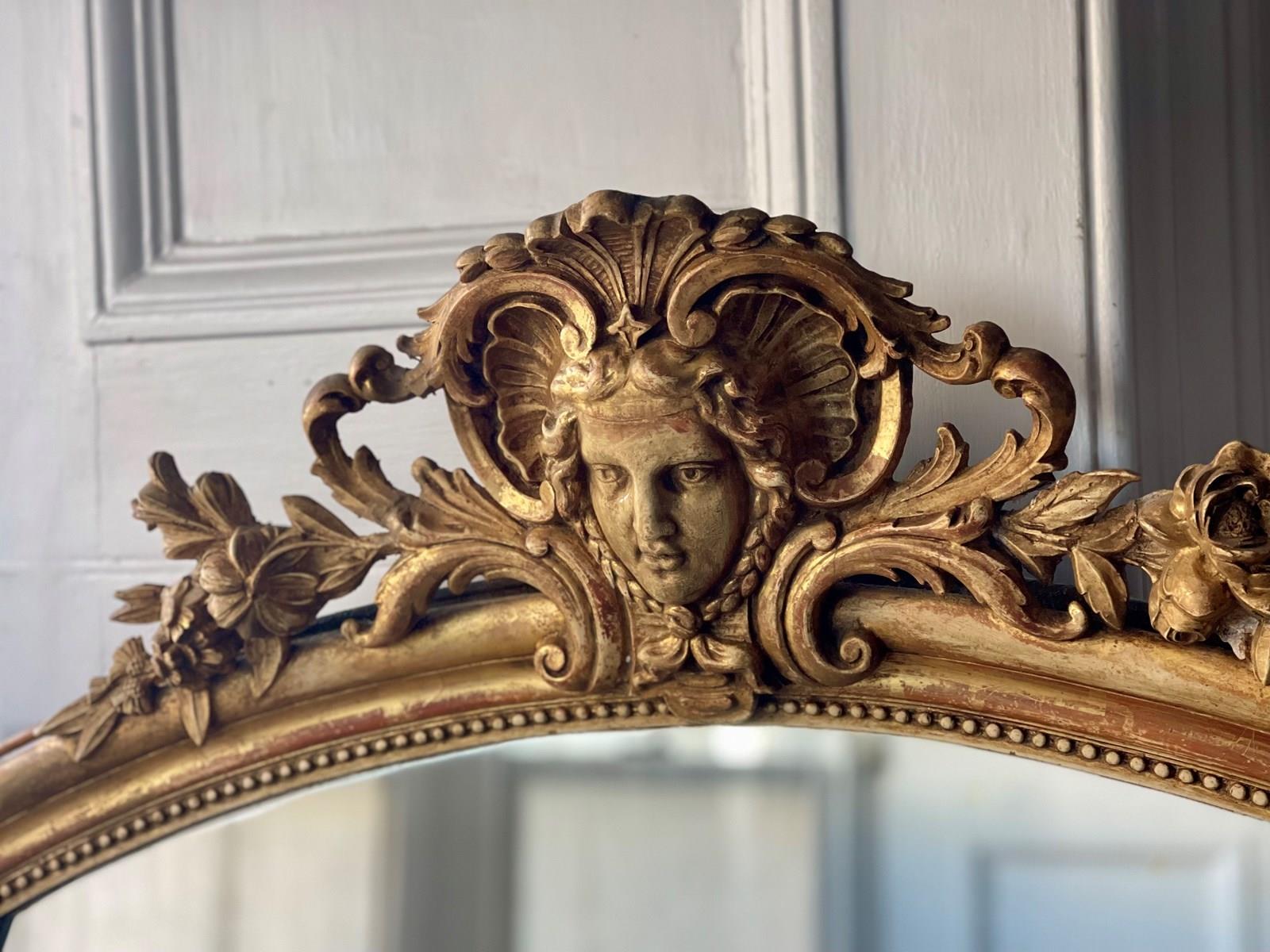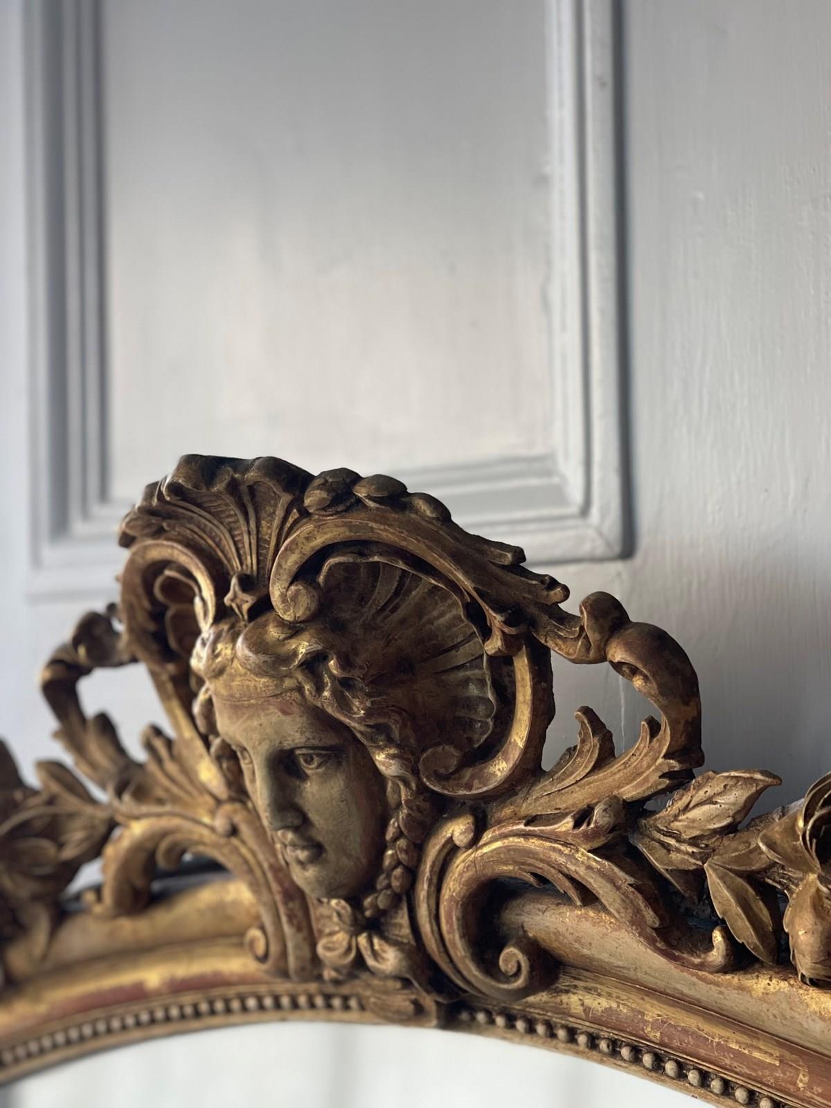 It dates from around 1880 and has its stunning real gilt ( gold leaf) on gesso frame with lovely ornate mask and floral crest and scrolls on either side at the top and bottom.