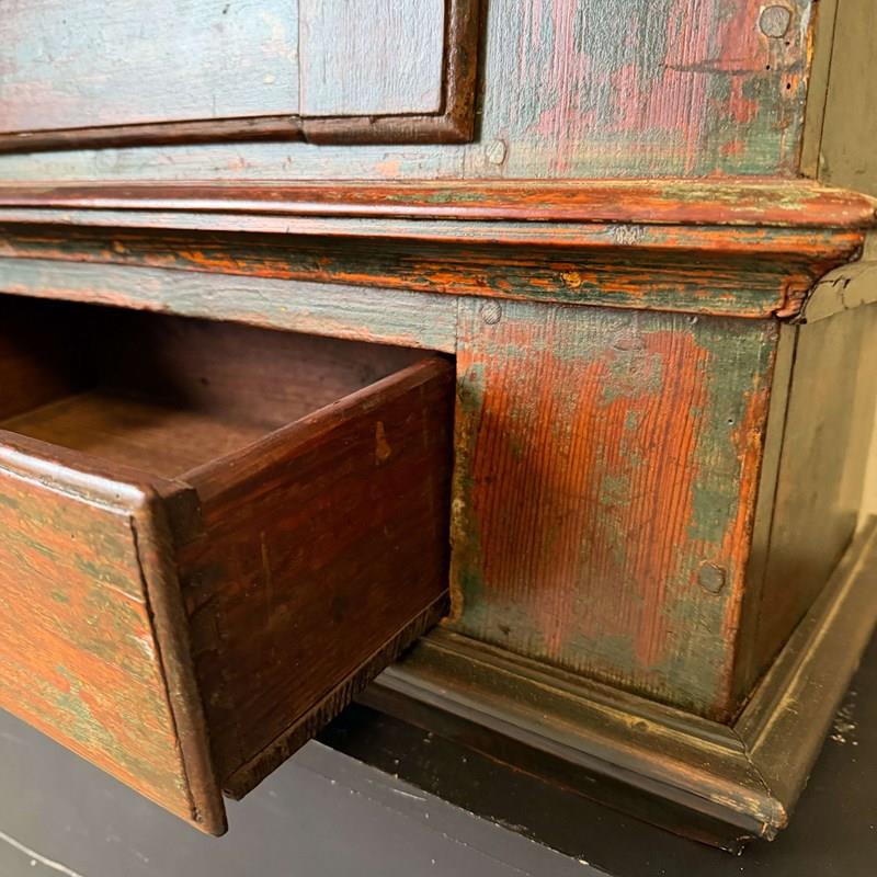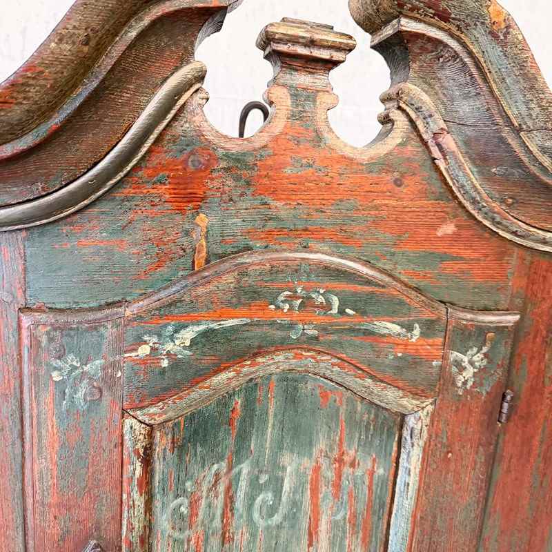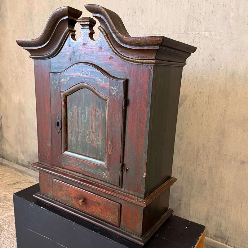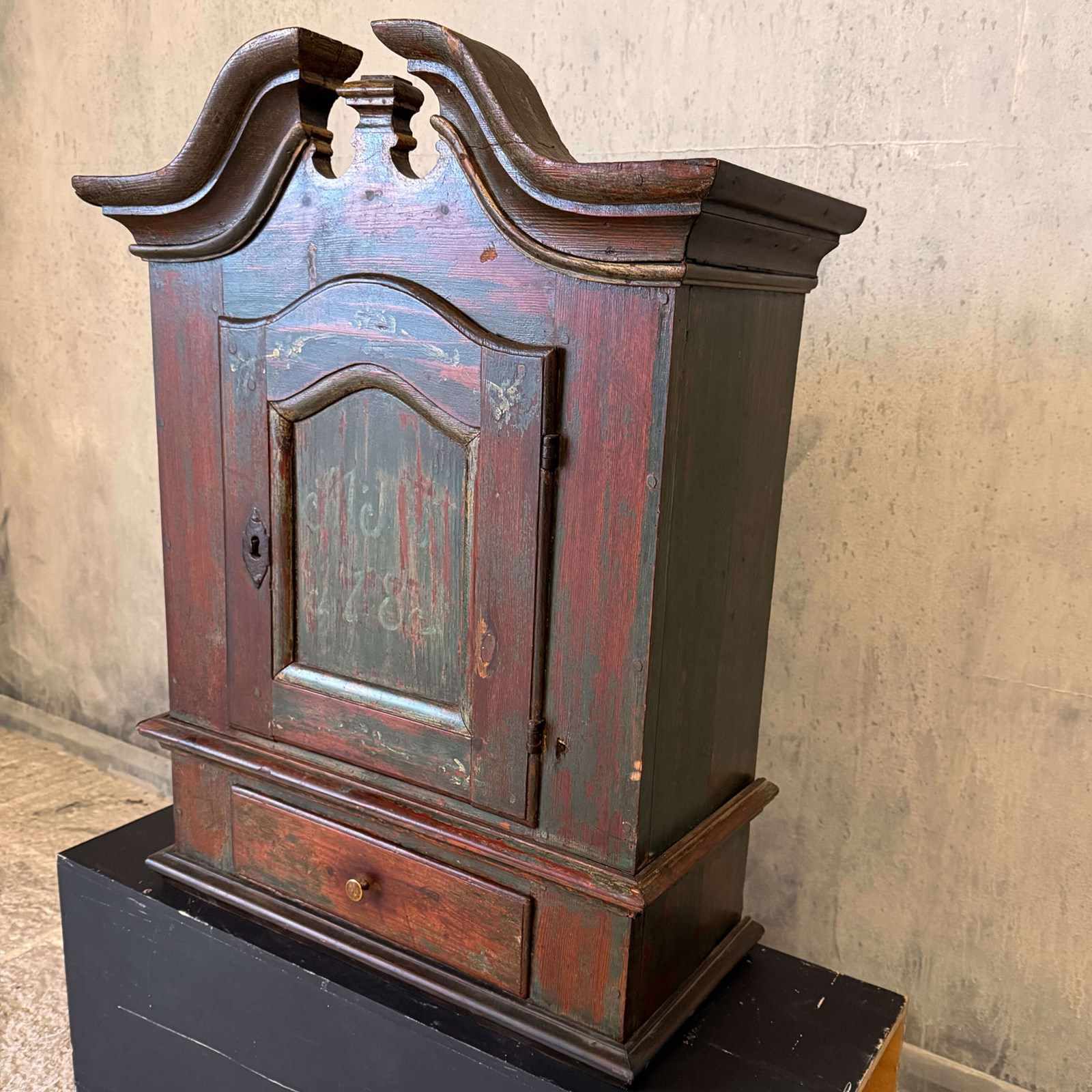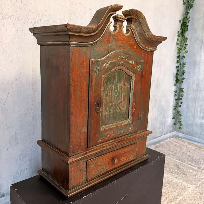 Compact in scale yet rich in character, this cupboard is ideal for both decorative and functional use, offering a glimpse into everyday domestic life in 18th-century Sweden.