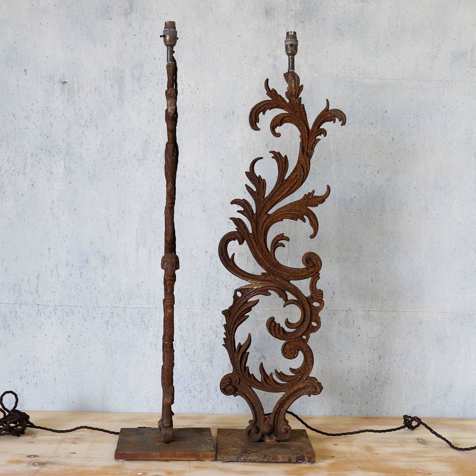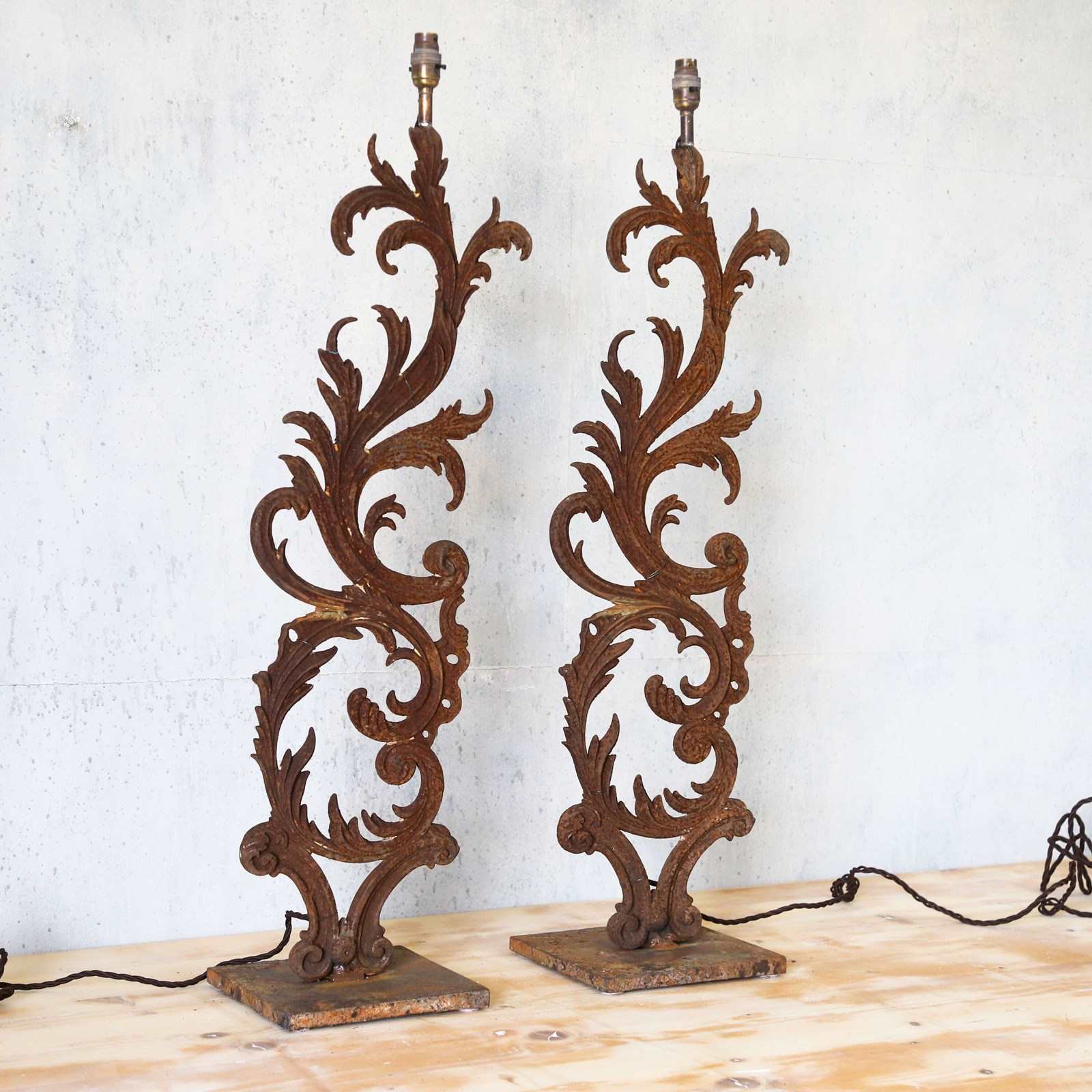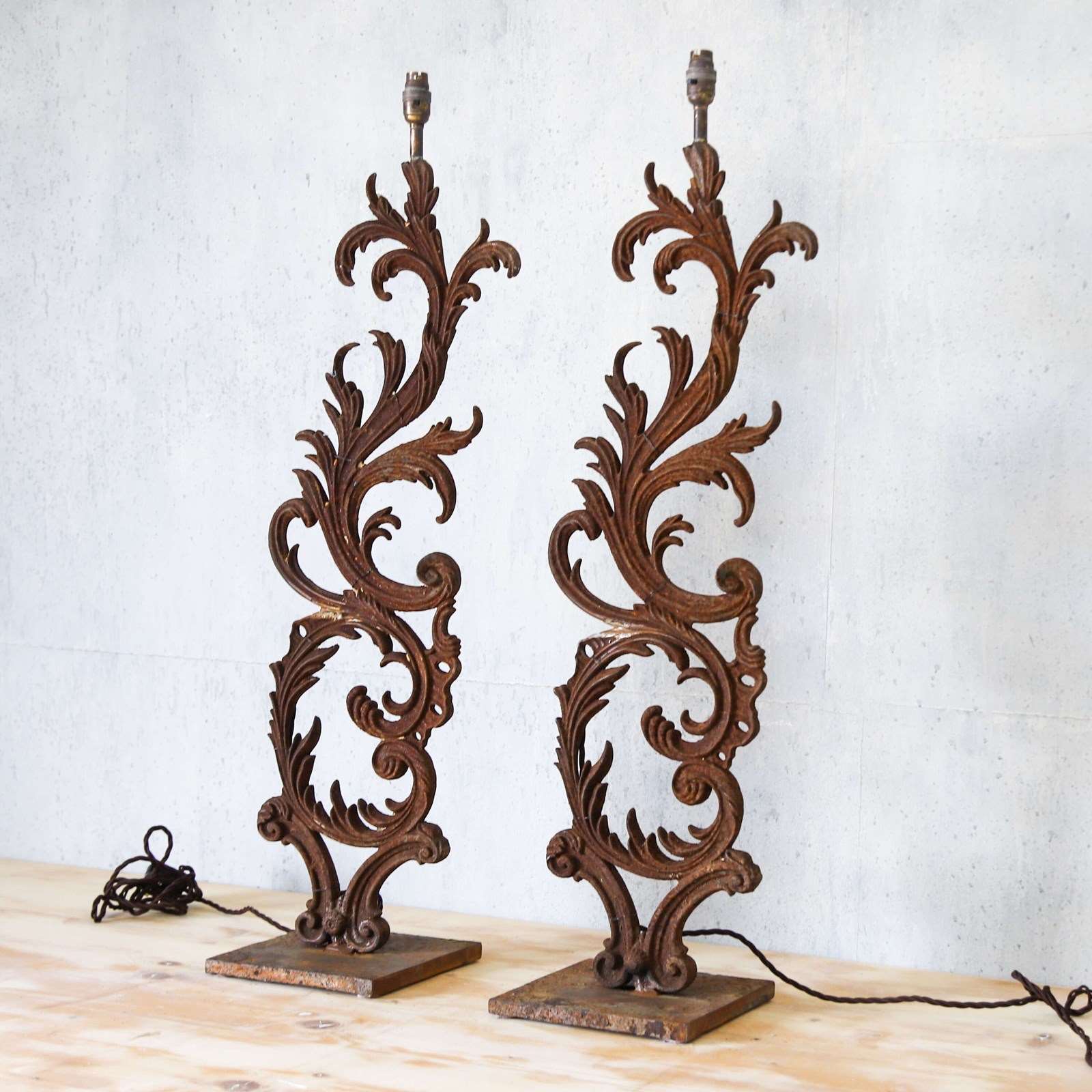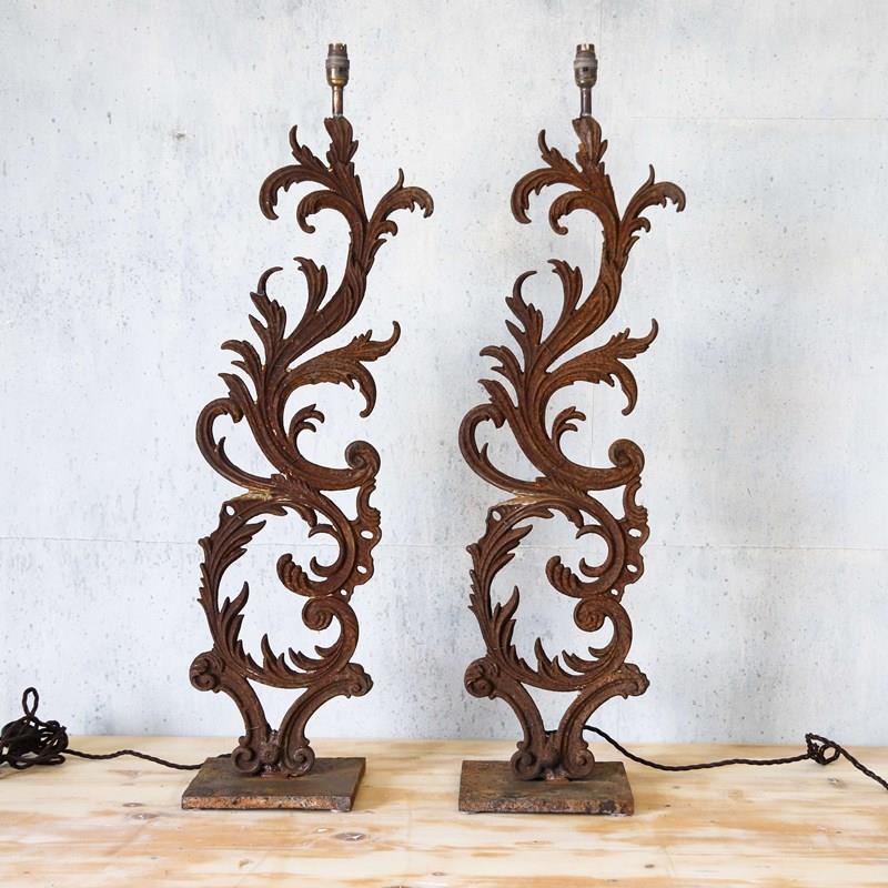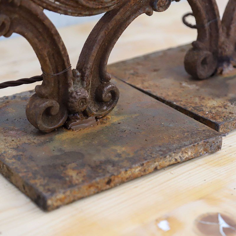 French 19th-century lamps fashioned from hand-forged balcony railings