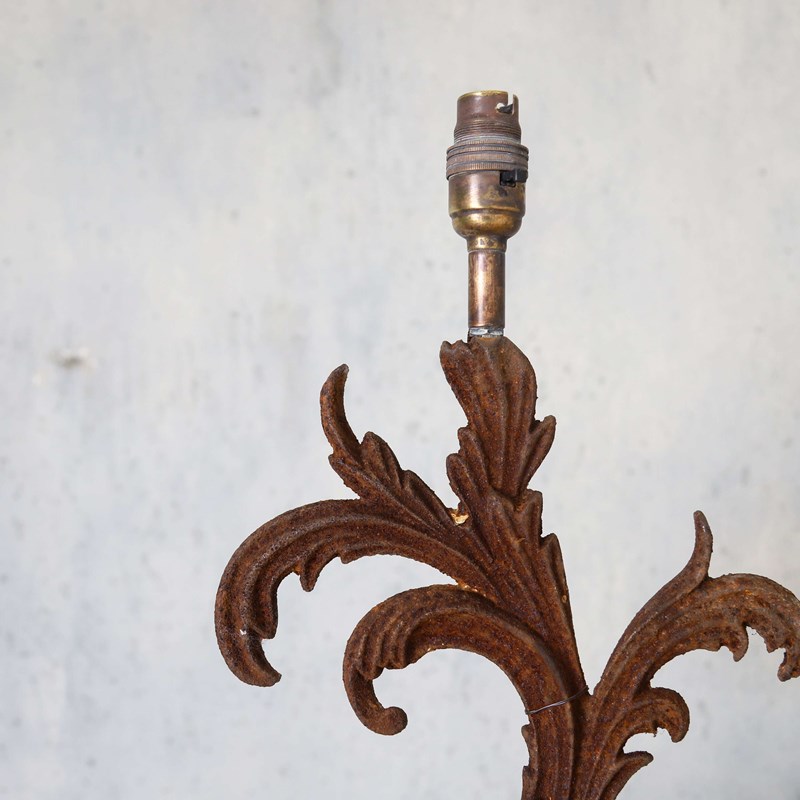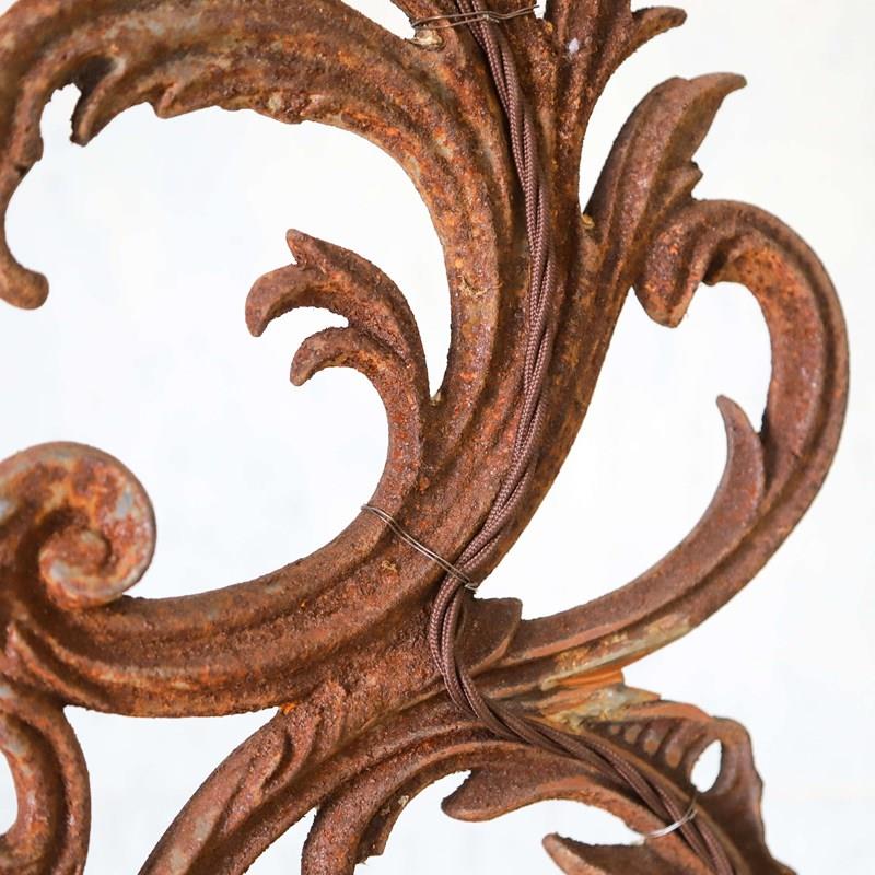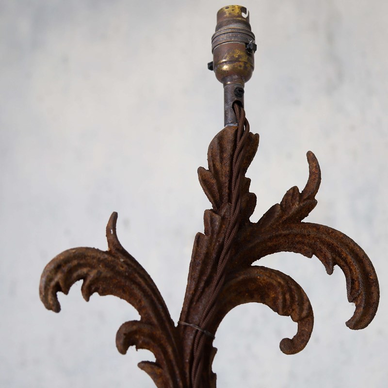Pair Of 19Th Century French Acanthus Leaf Wrought Iron Lamp