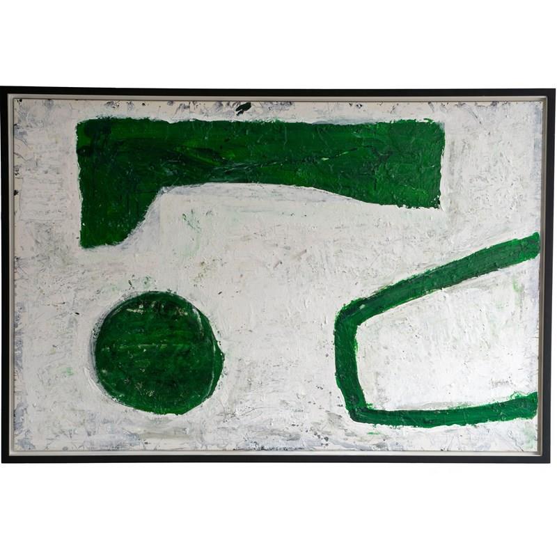 A large, original abstract acrylic painting by Sofia Alexander professionally mounted in a handmade black painted solid wood floating frame.