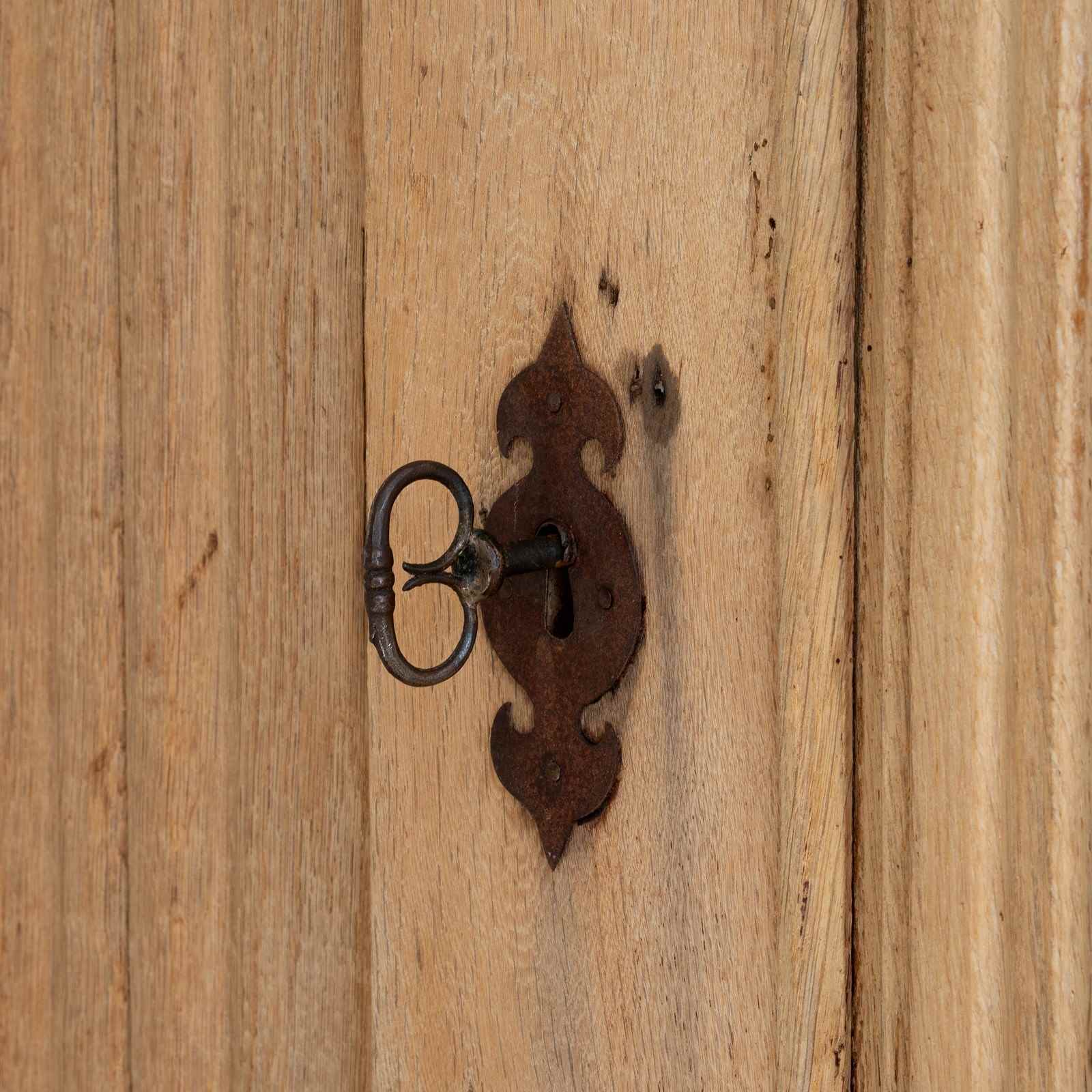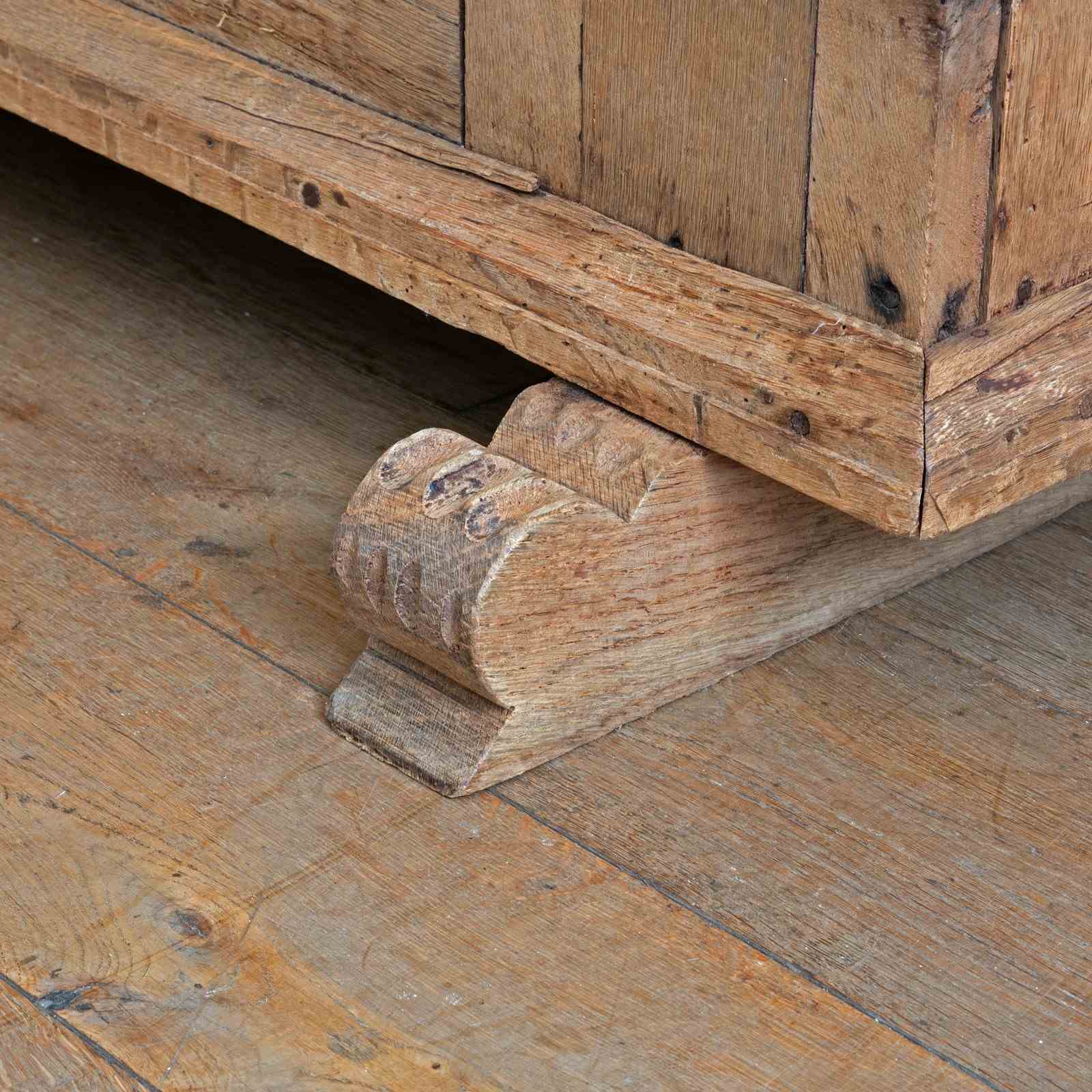 A magnificent solid oak Northern European 'Spinde' cabinet with vertical reeded door panel, shelved interior and decorative hand carved feet. Circa 1780 to 1790.