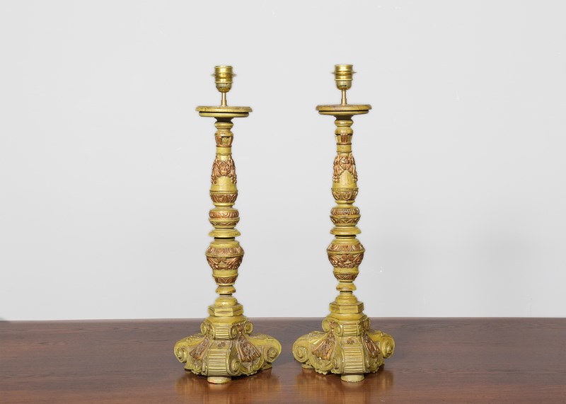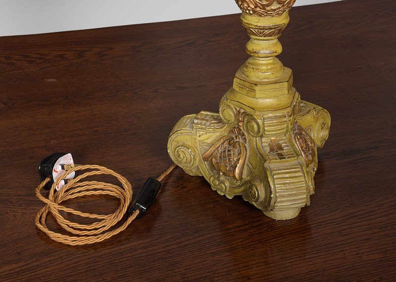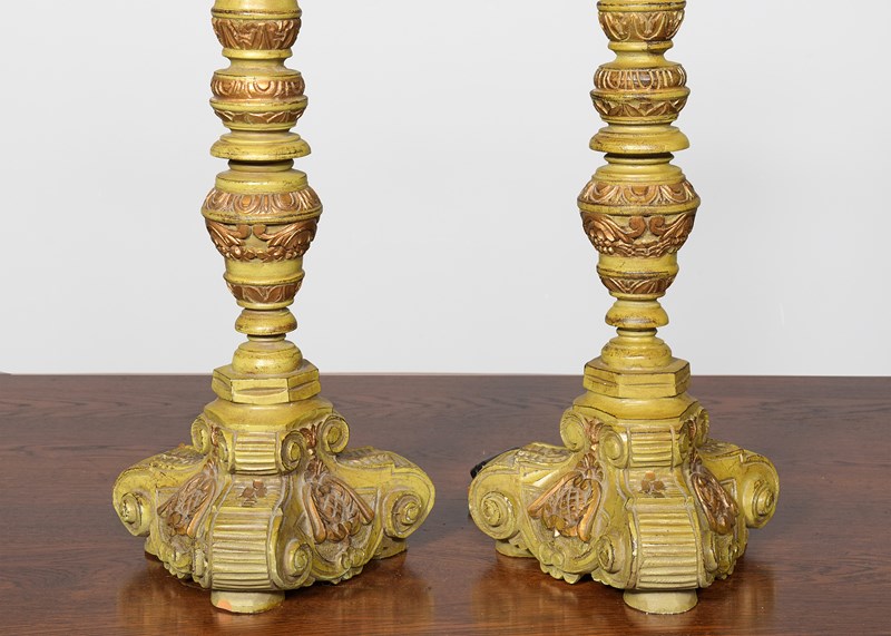 A Massive Pair Of Venetian Style Carved And Painted Lamps