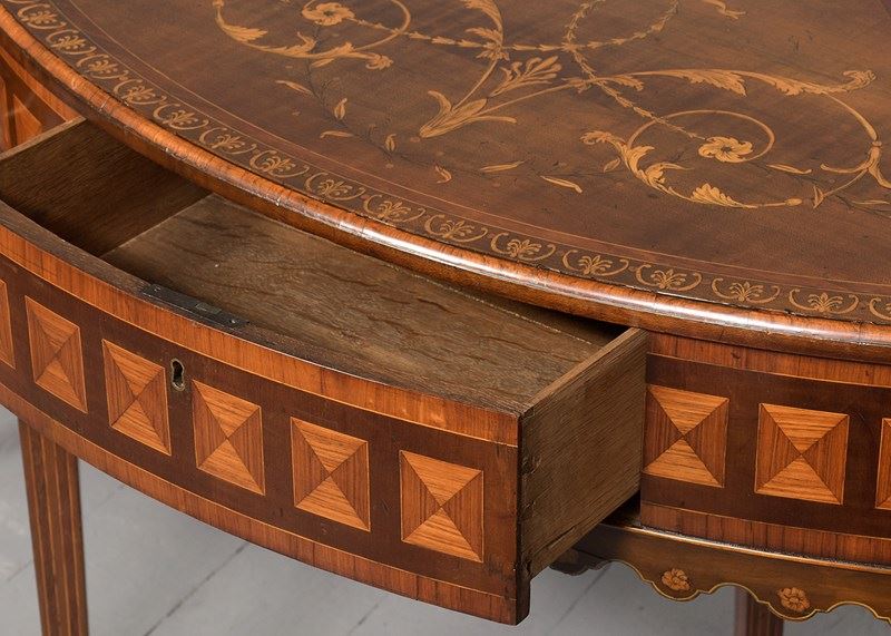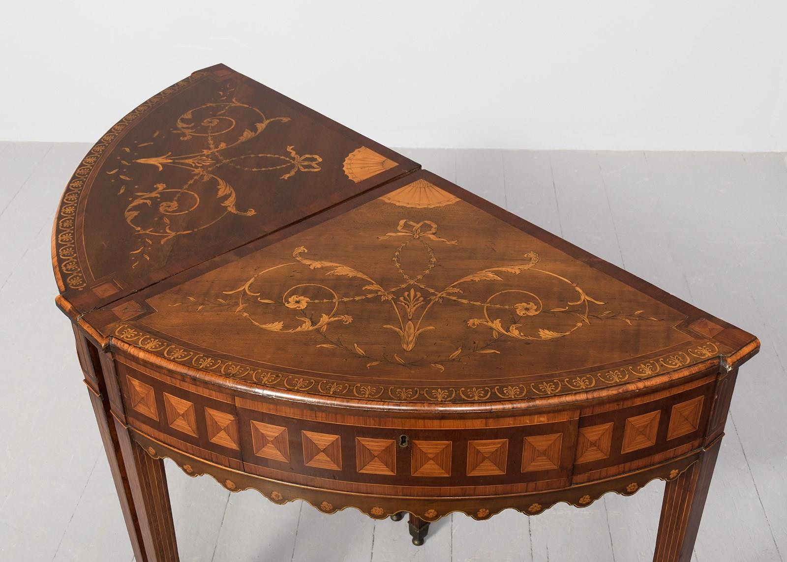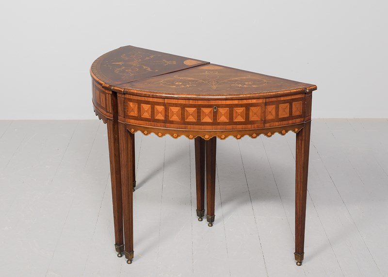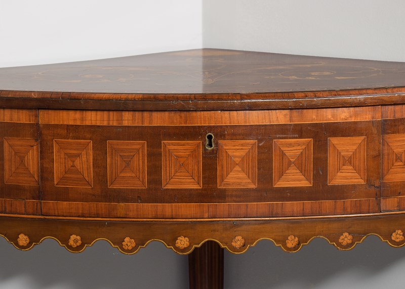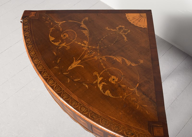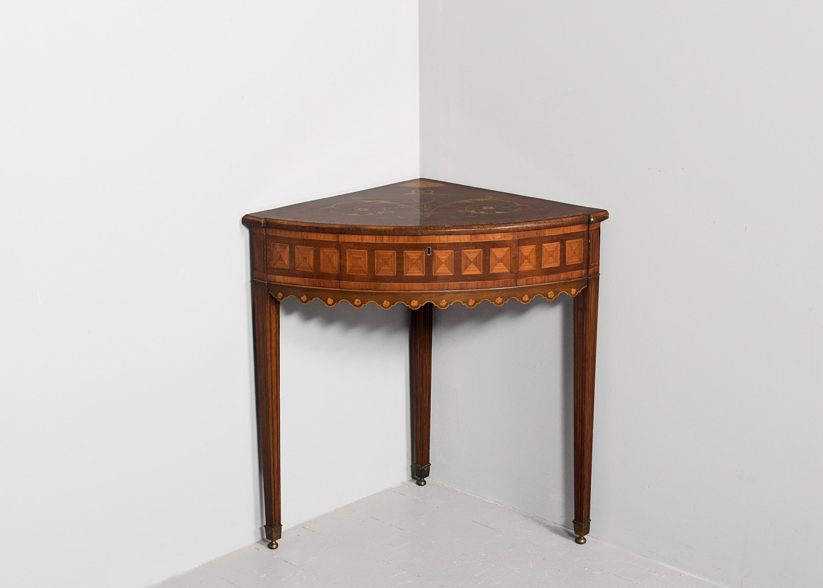 A Pair Of Mahogany, Satinwood, Fruitwood And Marquetry Corner Tables