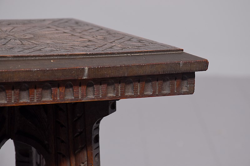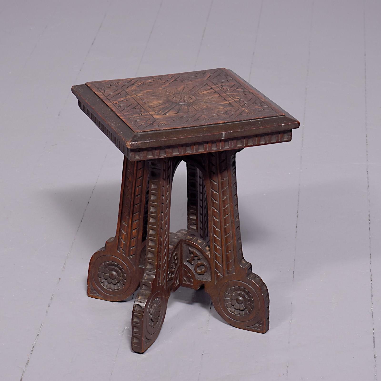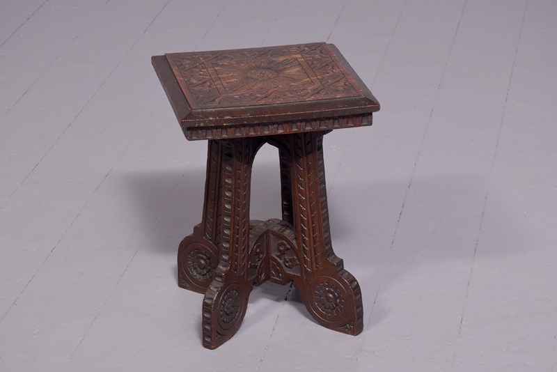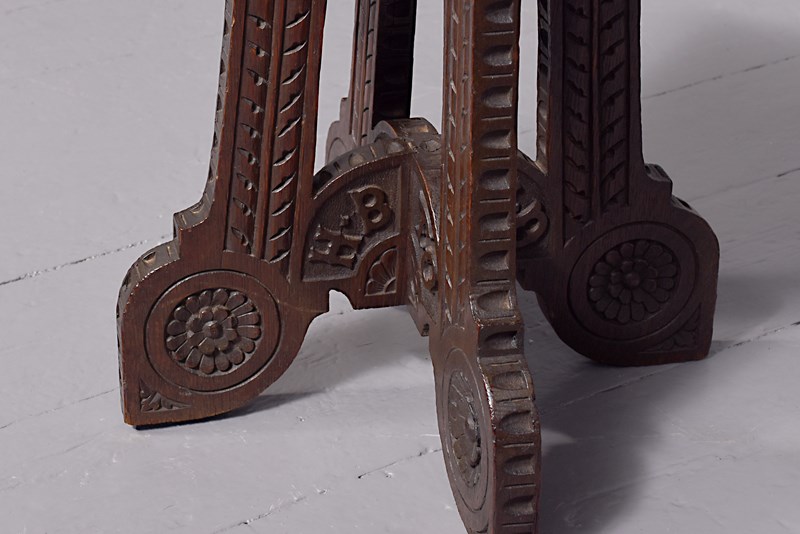 Art Nouveau Or Arts And Crafts Carved Oak Occasional Table