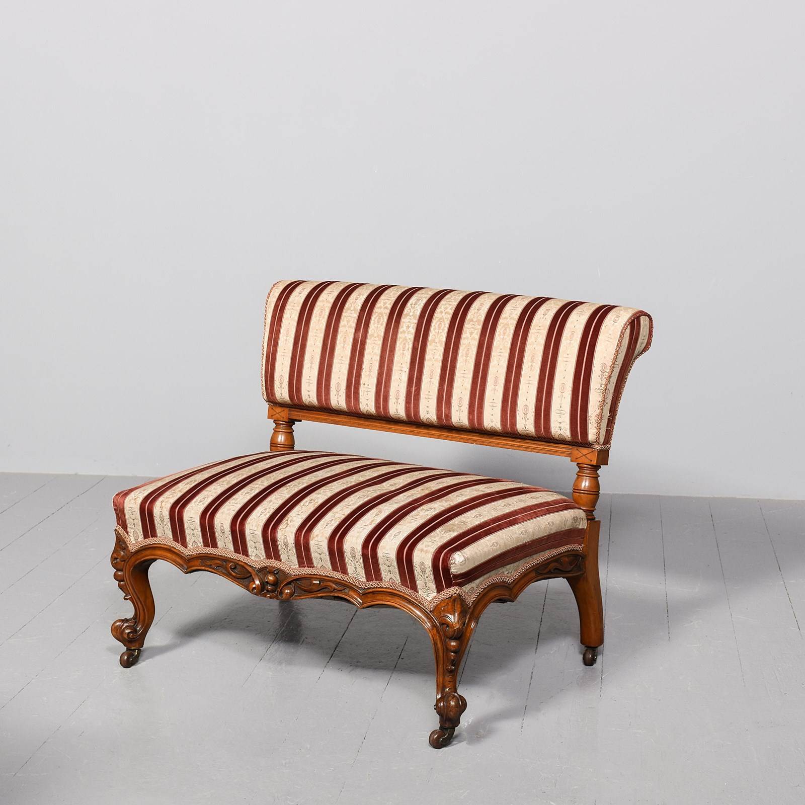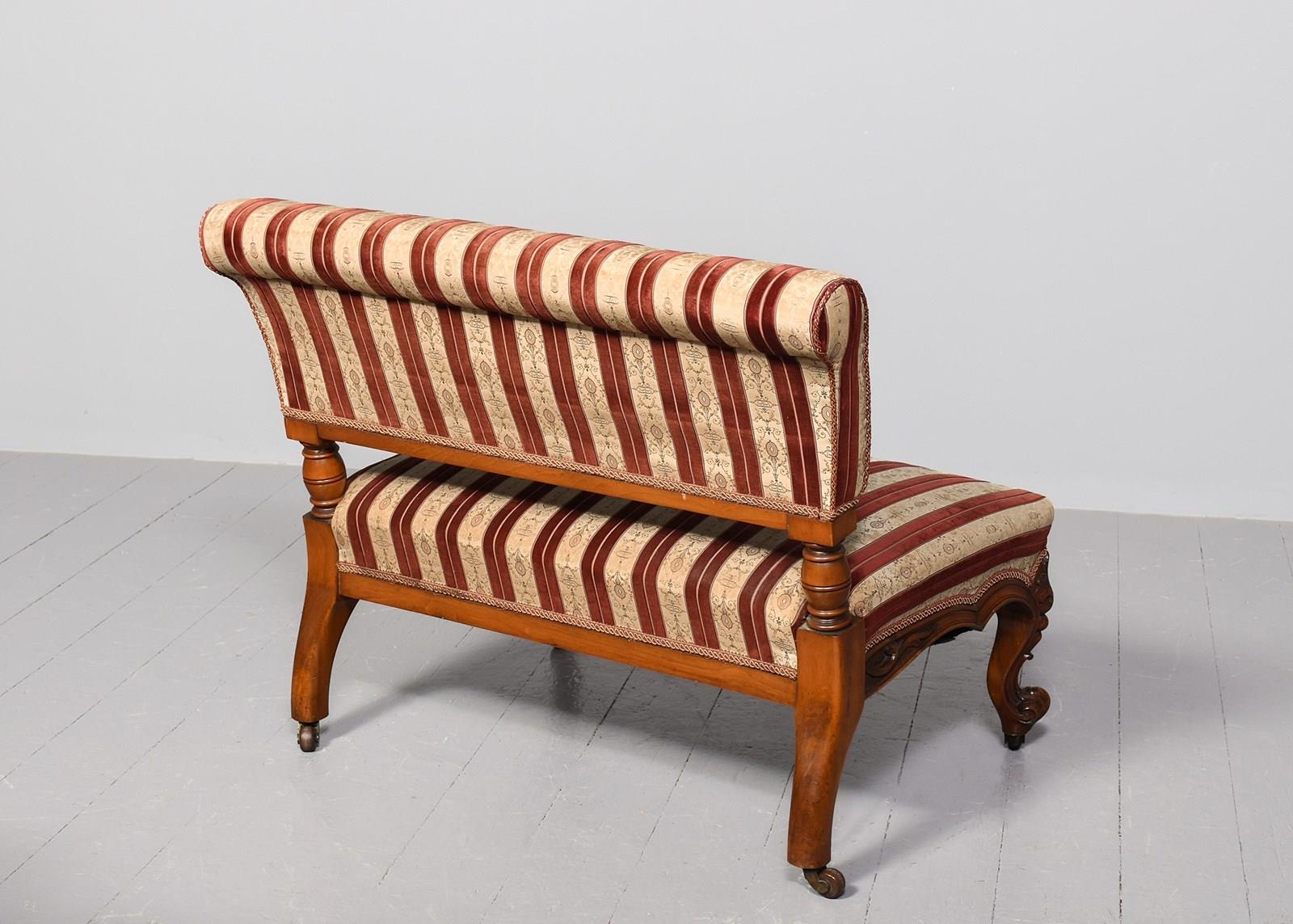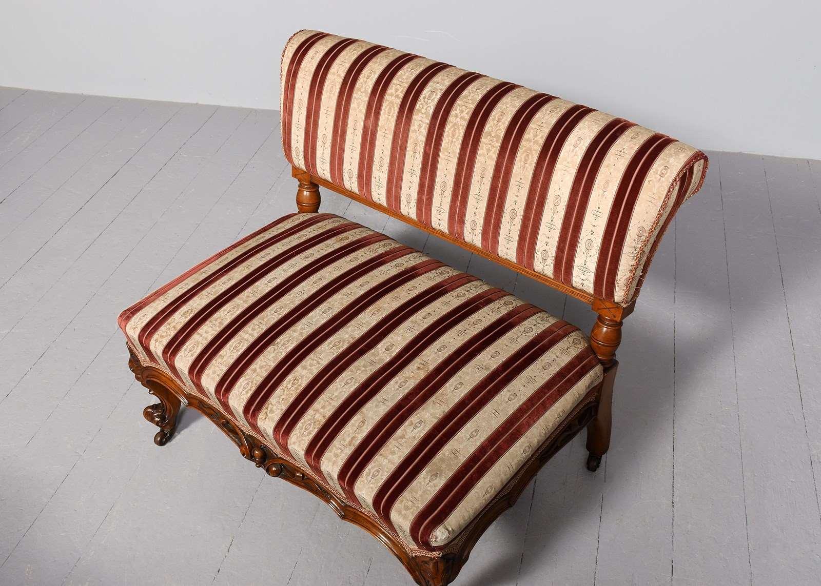 Attractive, Neat-Sized Carved Walnut Victorian Settee In Excellent Condition