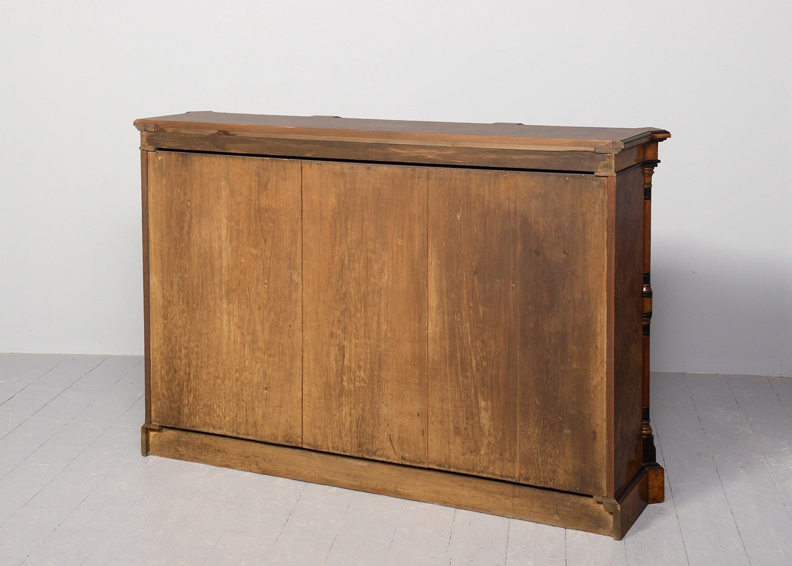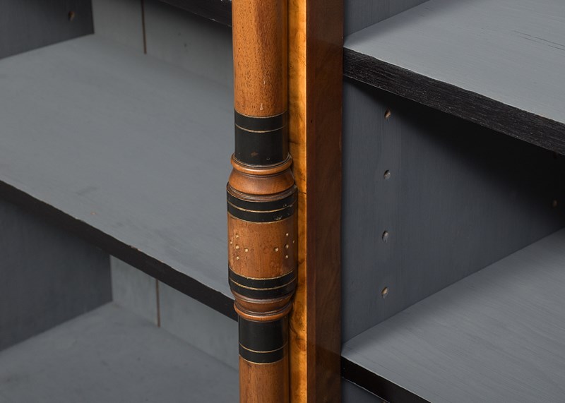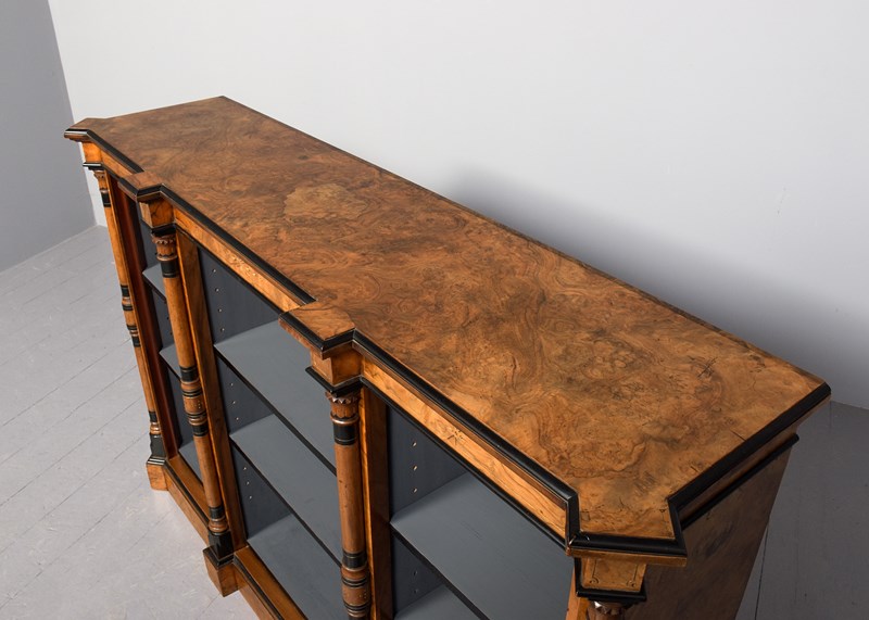 Burr Walnut Three-Section Low, Open Bookcase