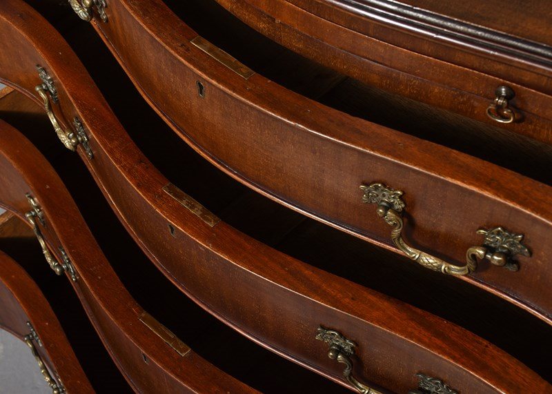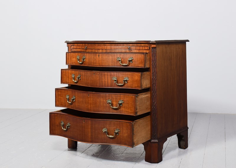 Chippendale-Style, Neat-Sized, Serpentine Front Mahogany Chest Of Drawers