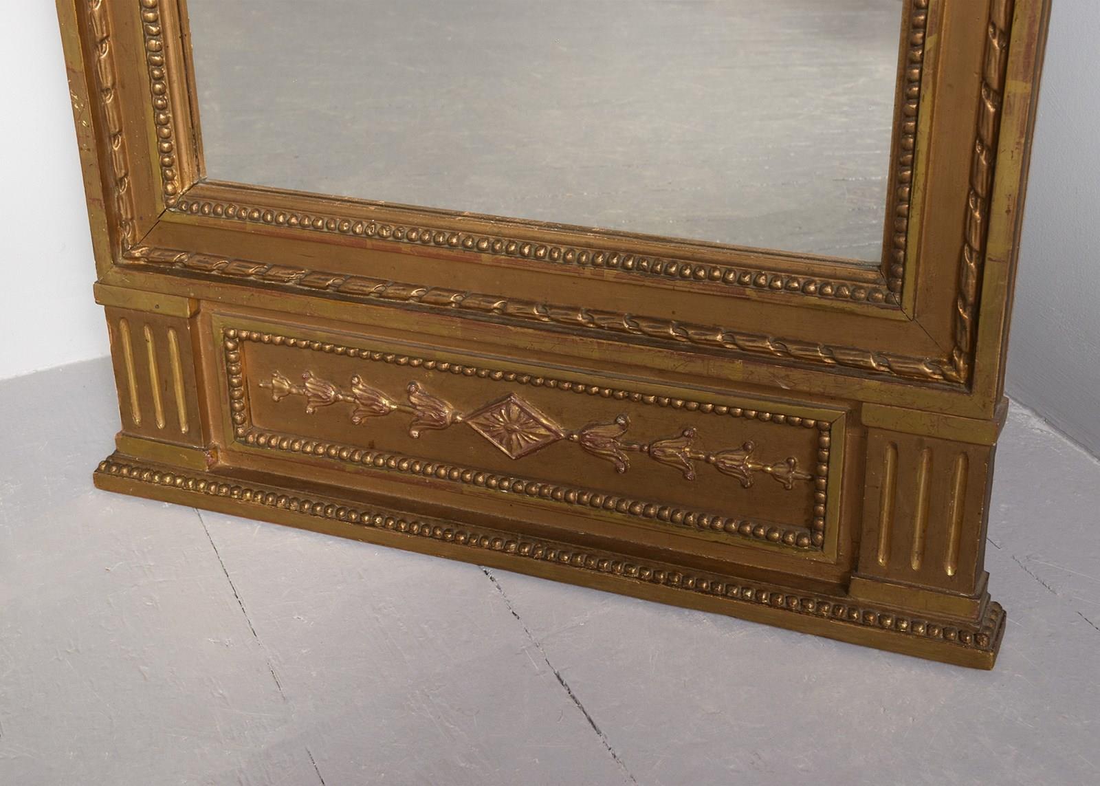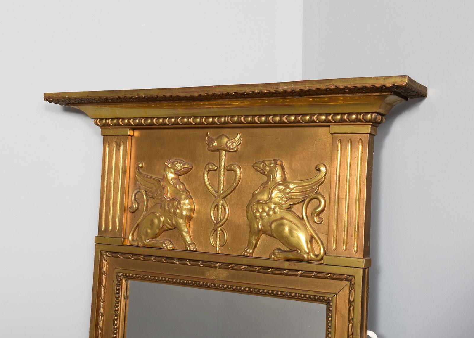 Circa 1810, a French Empire giltwood pier mirror of desirable proportions, the moulded cornice above a frieze moulded in relief with a pair of gilded griffins flanking a caduceus, above a rectangular mirror plate, all in great condition.