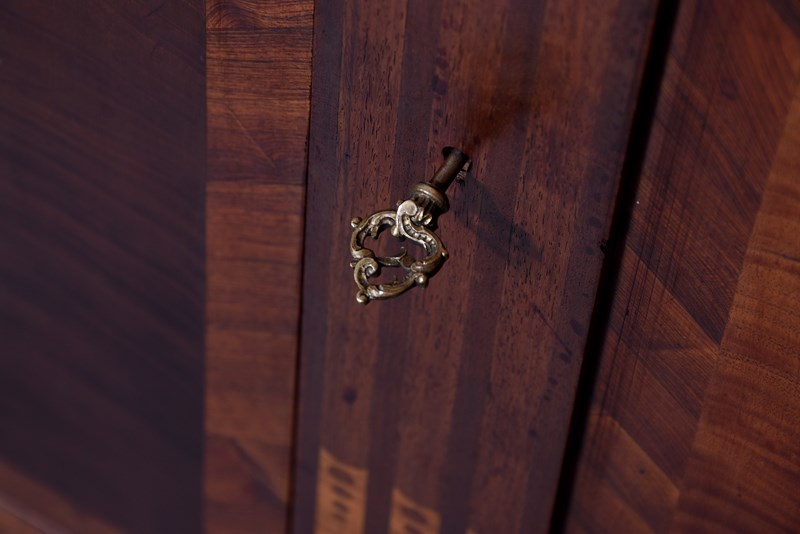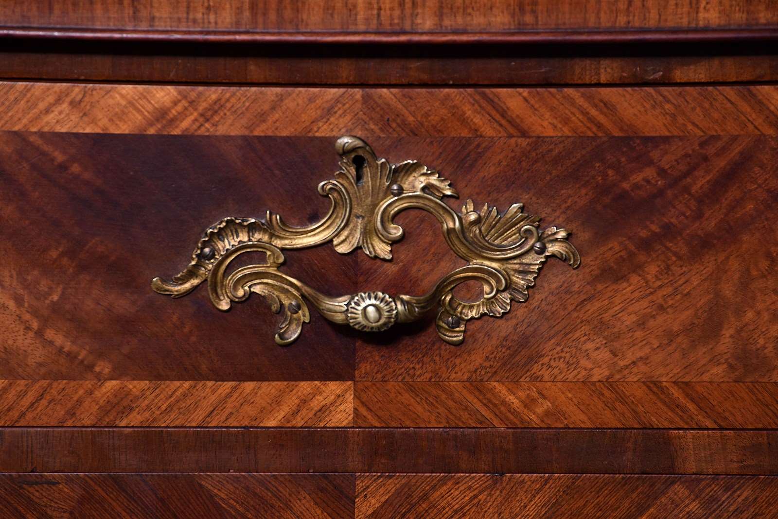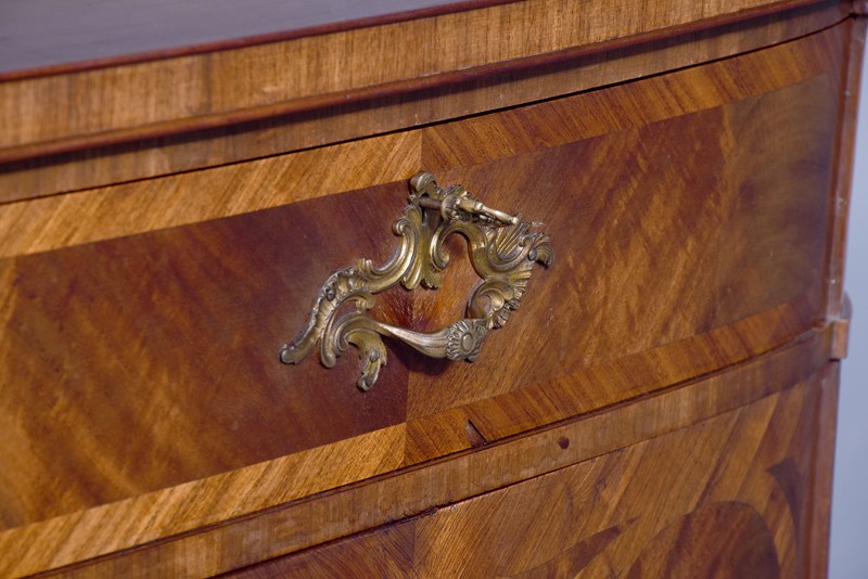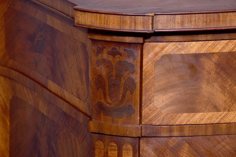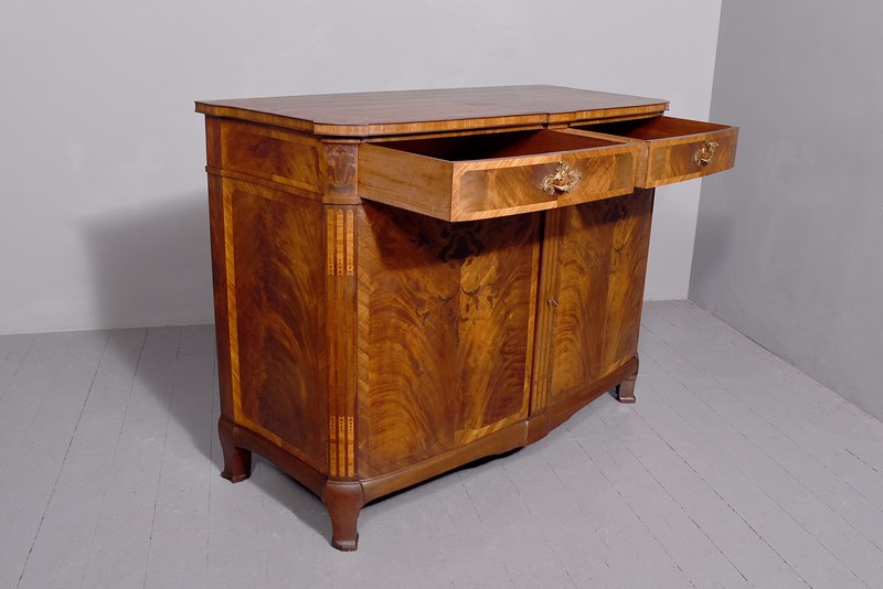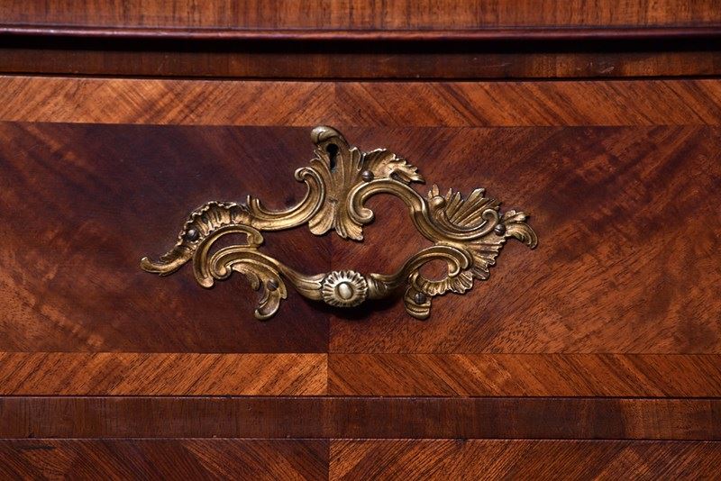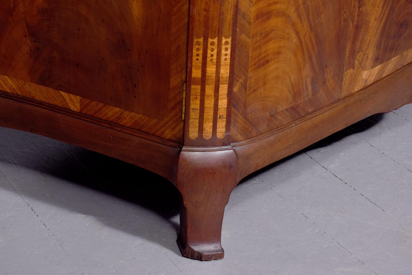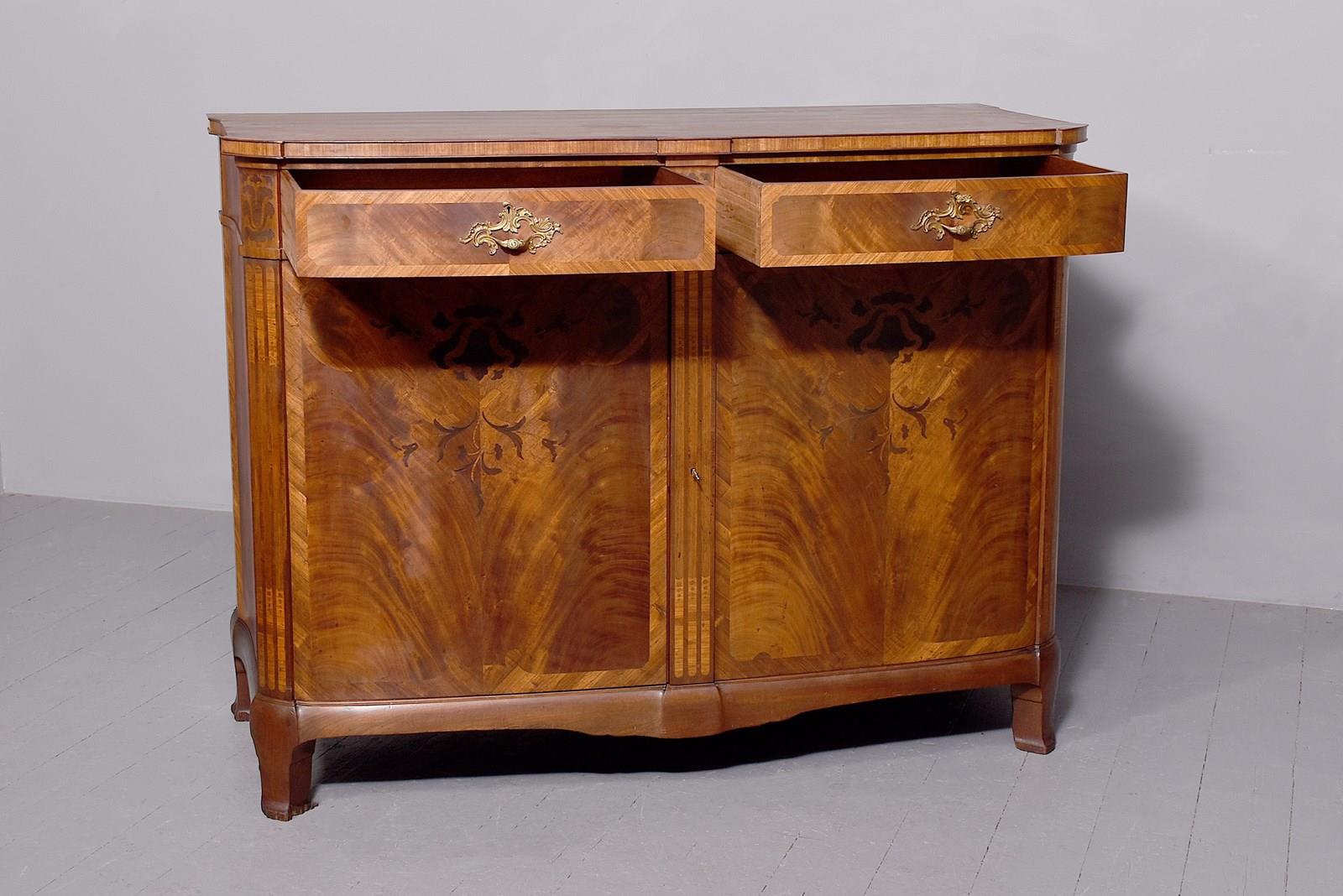 Circa 1910. An exhibition quality mahogany and inlaid folio cabinet by ‘Whytock & Reid of Edinburgh’, designed in the French taste the solid shaped top with beaded and cross banded fore-edge, he front with a pair of curved doors with French Rococo gilded handles, with Kingwood banding, beneath a pair of curved inlaid marquetry doors, which open to reveal two banks with pull out shaped folio trays each with a pair of pierced handgrips, the gables with panels in finest feathered mahogany, the fore-edges with inlaid panels, beneath the doors there is a shaped frieze that follows the forms of the doors, all resting on stylish Whytock & Reid Lorimer-style feet