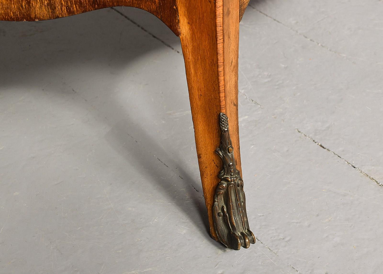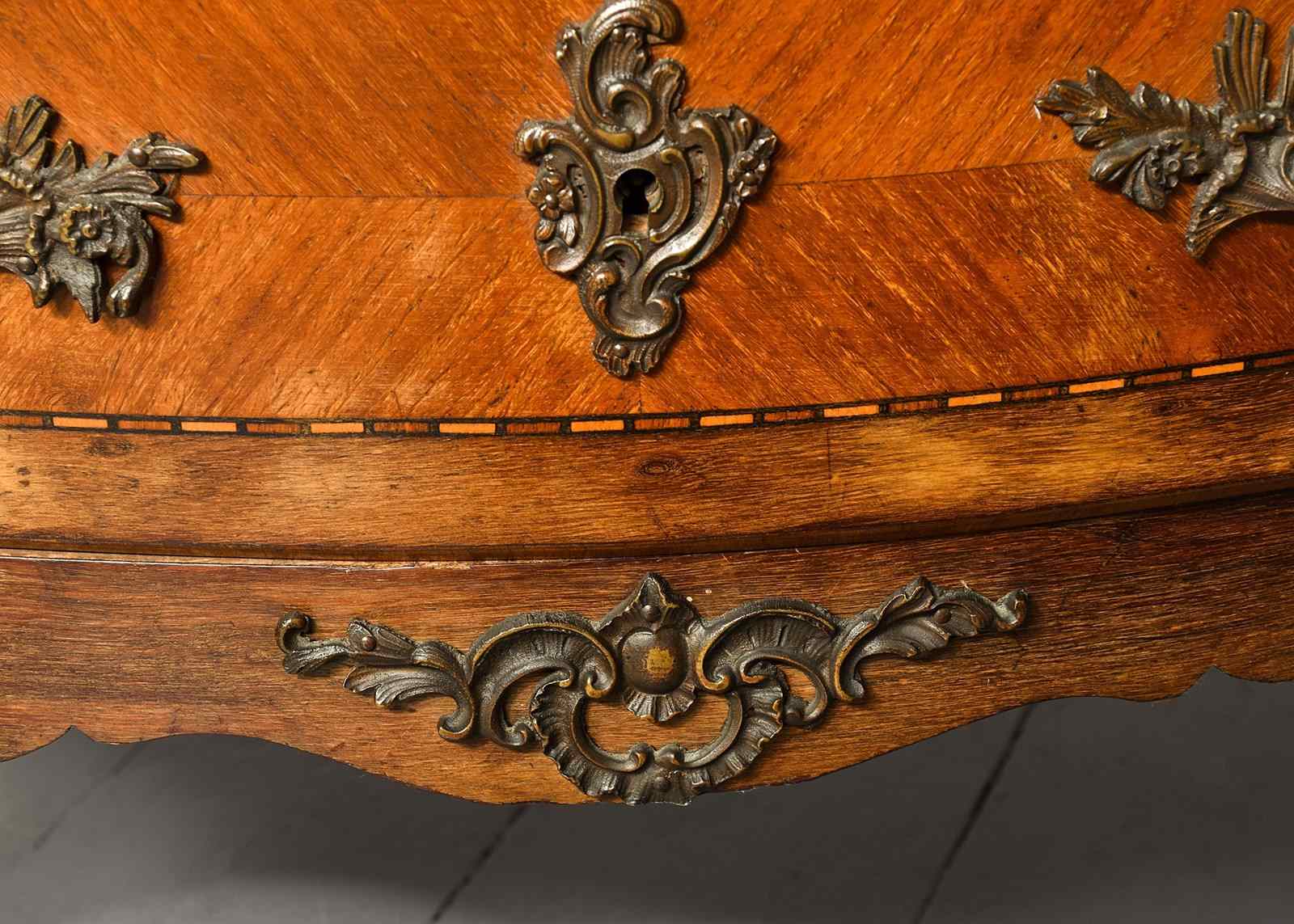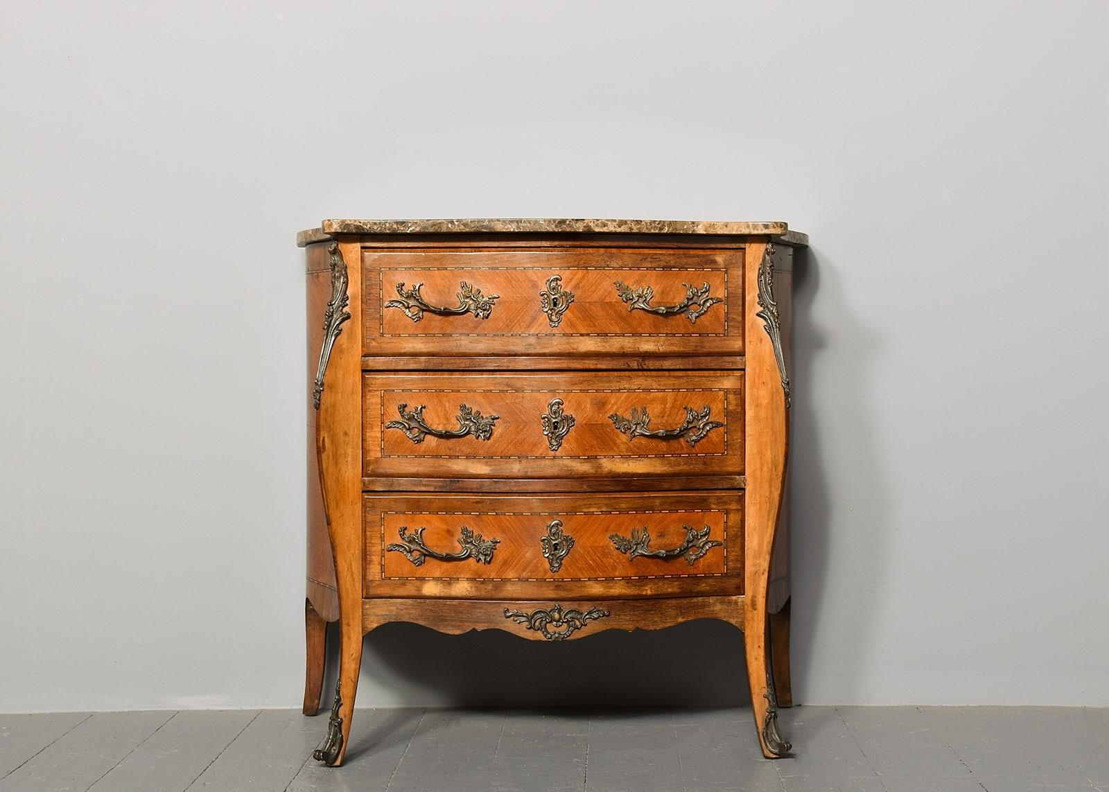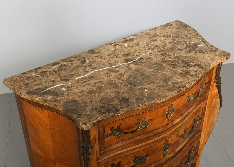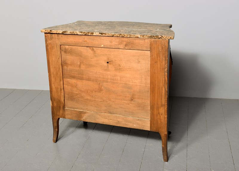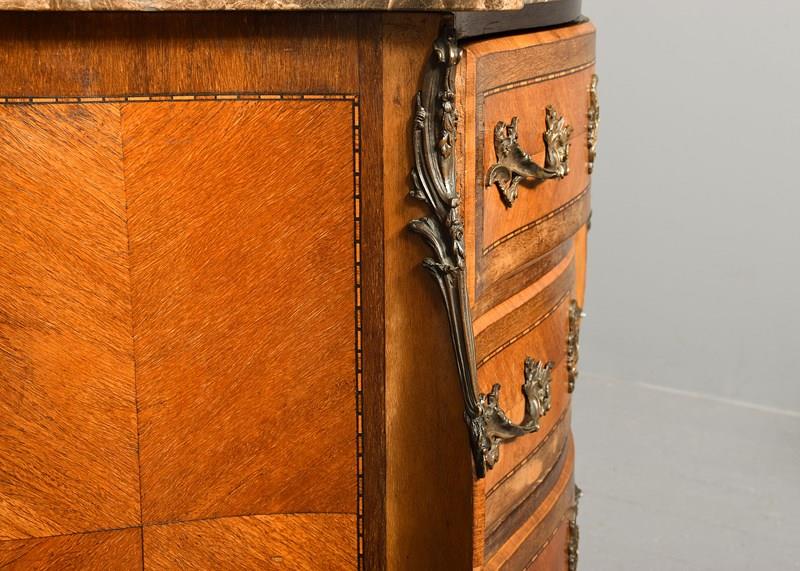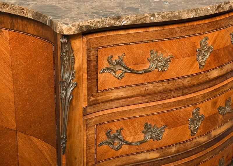 French Serpentine-Fronted Marble Top Inlaid Mahogany Commode