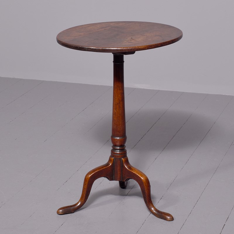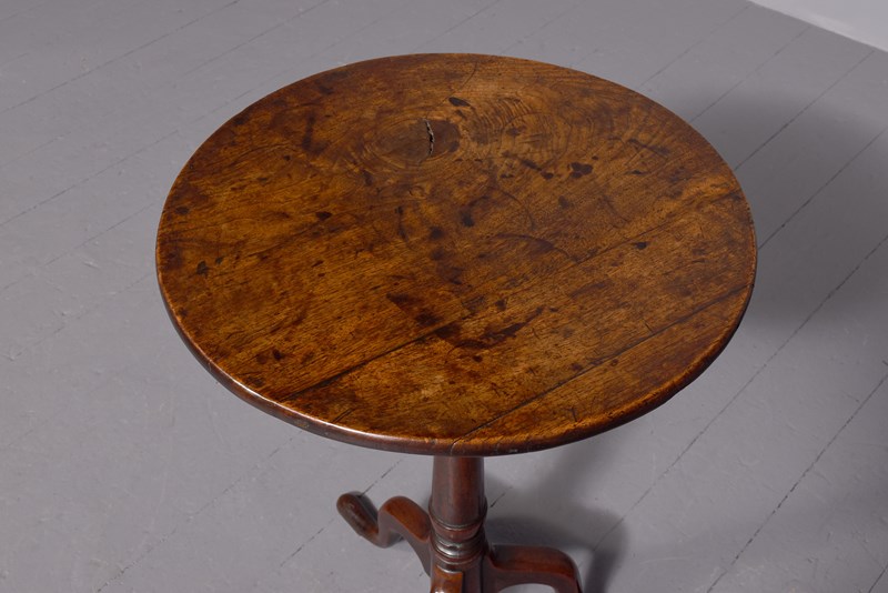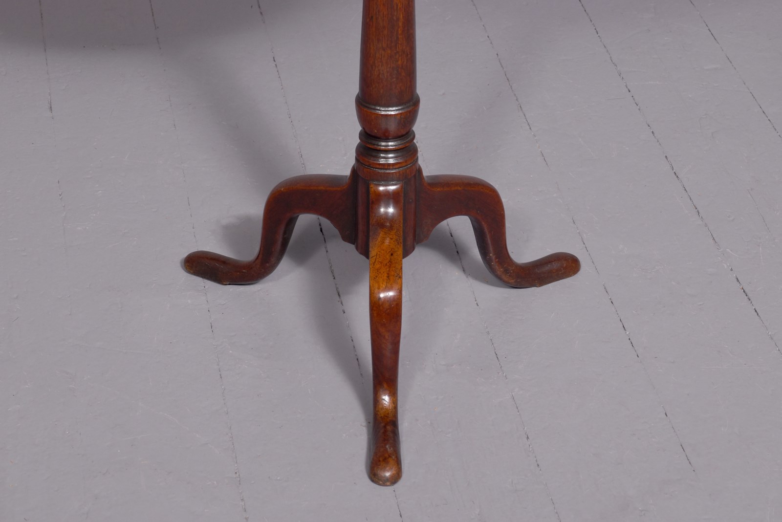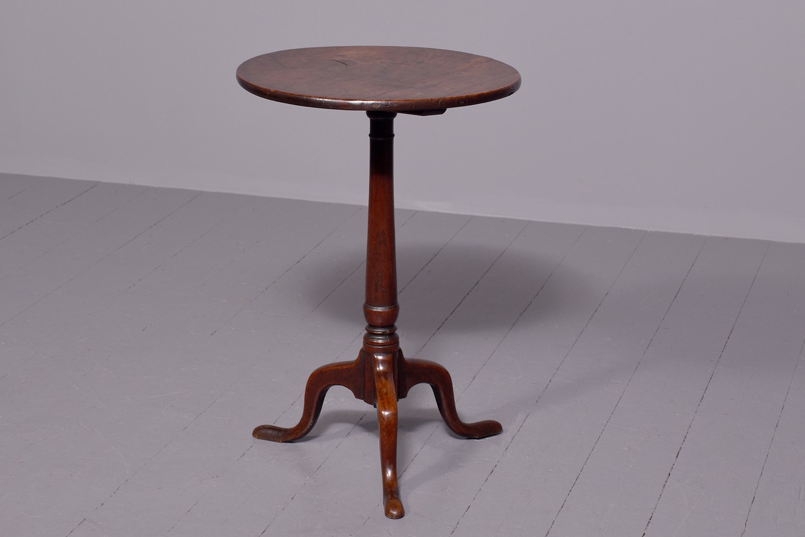 Circa 1760. George 2nd mahogany tripod occasional table with a wonderful colour and original patina. The circular top with unusual figuring above a tapering turned stem over cabriole legs with flat pad feet.