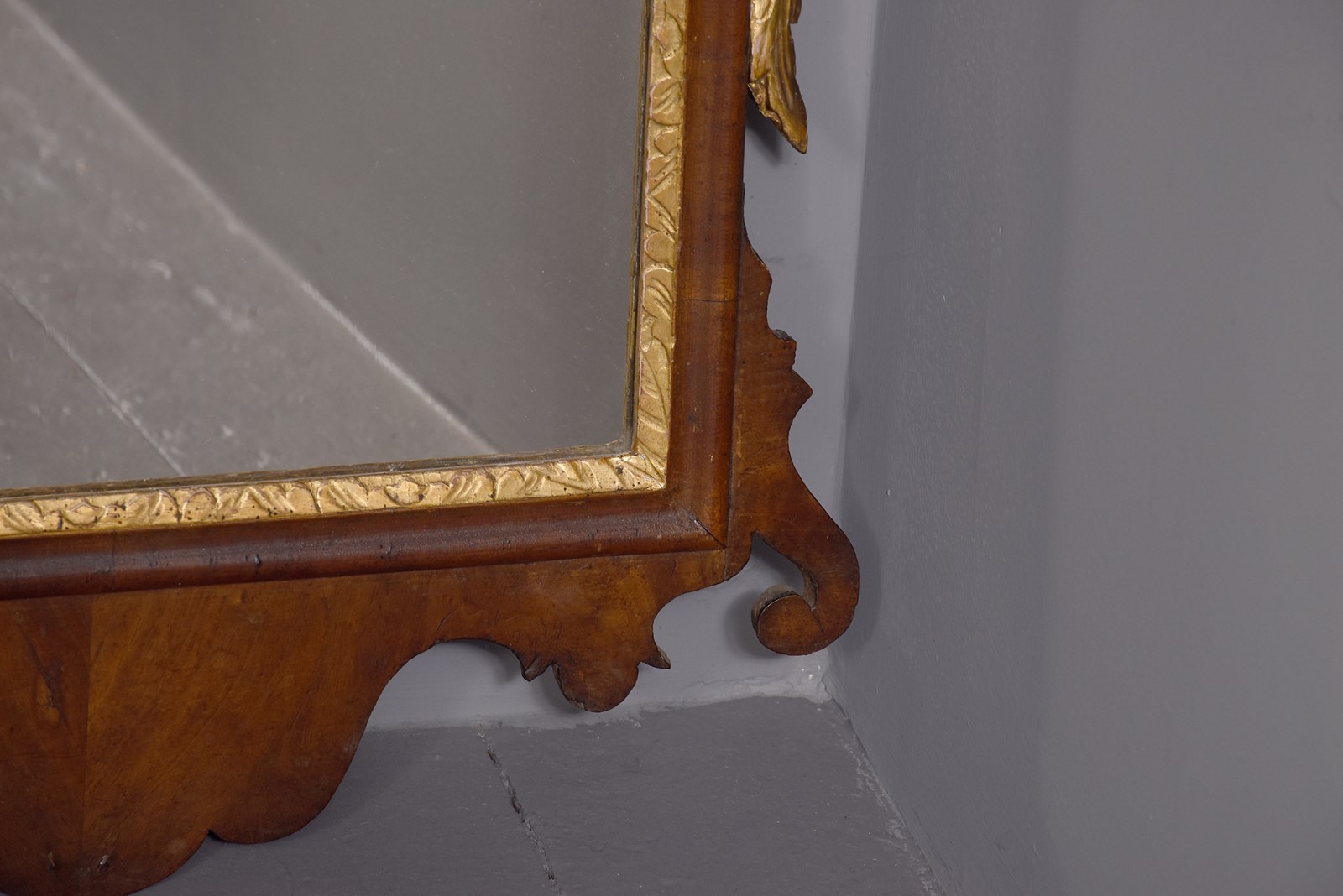Circa 1790. George 3rd gilt and mahogany Chippendale style fretted wall mirror. Surmounted by a fretted crest with gilded acanthus leaves, fretted arched corners and a shaped base, the moulded mirror frame with a gilded slip and the original mirror plate in overall good condition, minor blemishes expected on an original plate. With original back.