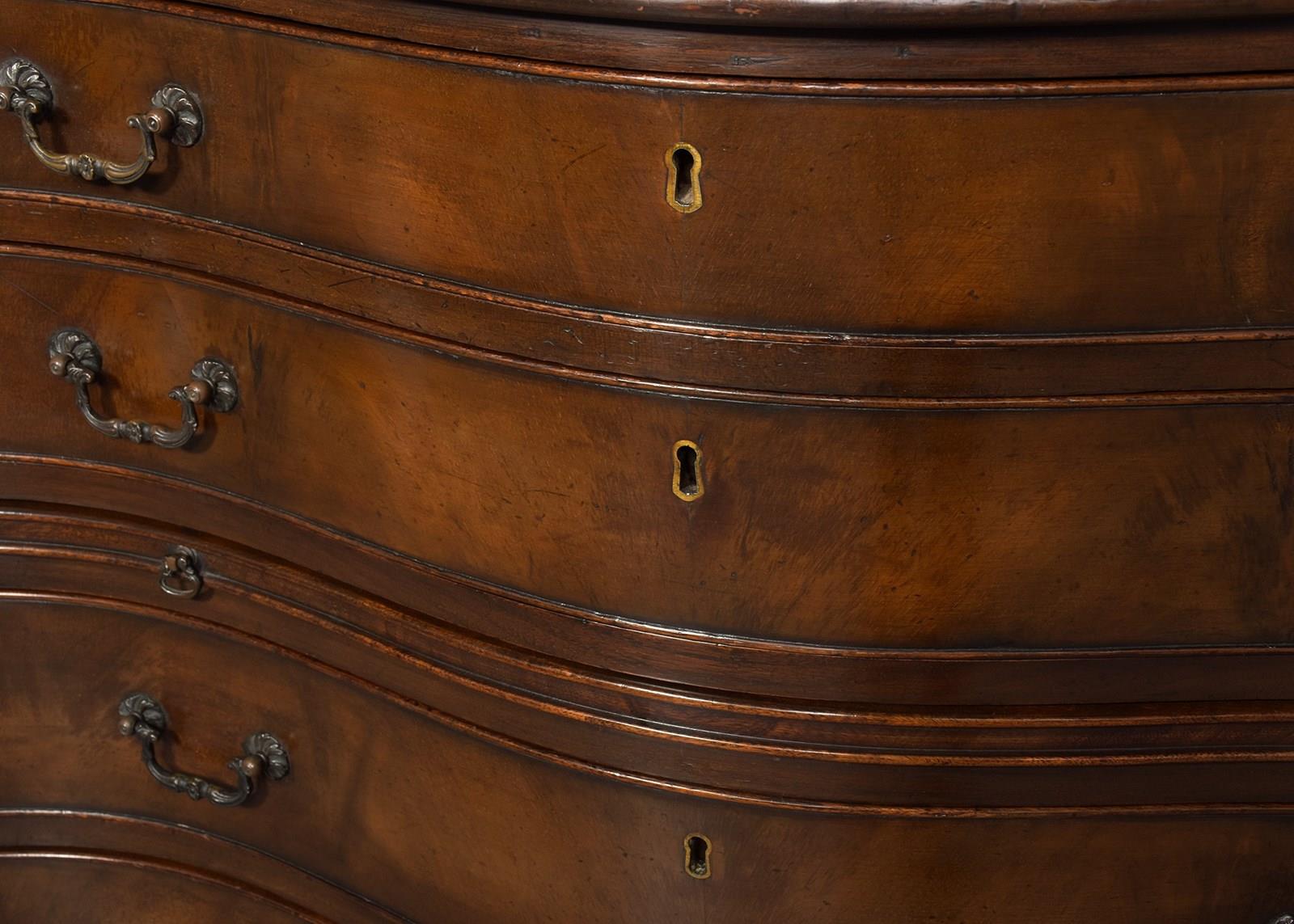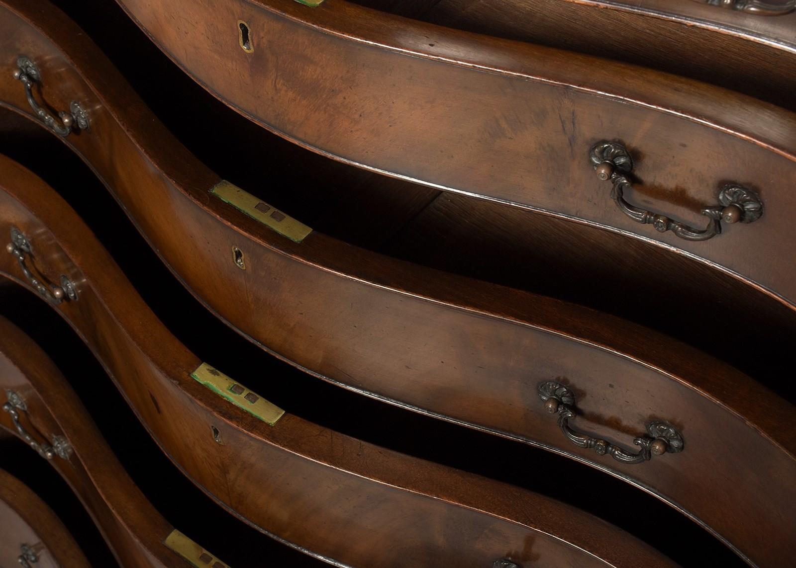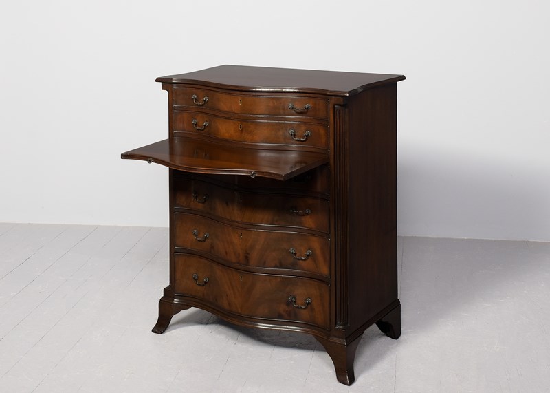 George 3Rd Style Serpentine-Front, Mahogany Chest Of Drawers