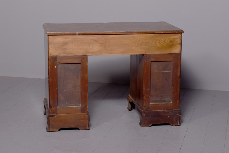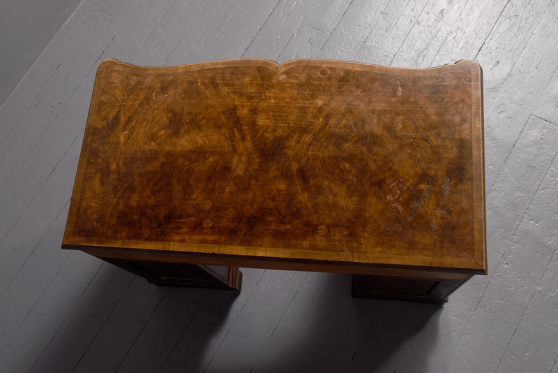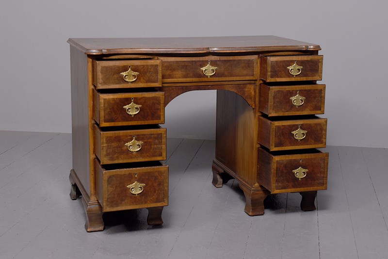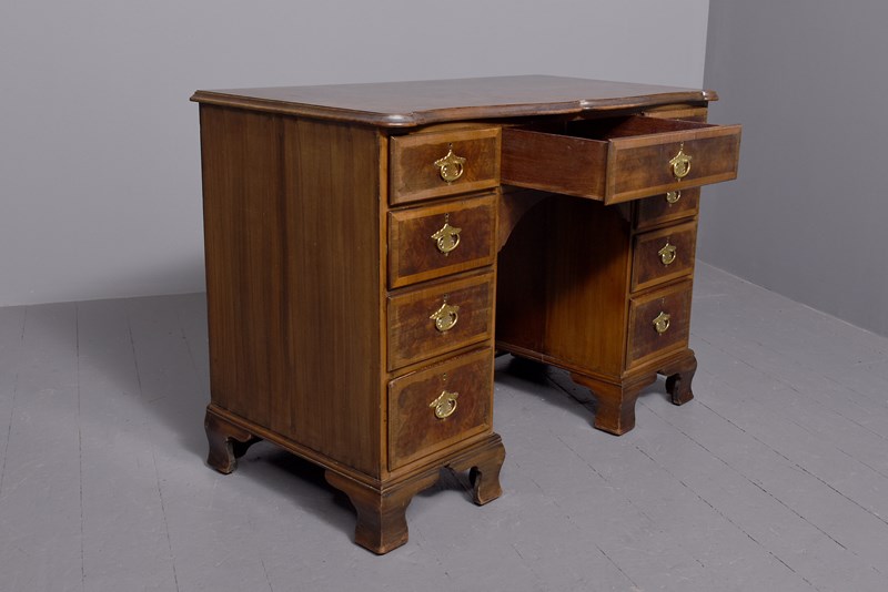 George II Style Crossbanded Figured Walnut Kneehole Desk With Engraved Brass Han