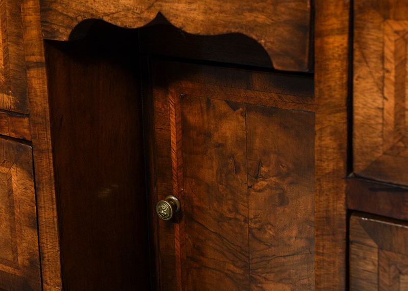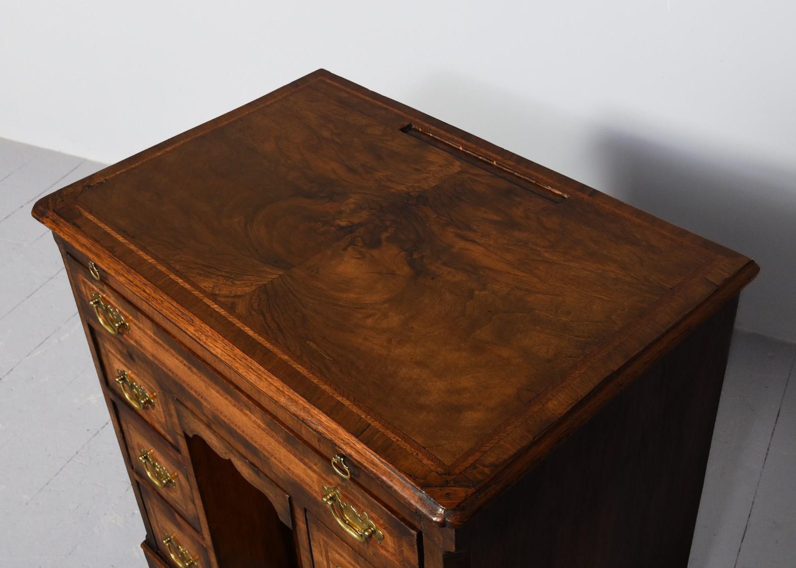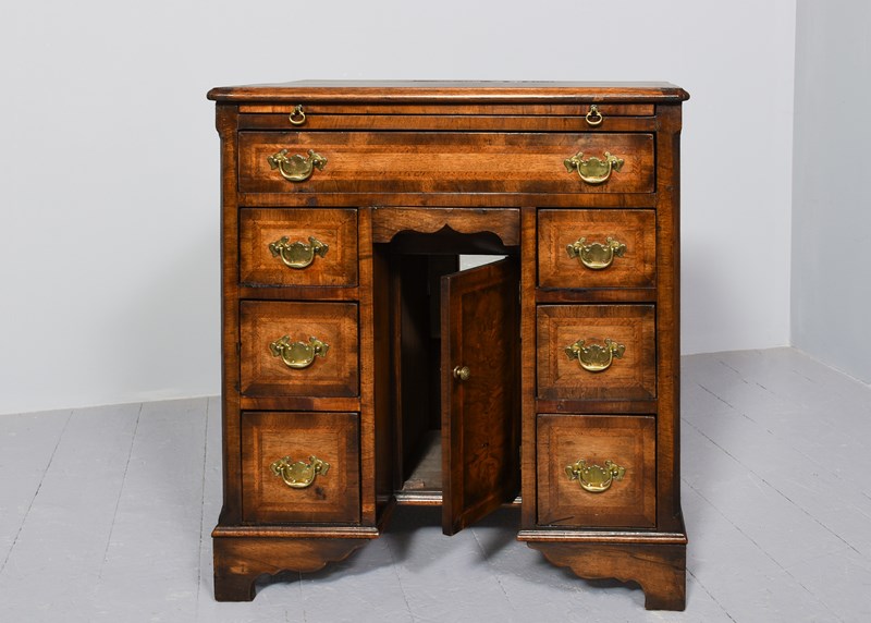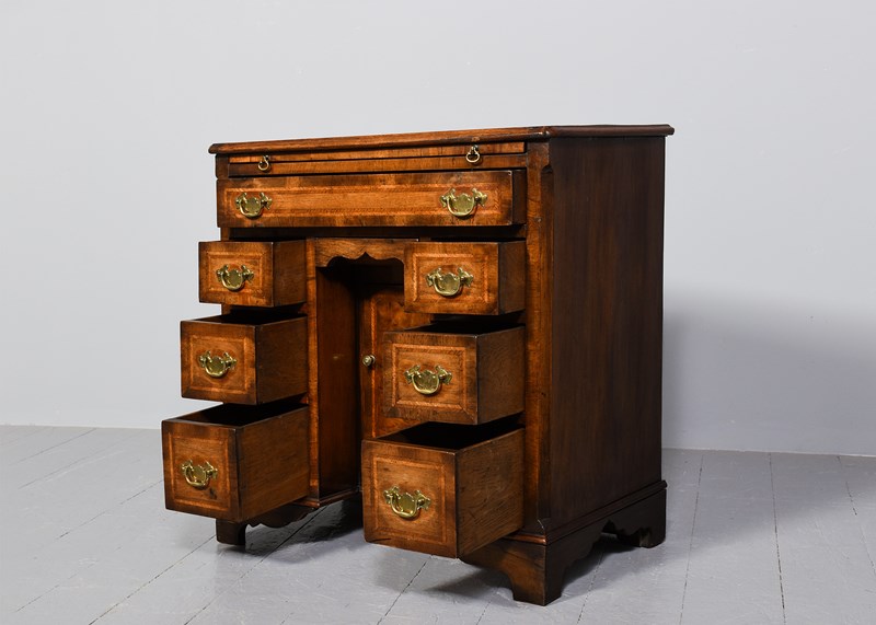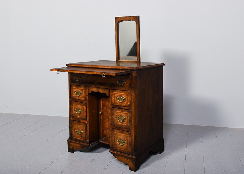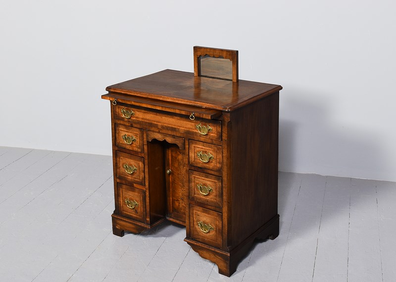 George II Style Inlaid Figured Walnut Kneehole Dressing Chest