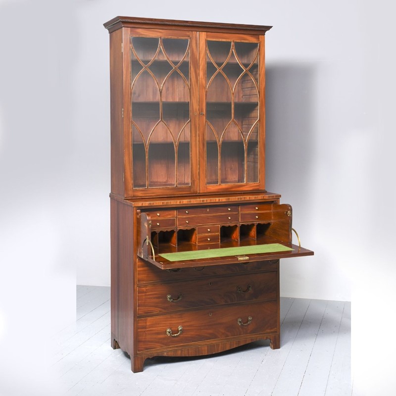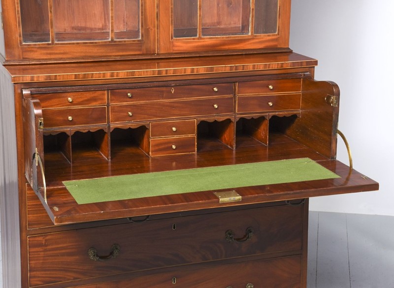 George III Inlaid Mahogany Secretaire Bookcase