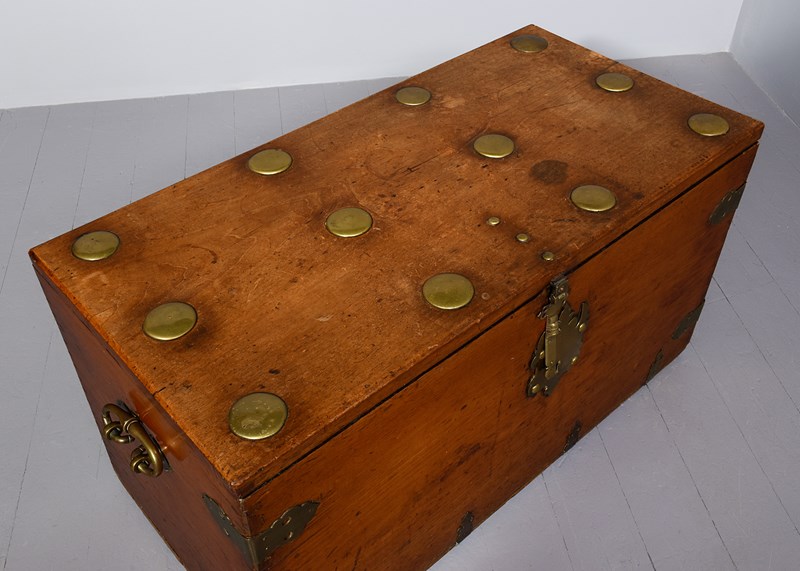 Impressive Dutch Brass-Mounted Colonial Teak Trunk