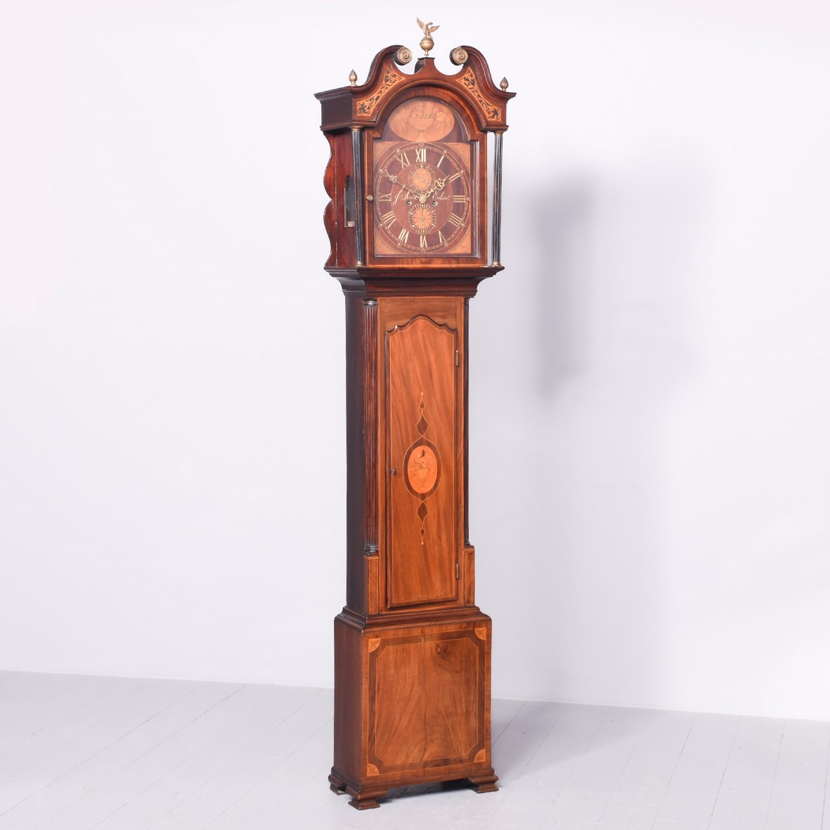 Inlaid Mahogany-Faced Scottish Georgian Grandfather Clock In Excellent Condition