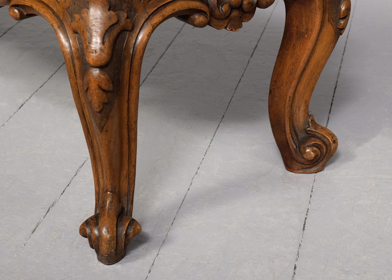 Large Carved Mahogany Cabriole Leg Stool By Robert Strahan Of Dublin