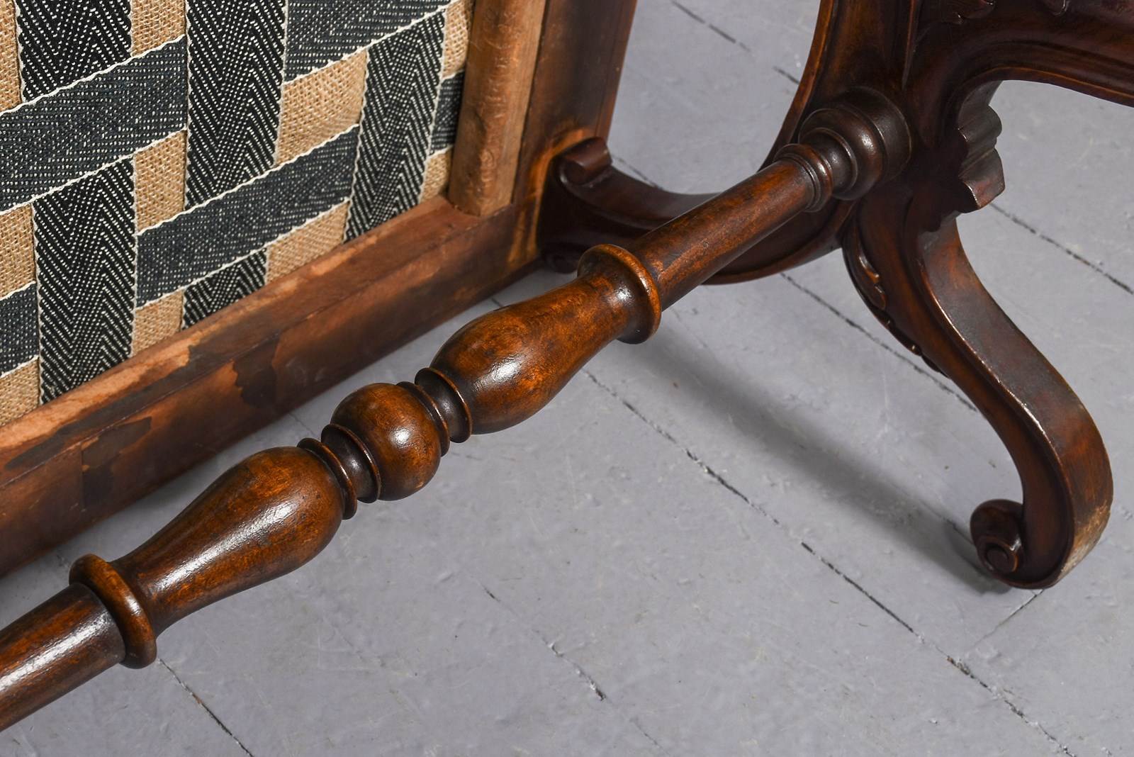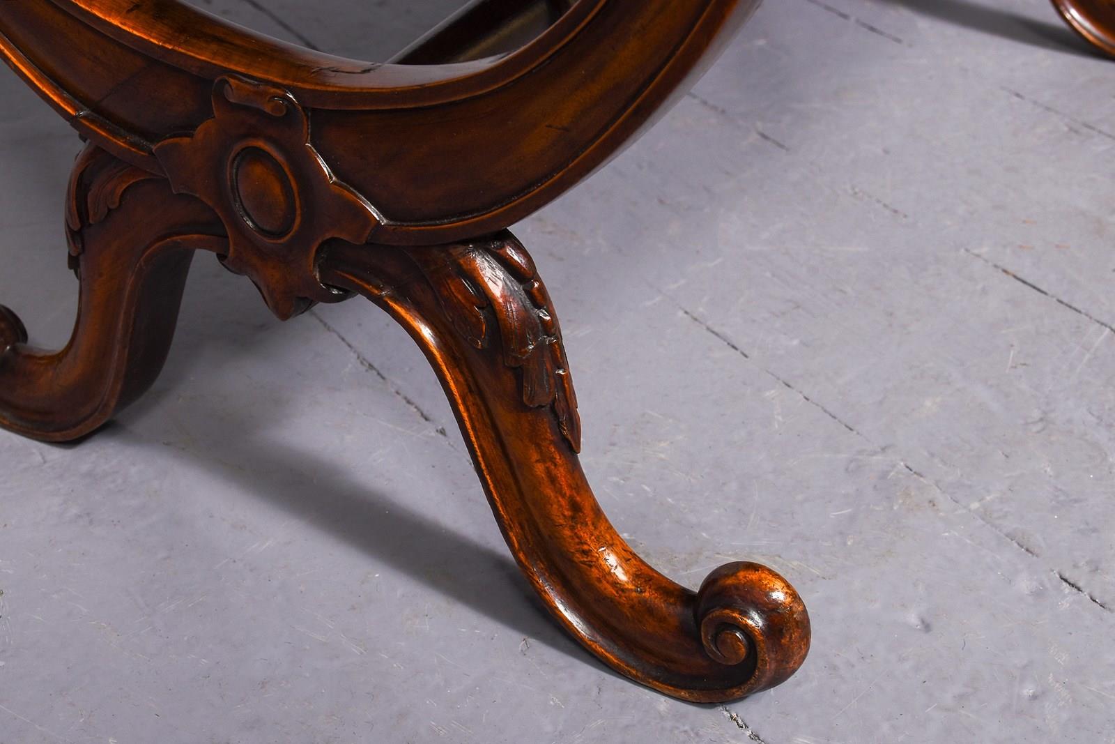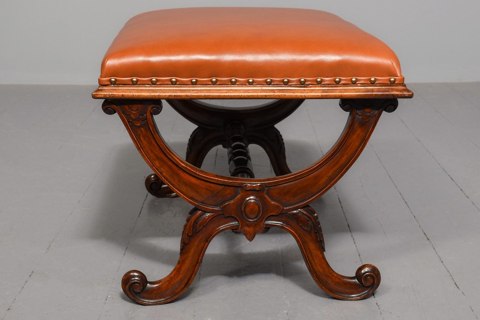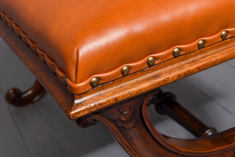 Large Early Victorian Walnut X Framed Stool, Newly Upholstered In A Quality Tan
