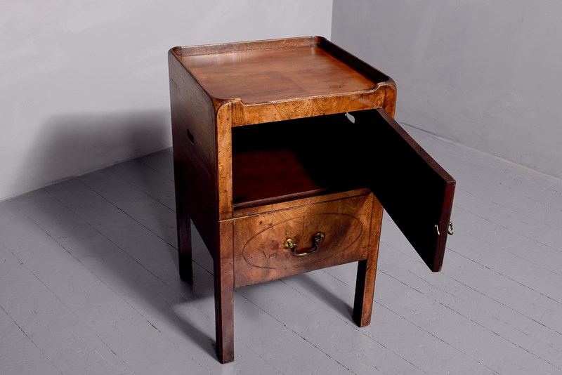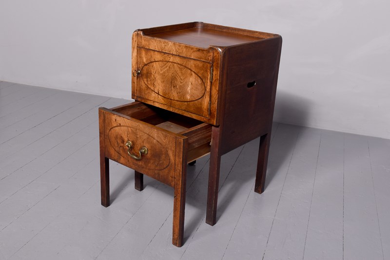 Large , Inlaid Mahogany George 3Rd Tray-Top Bedside Locker
