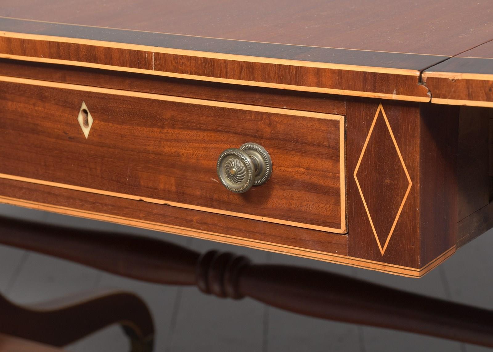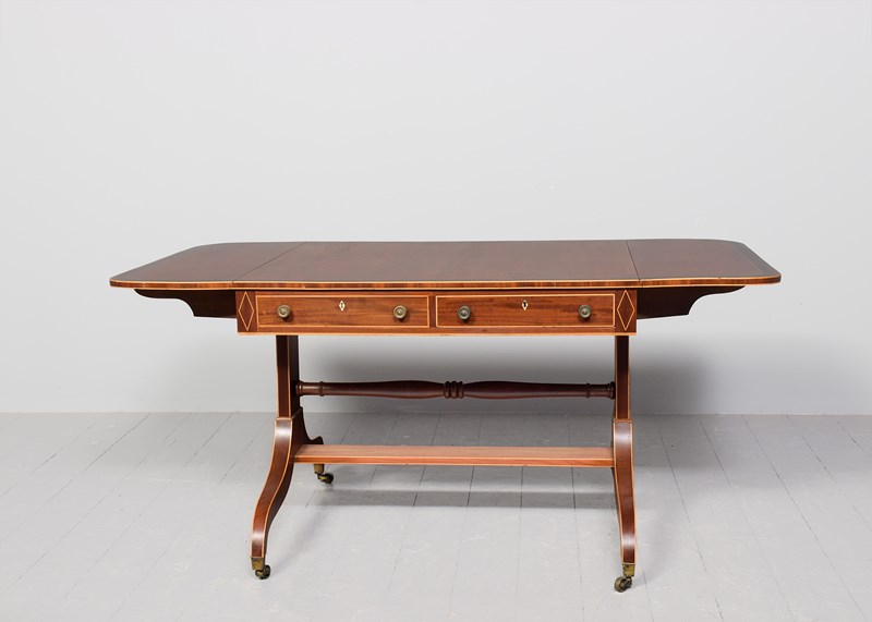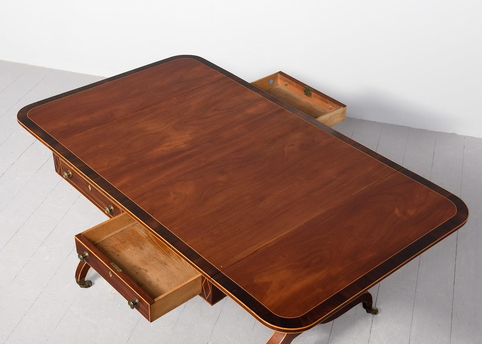 Large Regency Inlaid Mahogany Sofa Table