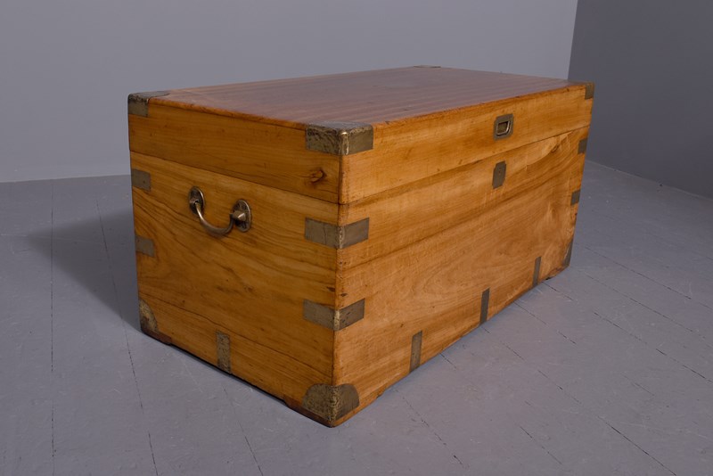 Large Victorian Brass-Bound Solid Camphorwood Trunk With A Renowned Hong Kong Ma