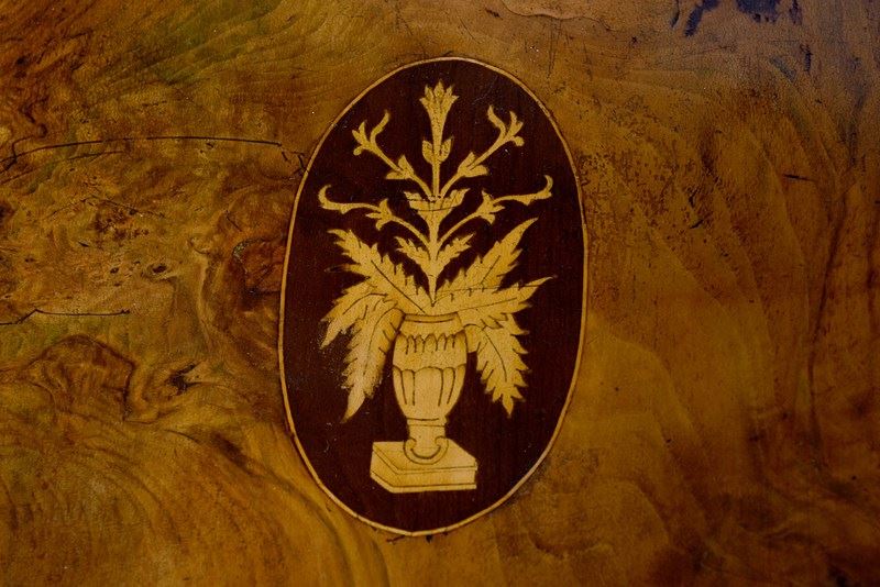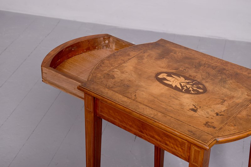 Late Victorian Sheraton-Style Burr Walnut Inlaid Side Table